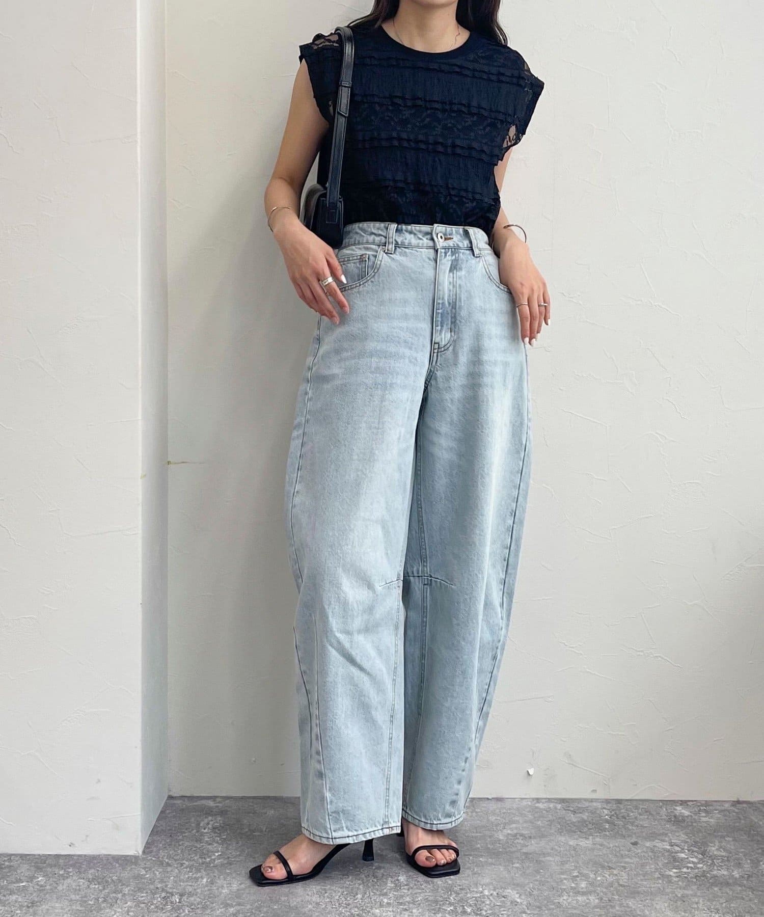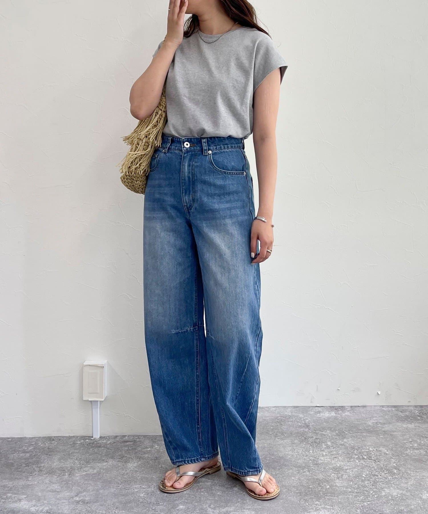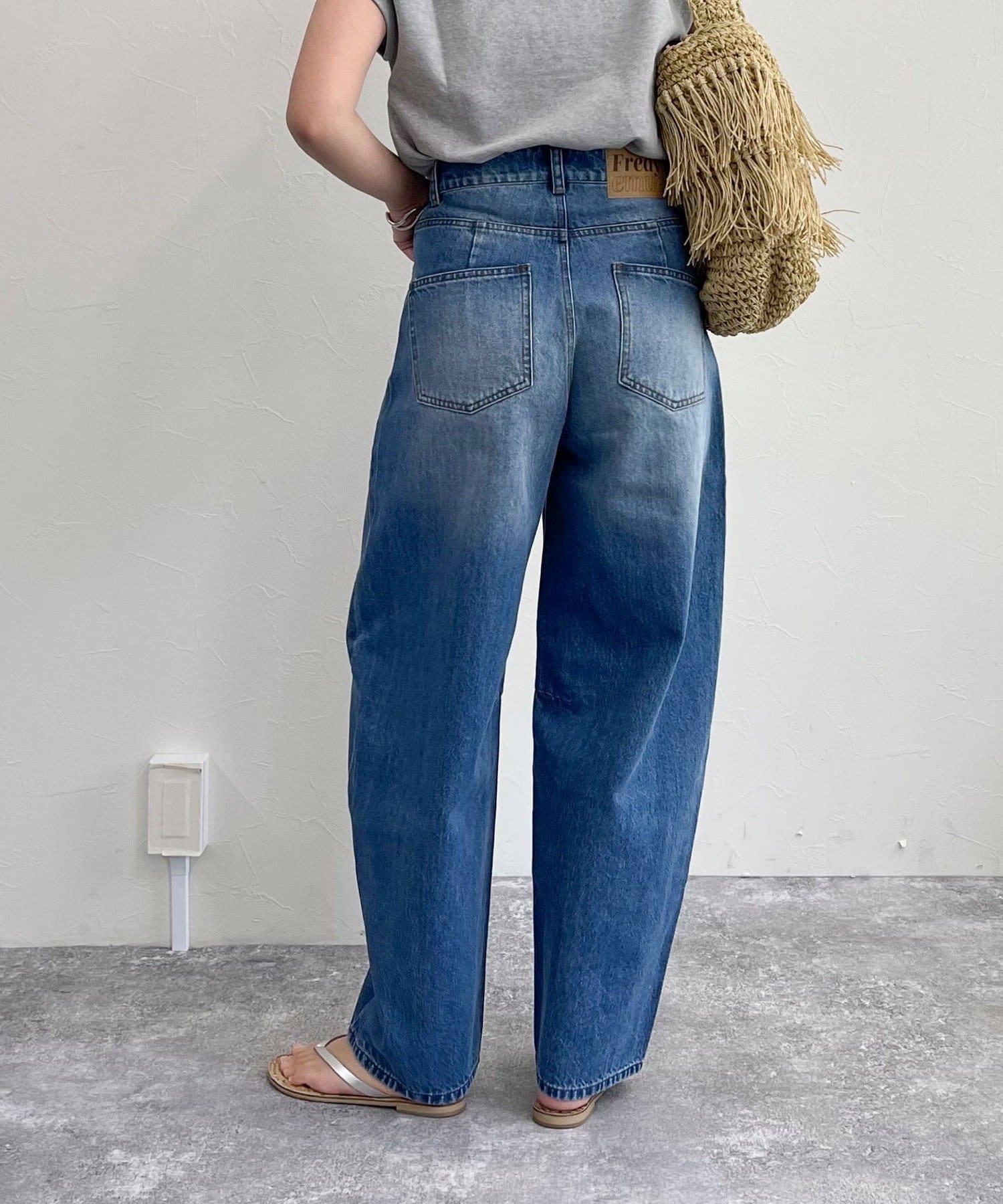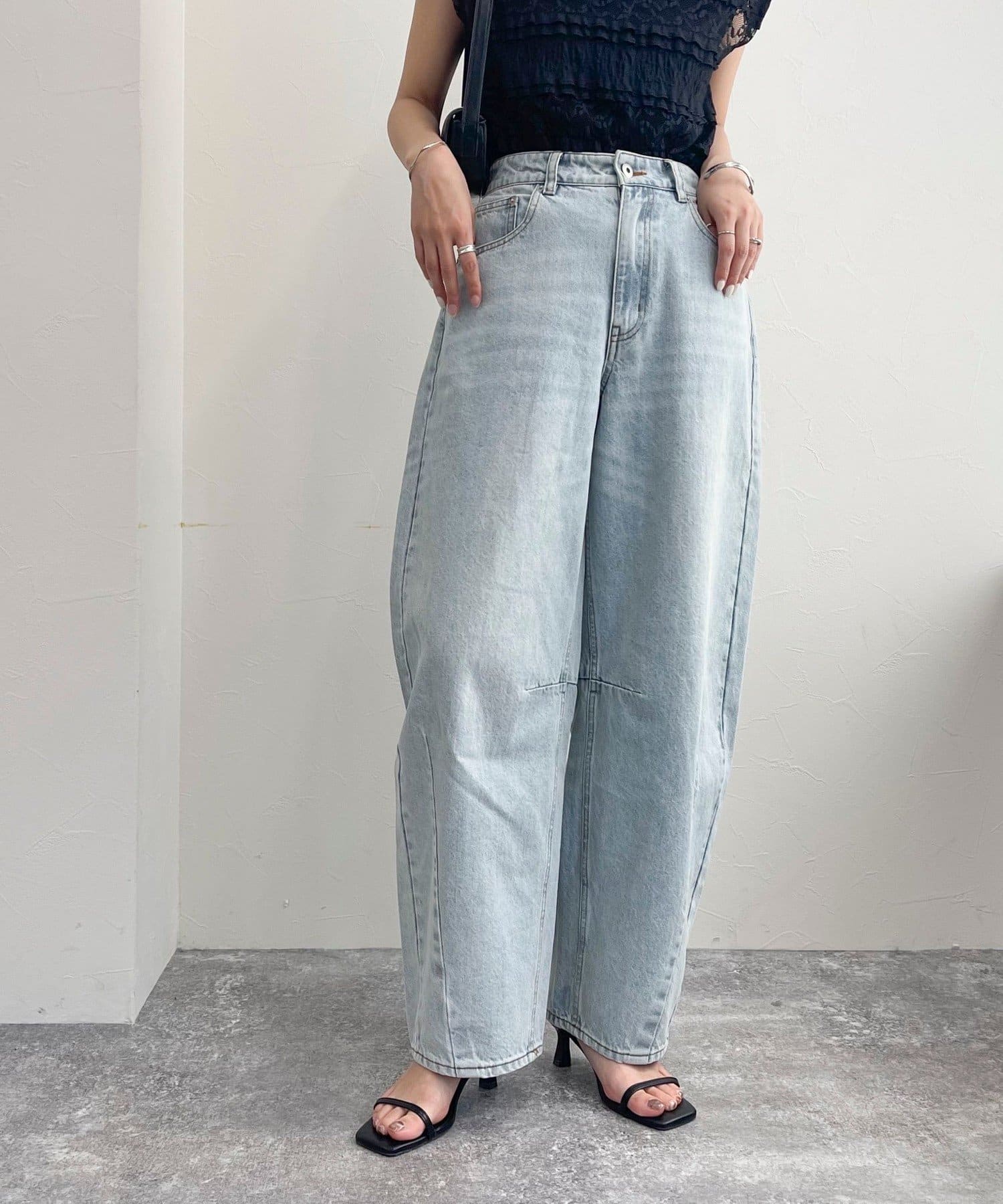 ・程良くゆるさとボリュームを出してシルエットにこだわったカーブデニムパンツです