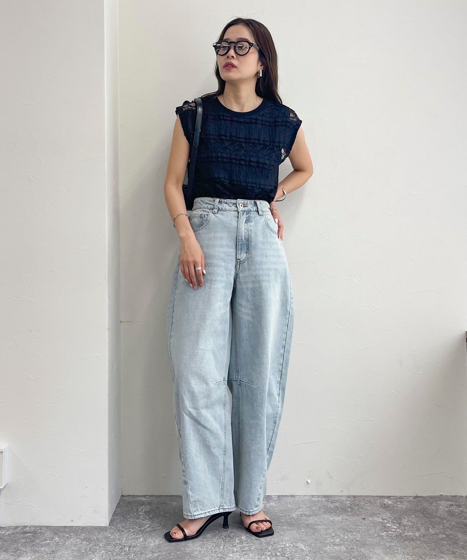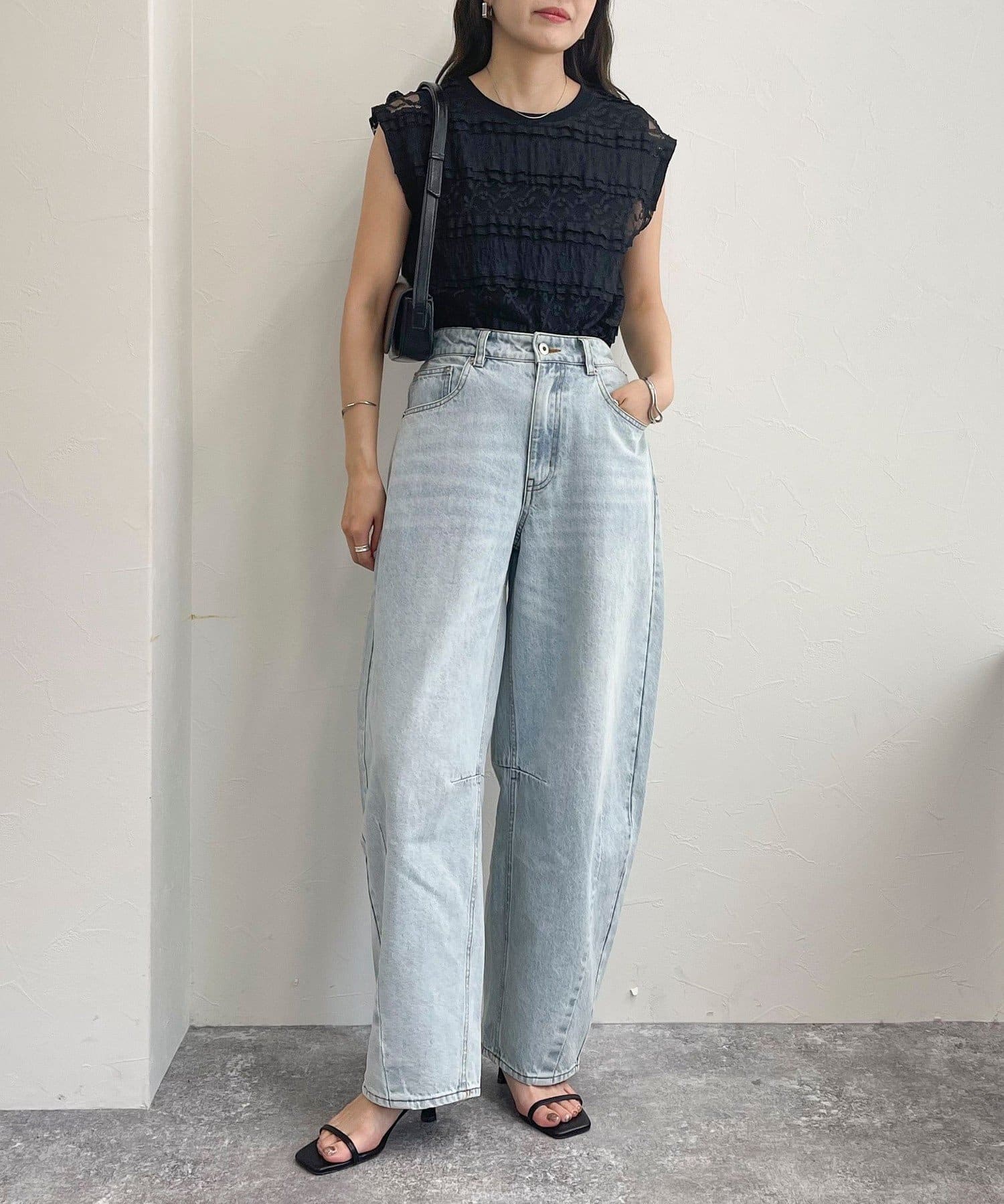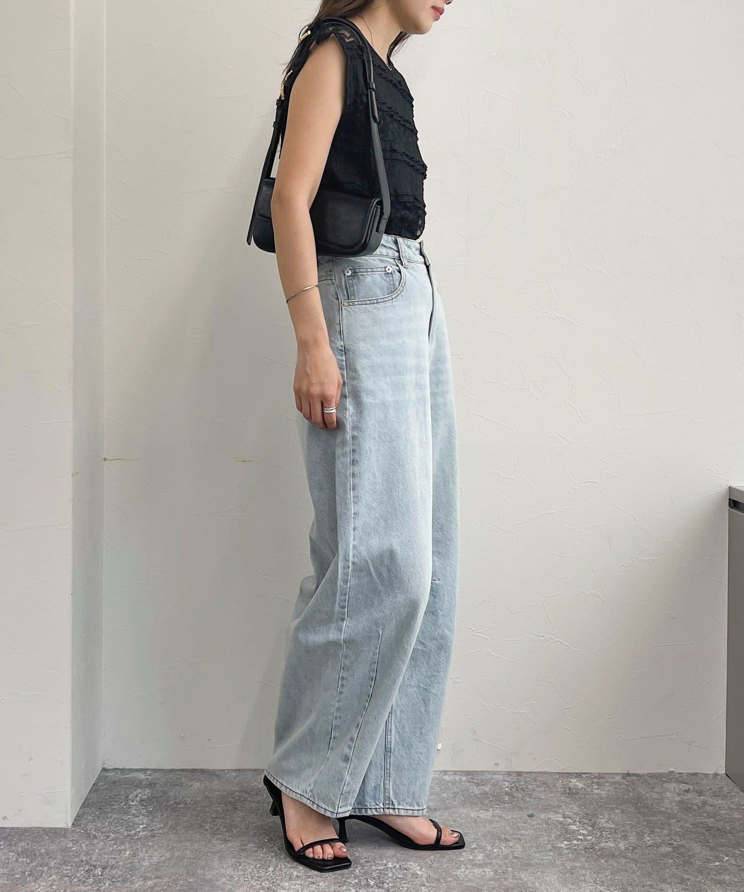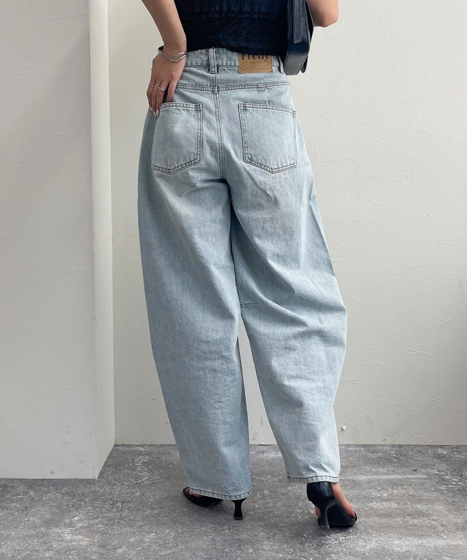 ・程良くゆるさとボリュームを出してシルエットにこだわったカーブデニムパンツです