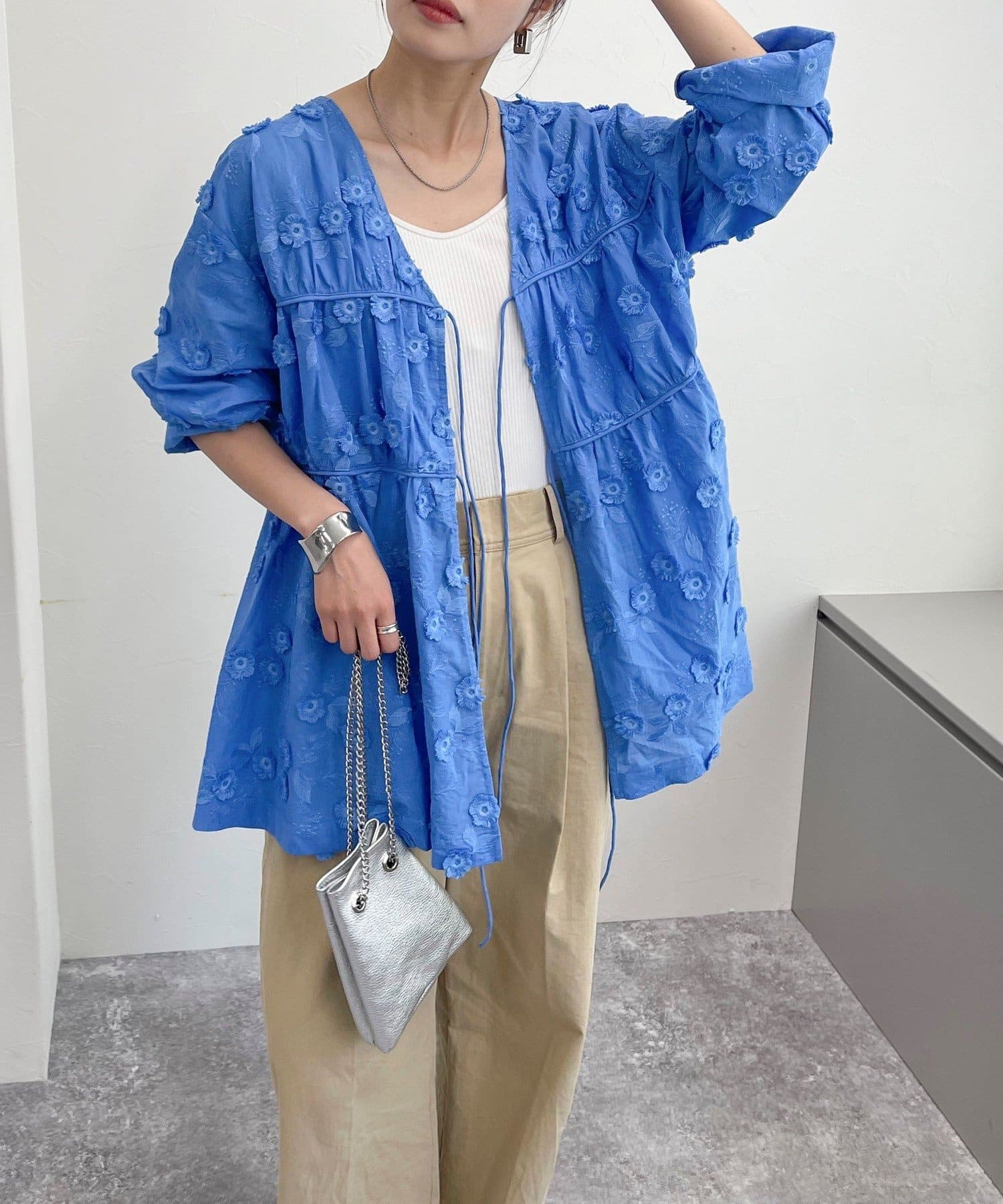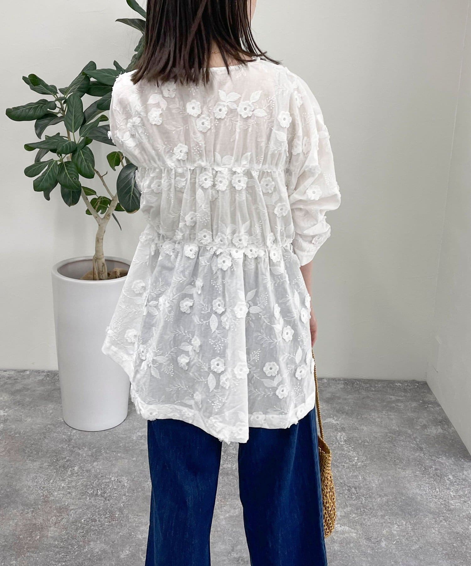 3D刺繍チュニックブラウス