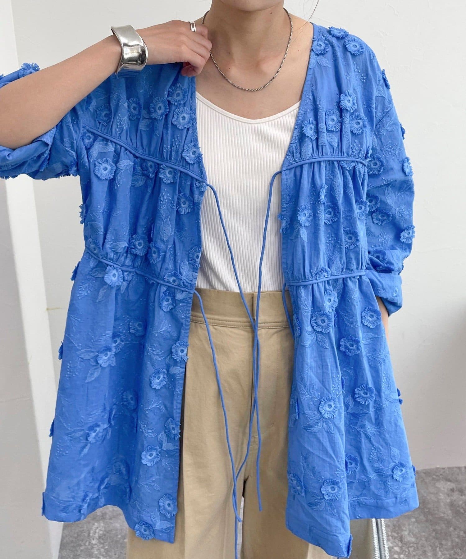 たくさんの刺繍が施されていて、主役になるアイテムでした。