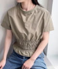 ギュッと絞ったシャーリングがポイントの女性らしいブラウス