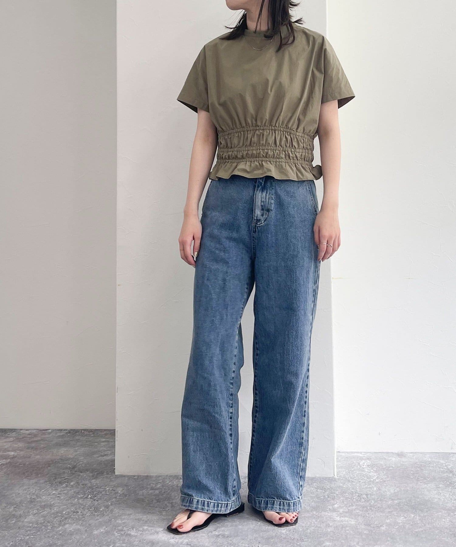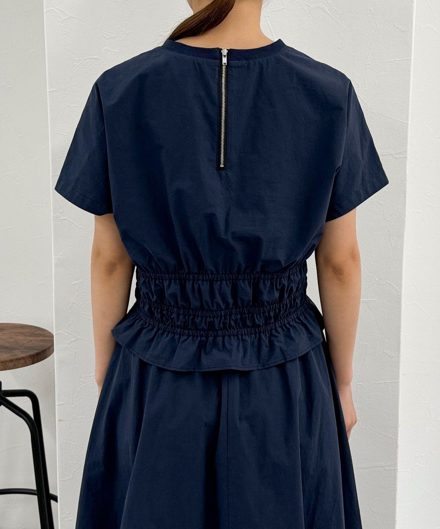 ・ウエストのシャーリングが女性らしさを演出してくれるブラウスです