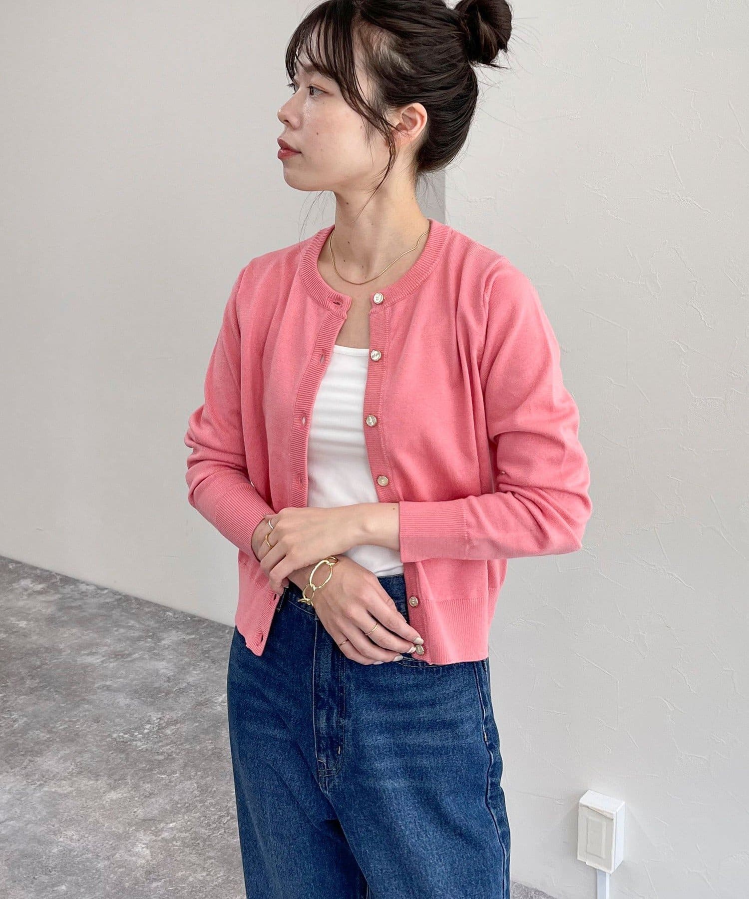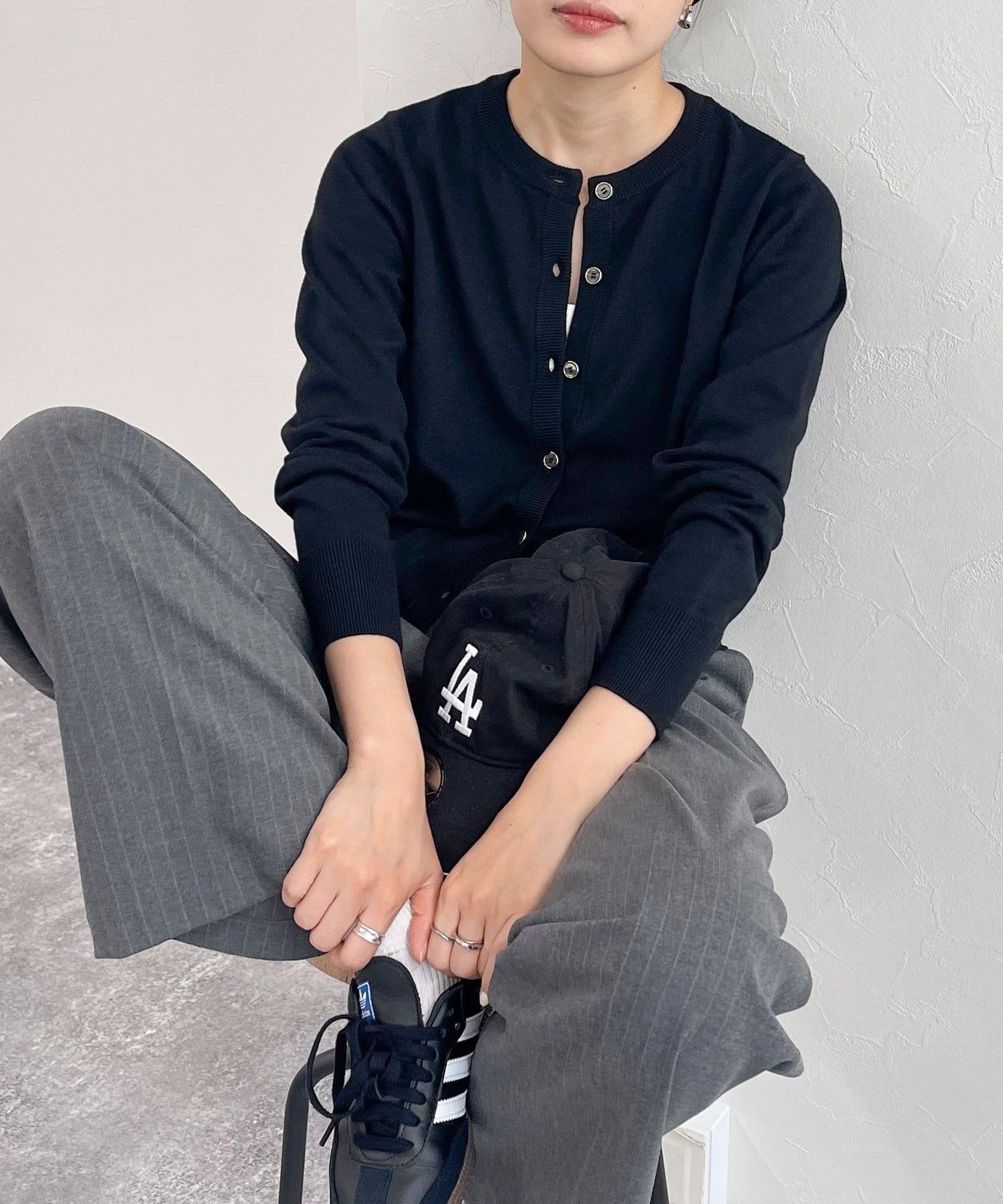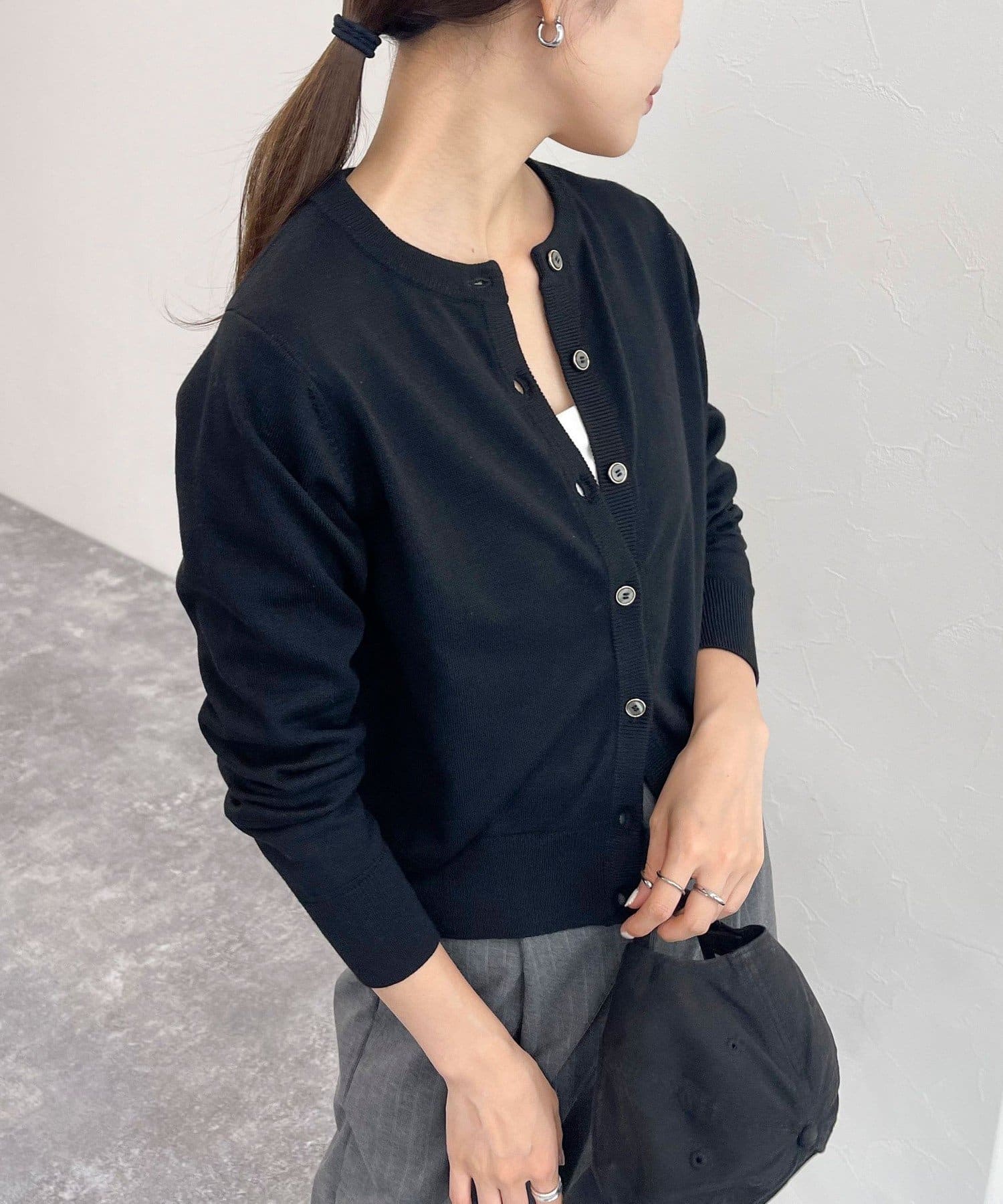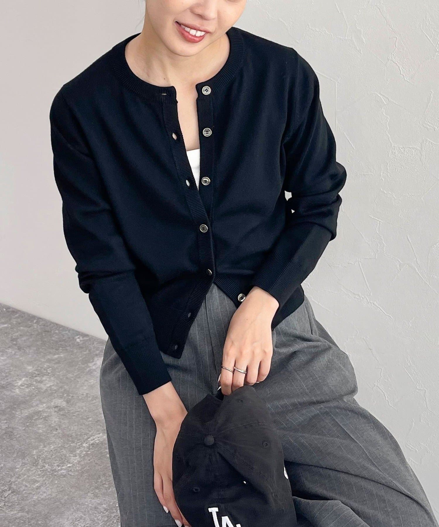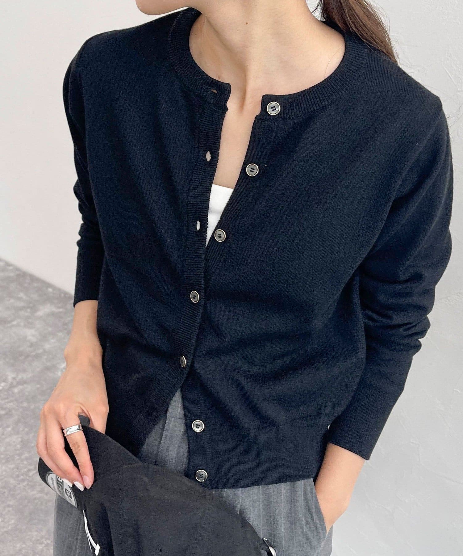 ・カラーバリエーション豊富なウール混のベーシック型のニットカーディガンです