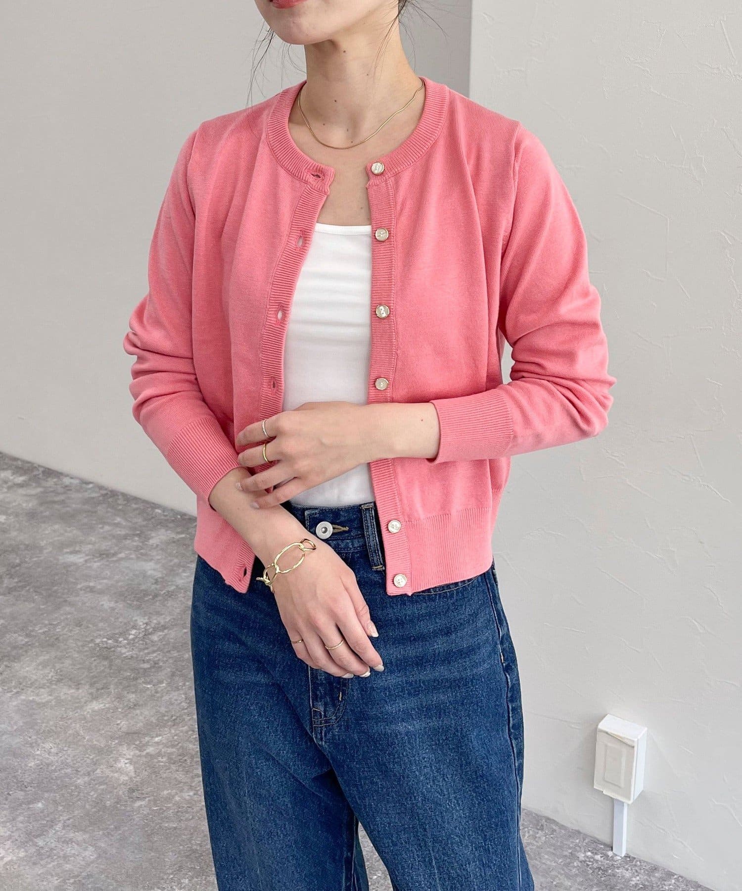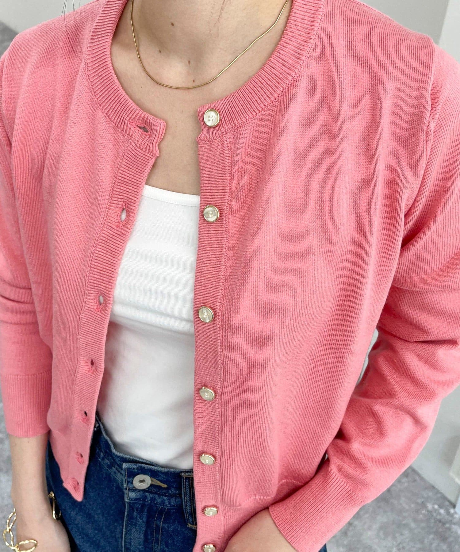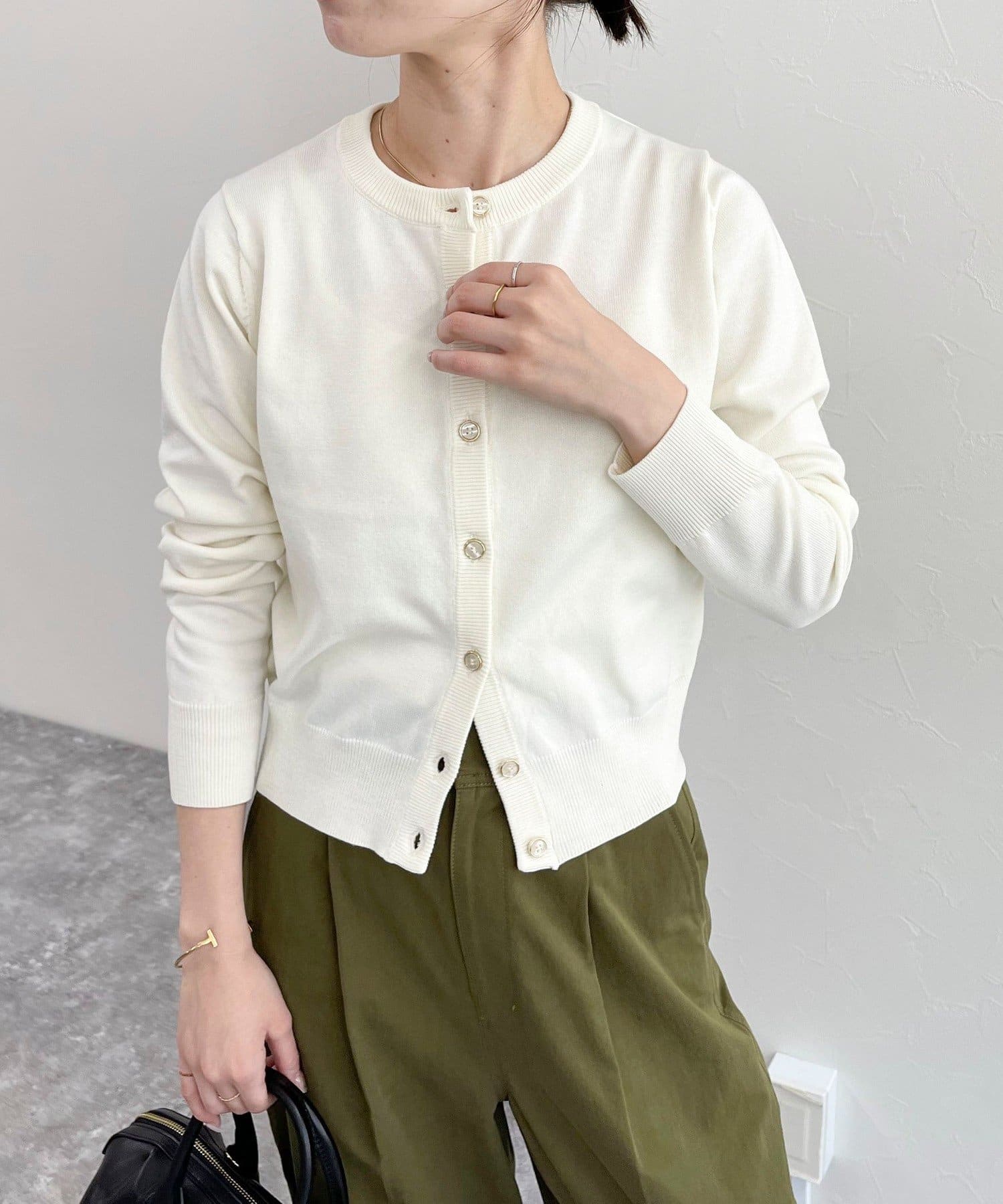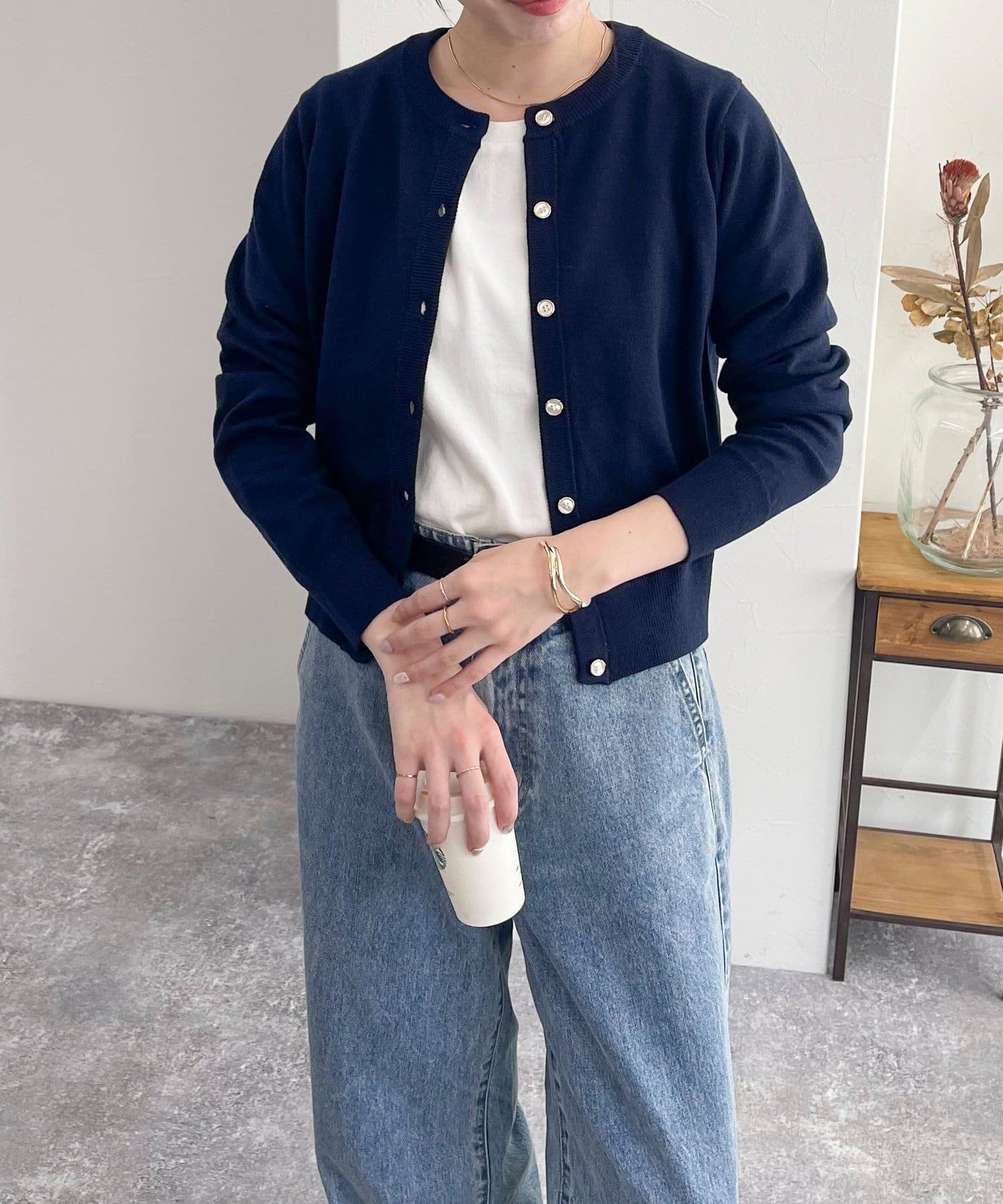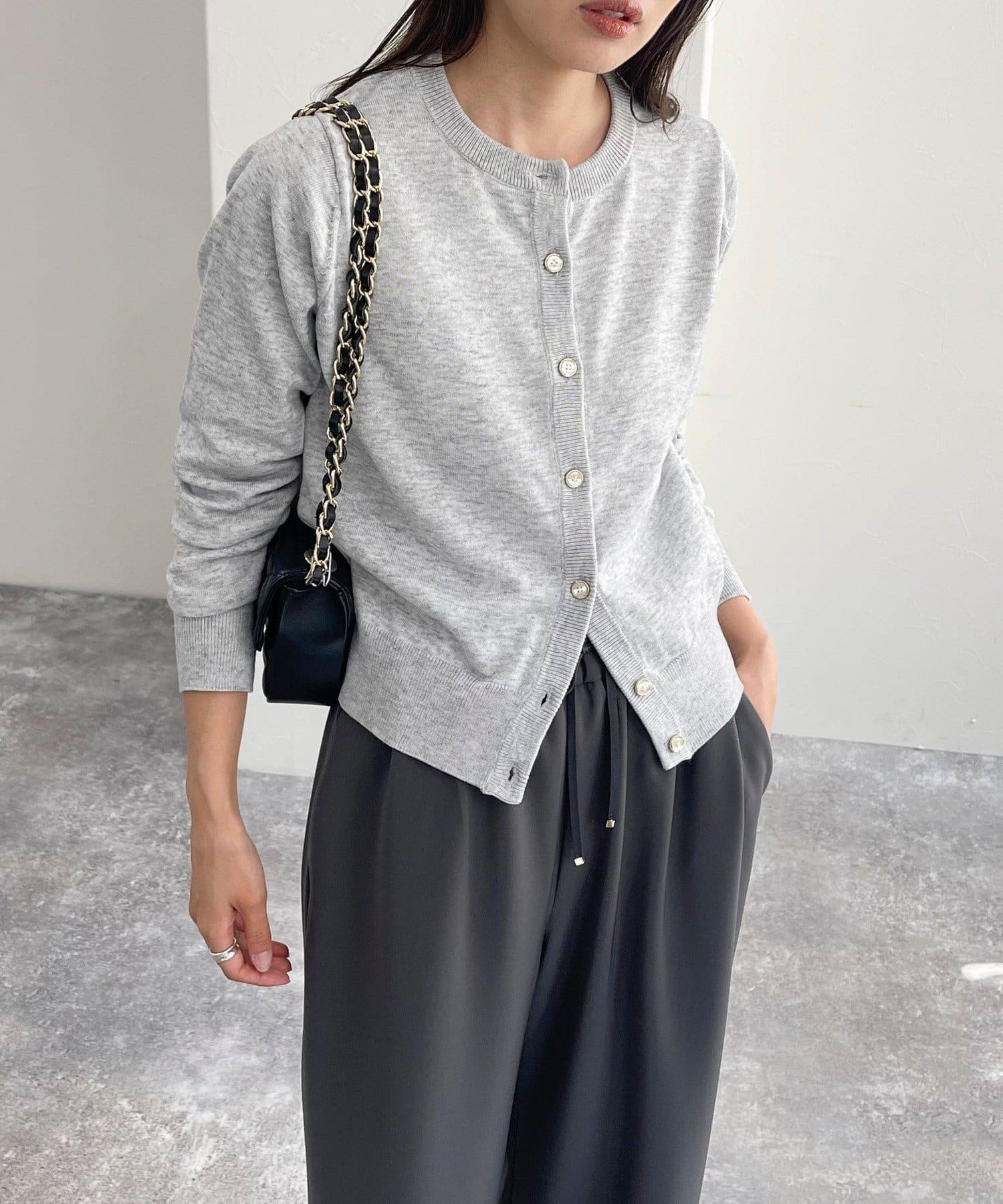 ・カラーバリエーション豊富なウール混のベーシック型のニットカーディガンです
