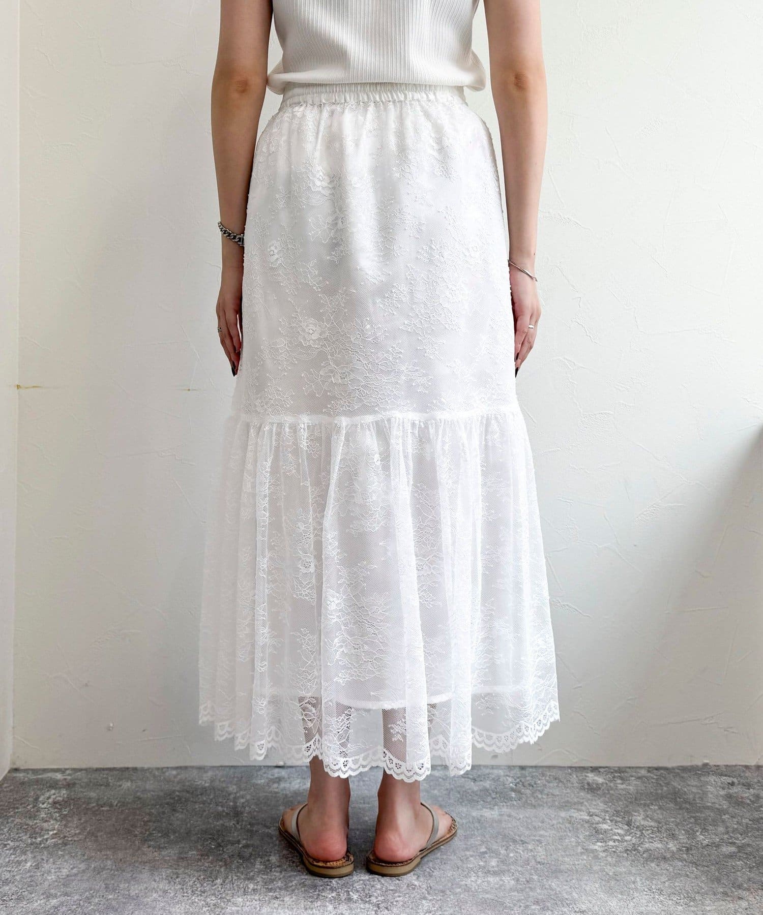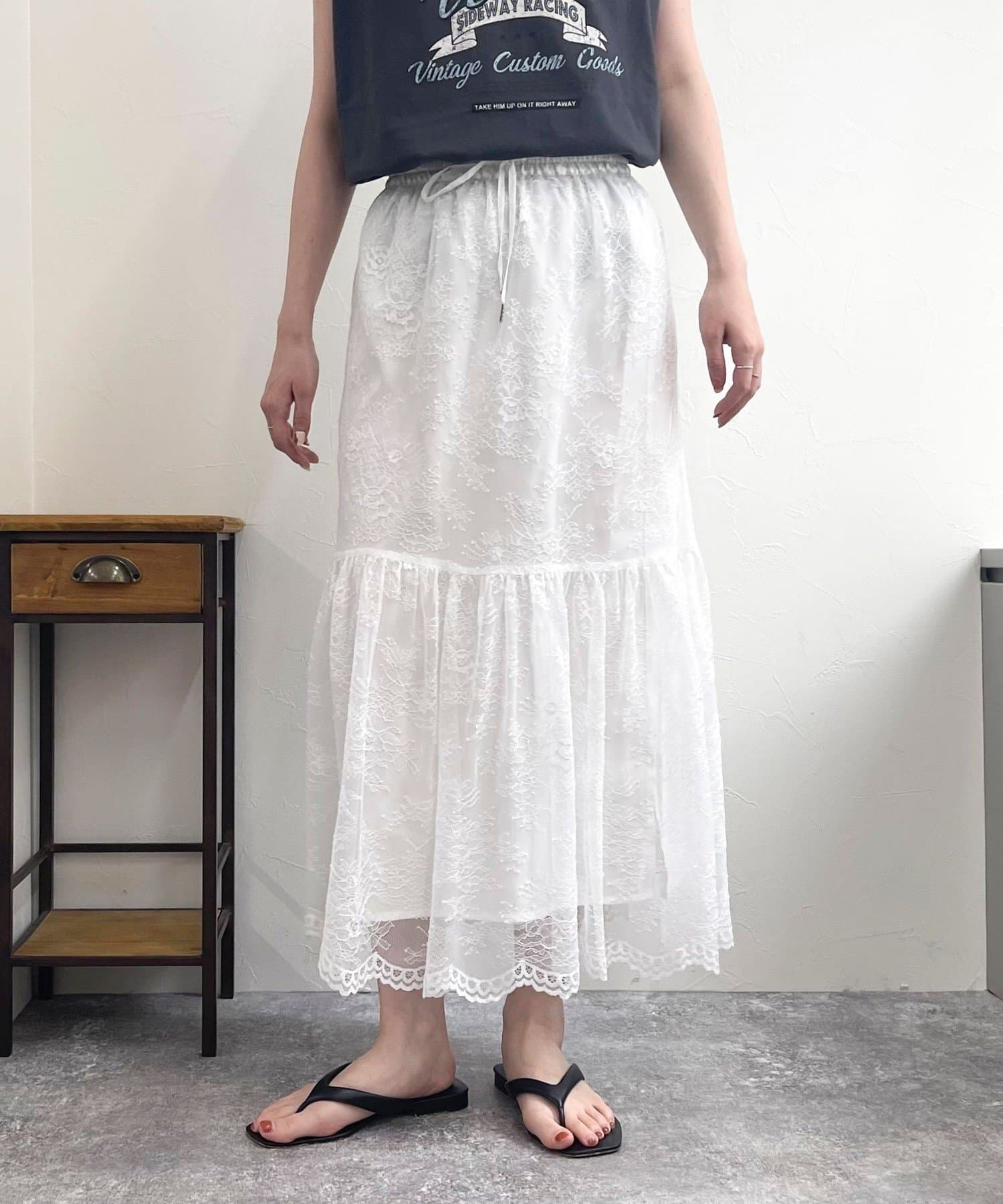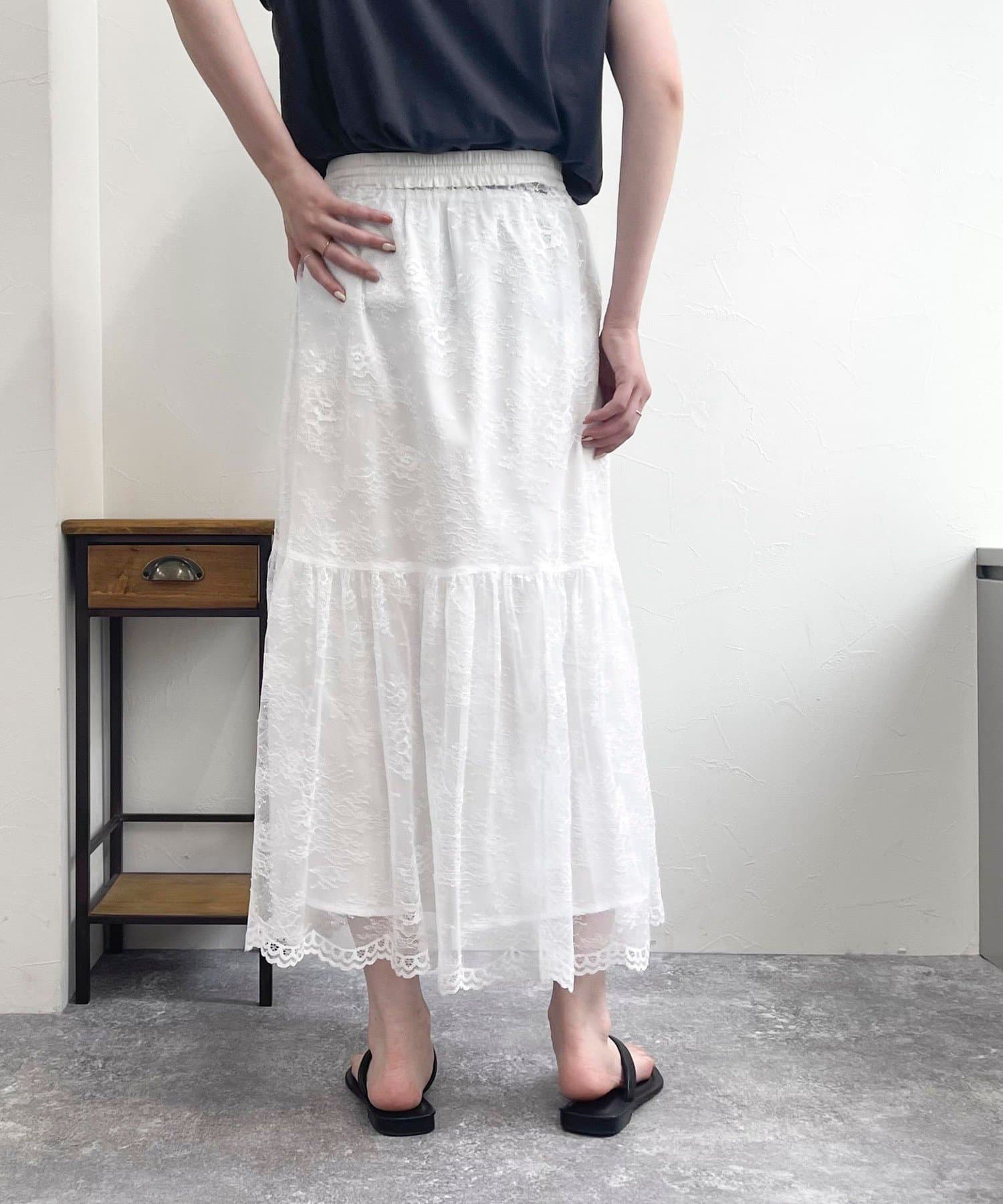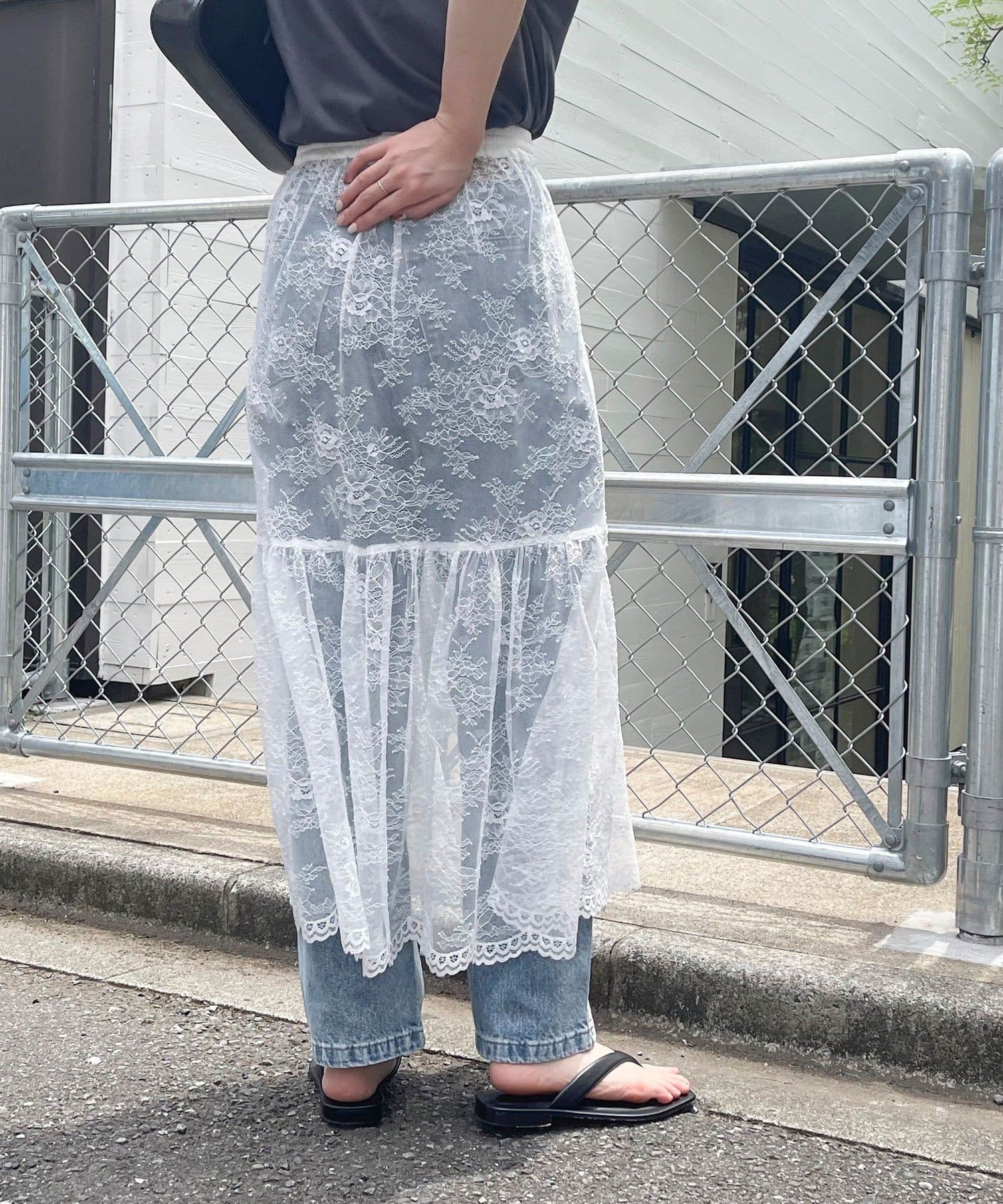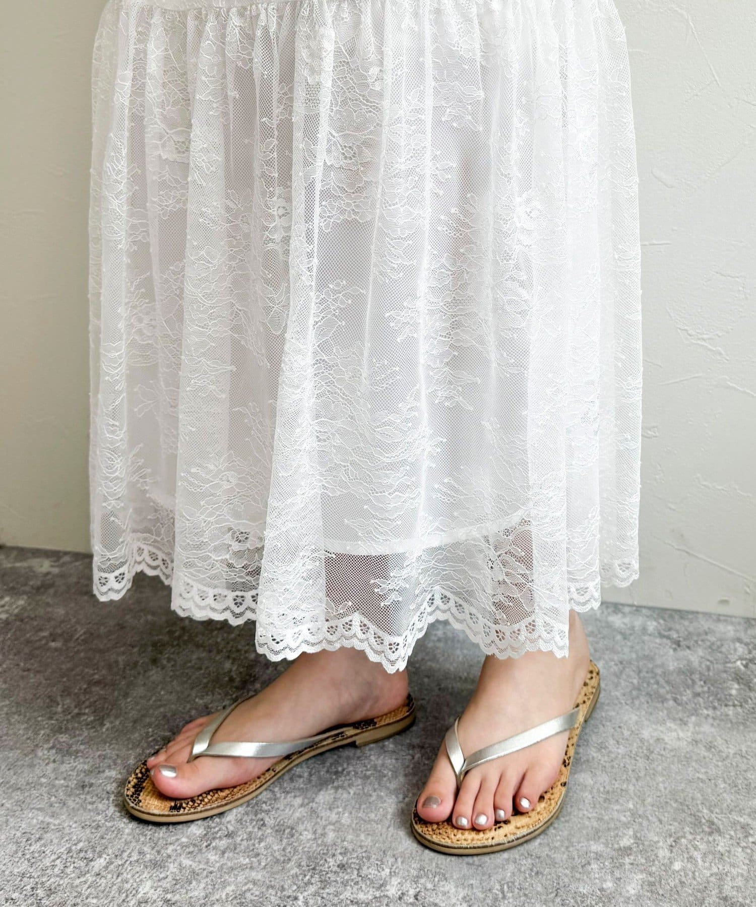 スカラレースが上品なレイヤードも出来る2wayギャザースカート