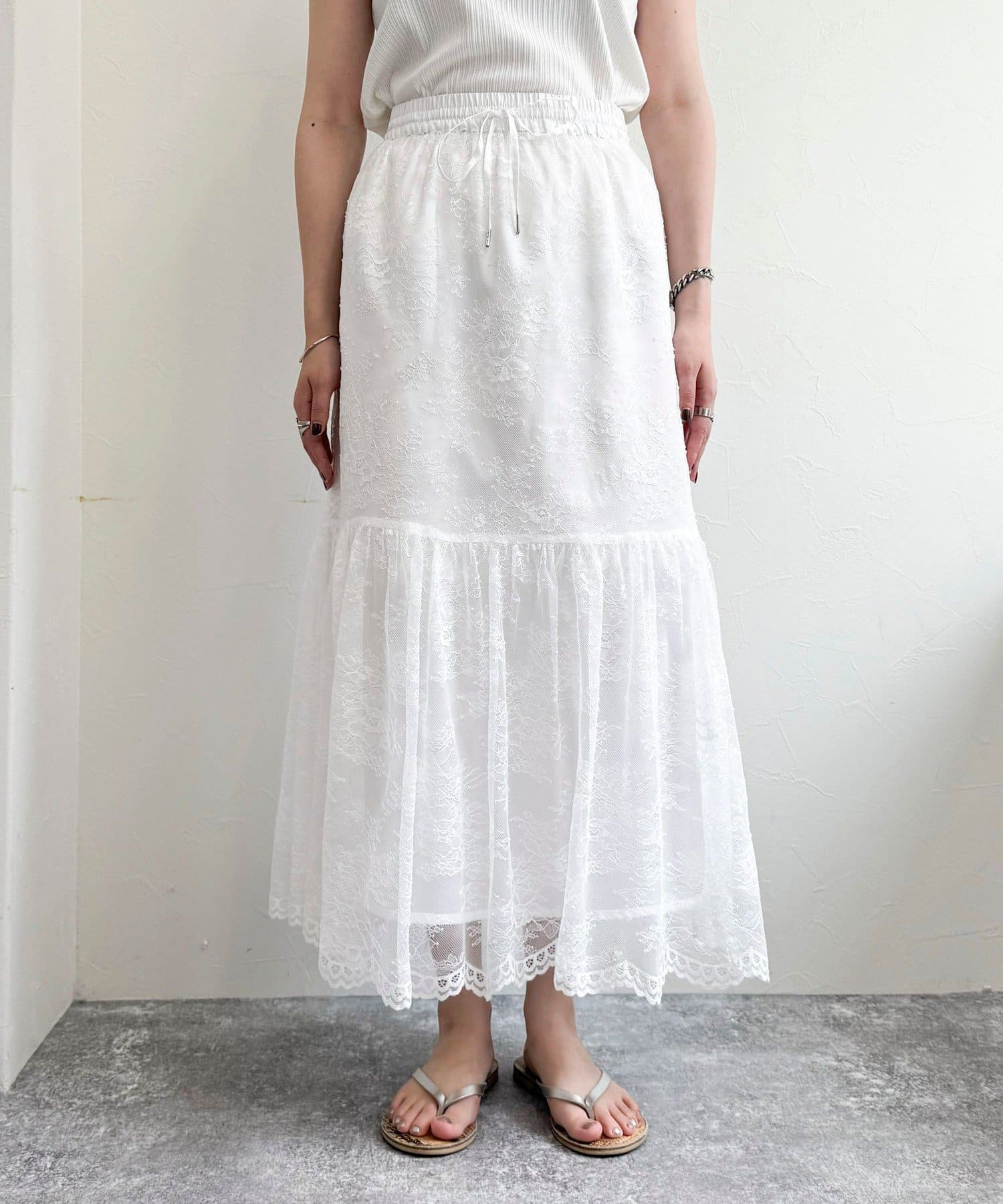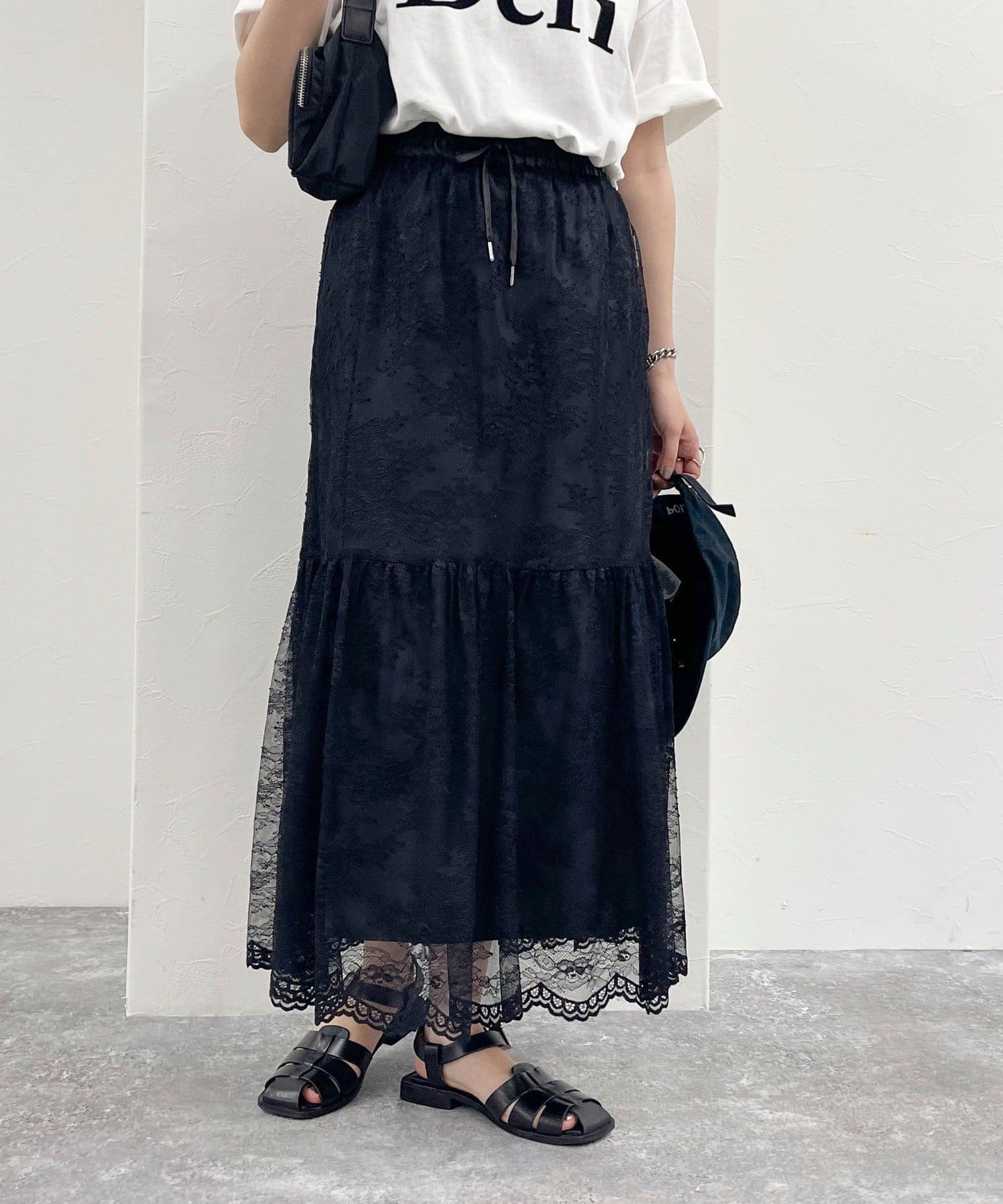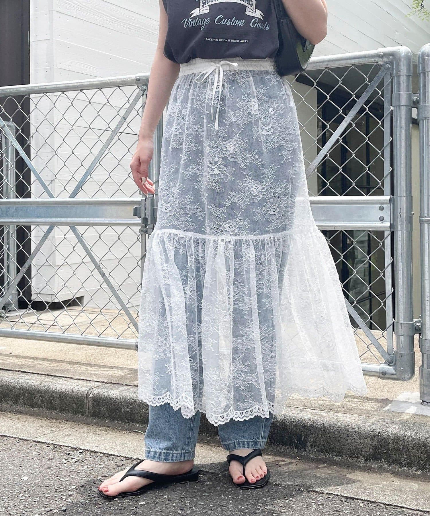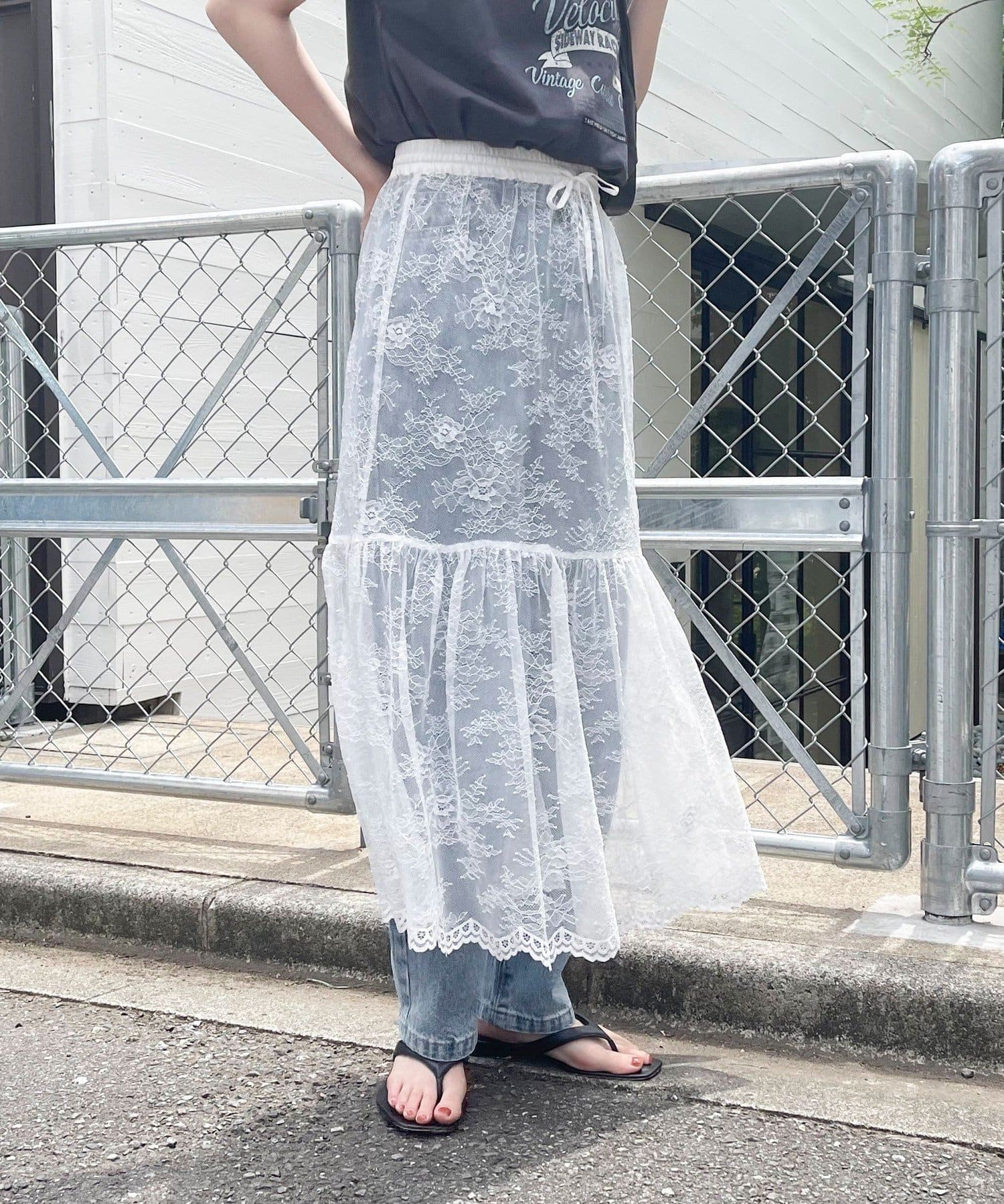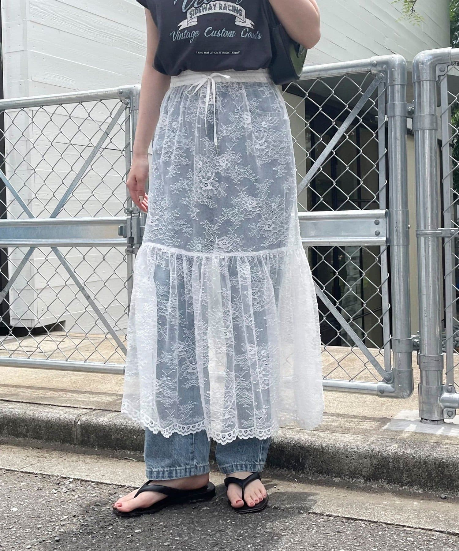 スカラレースが上品なレイヤードも出来る2wayギャザースカート