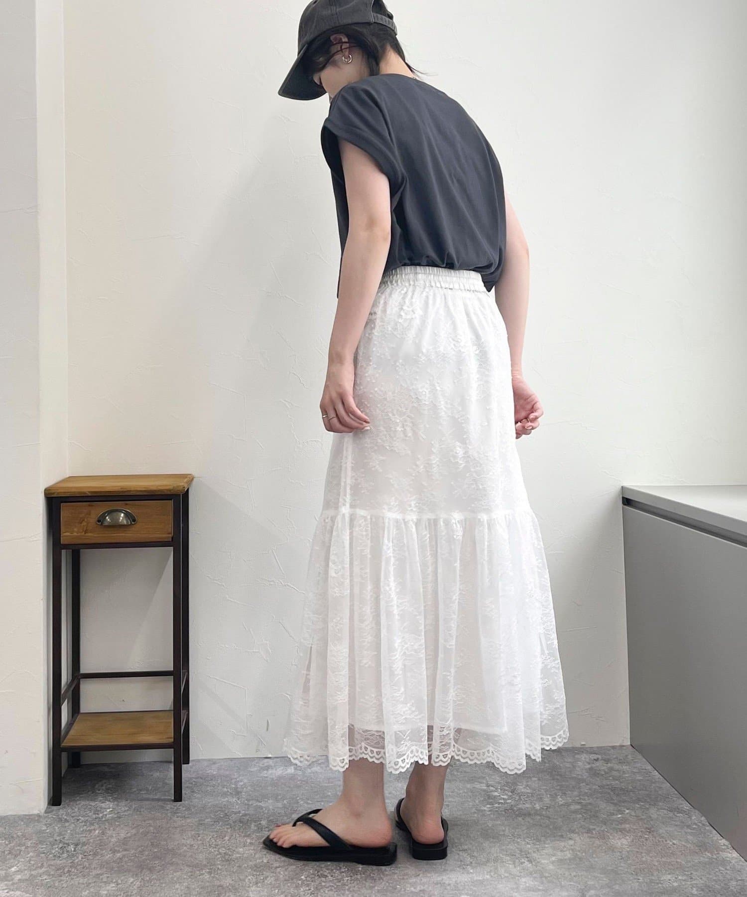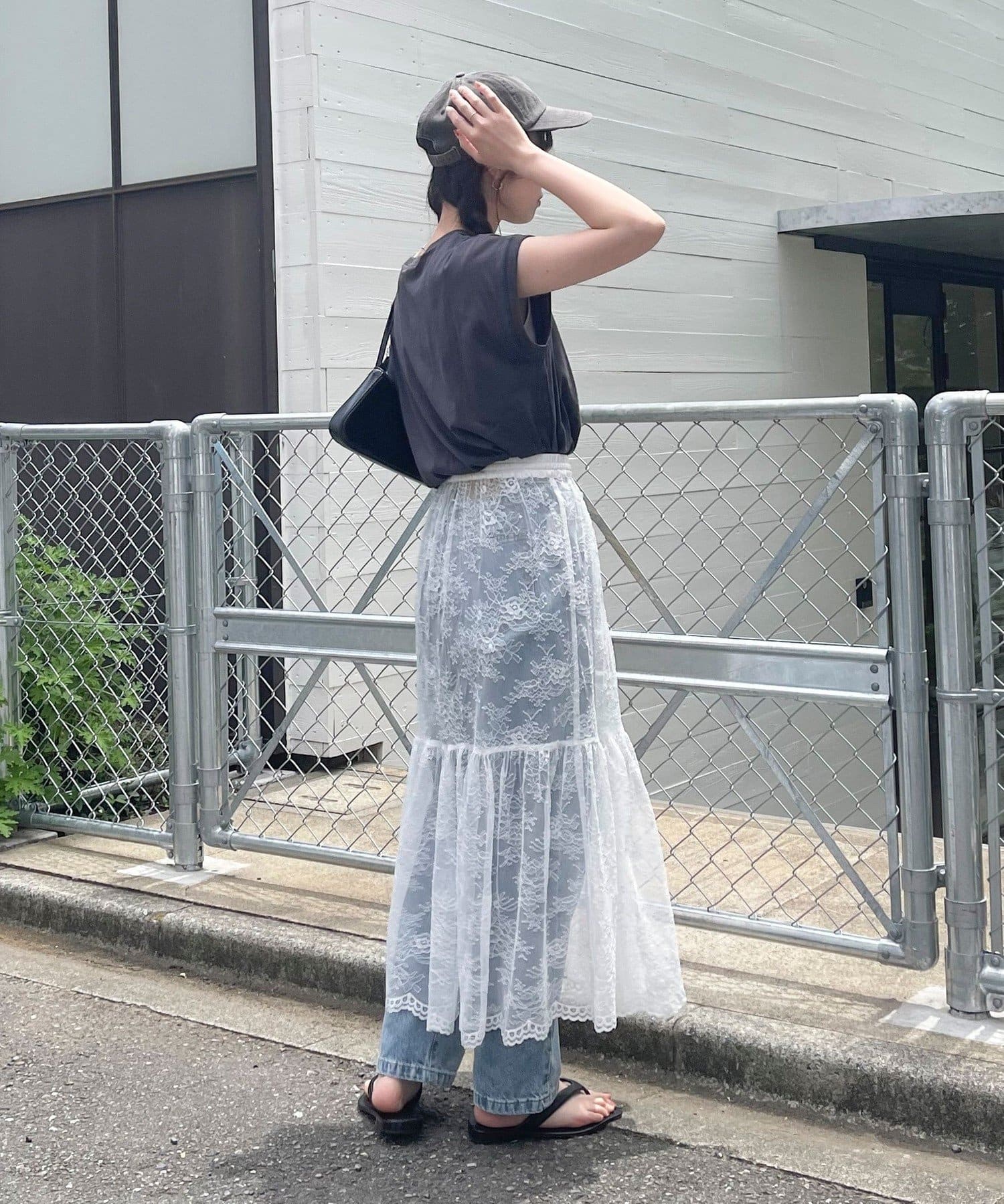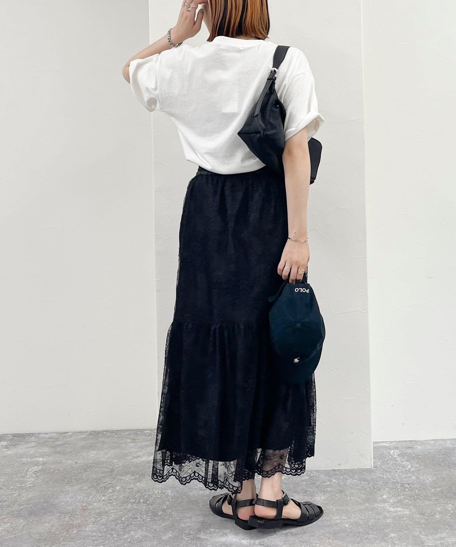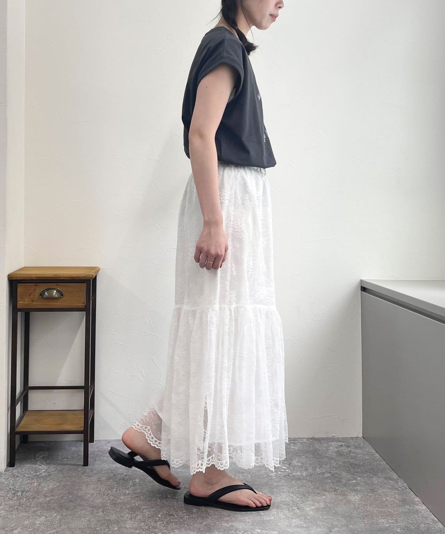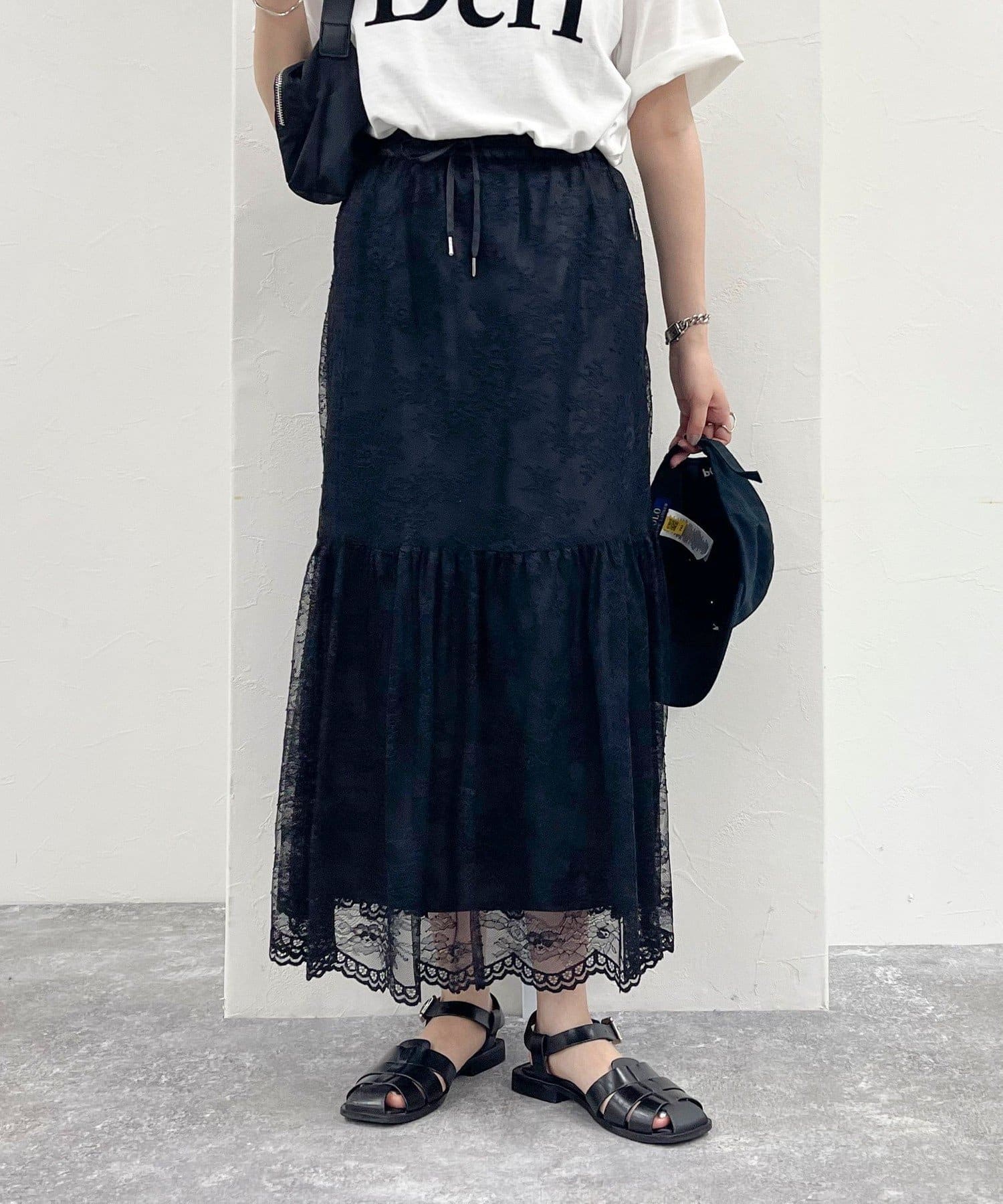 スカラレースが上品なレイヤードも出来る2wayギャザースカート