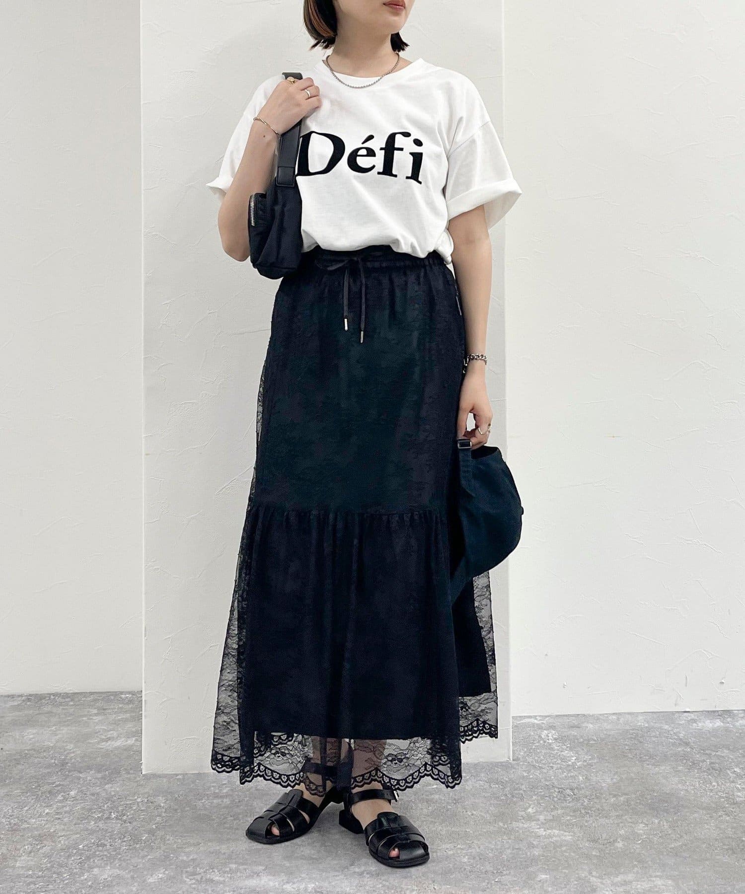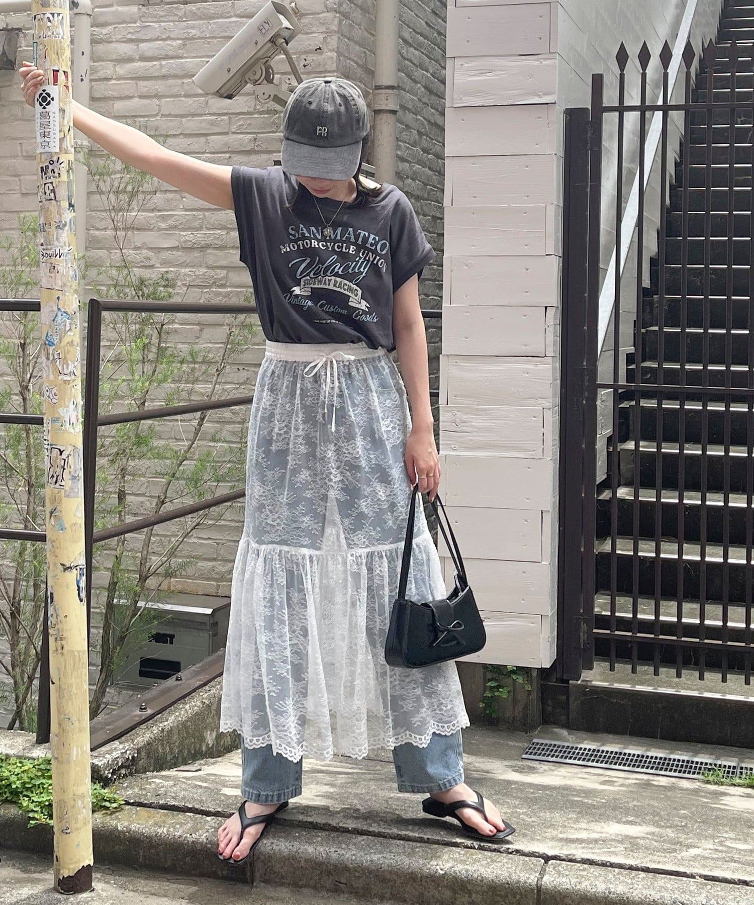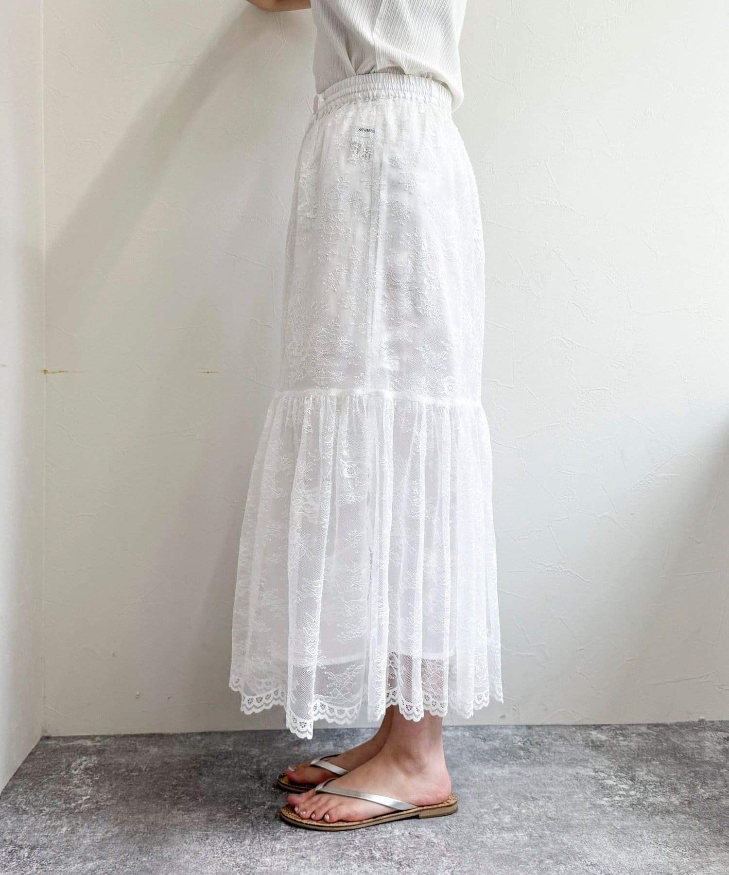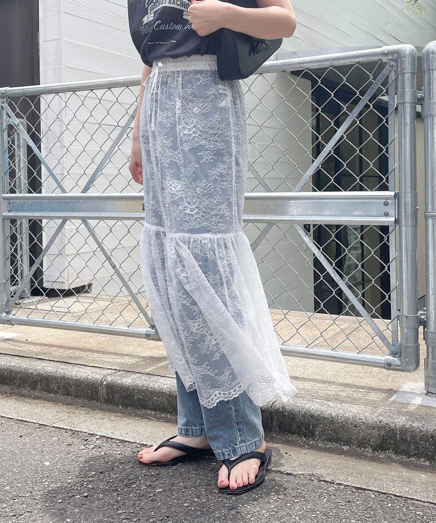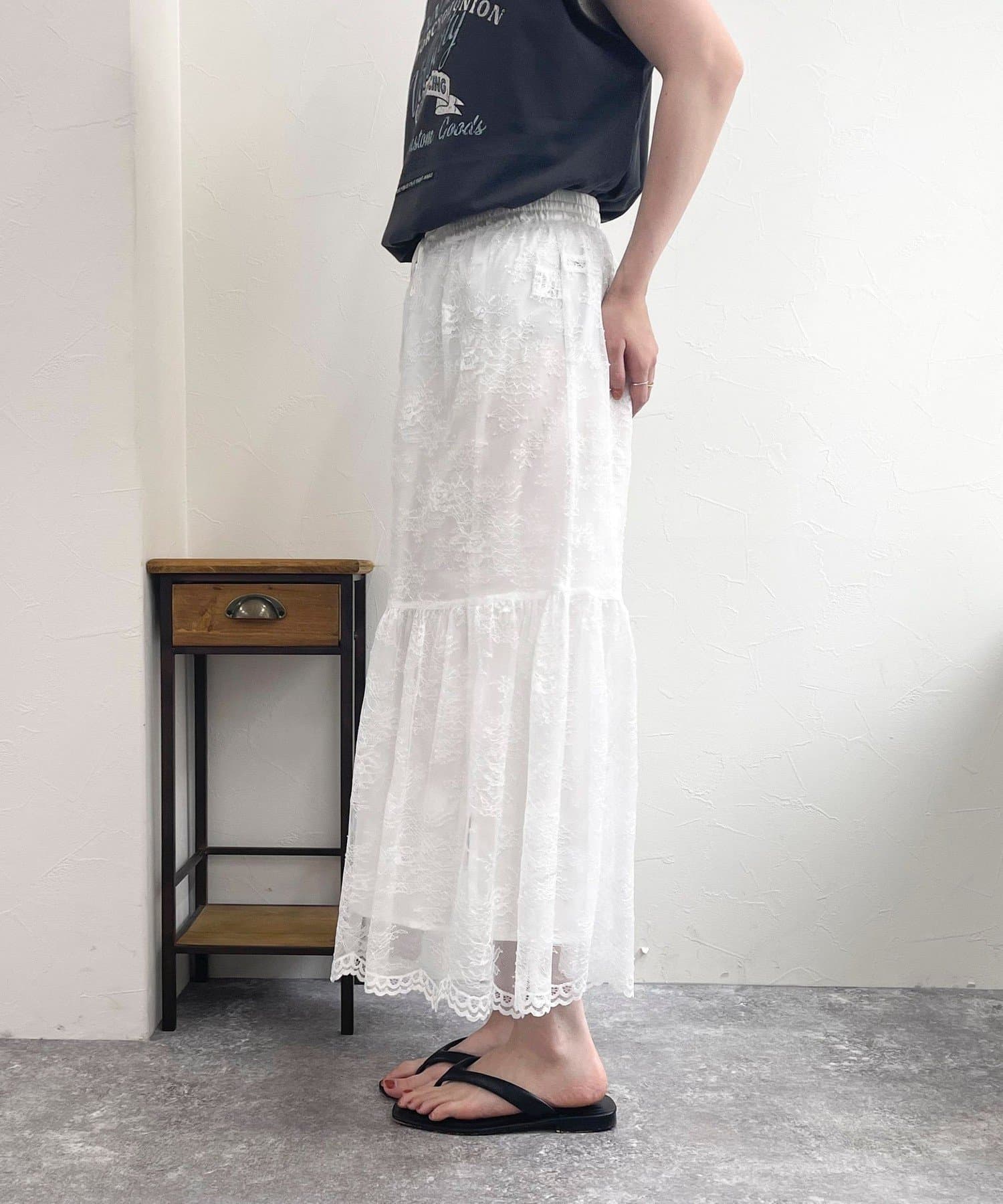 スカラレースが上品なレイヤードも出来る2wayギャザースカート