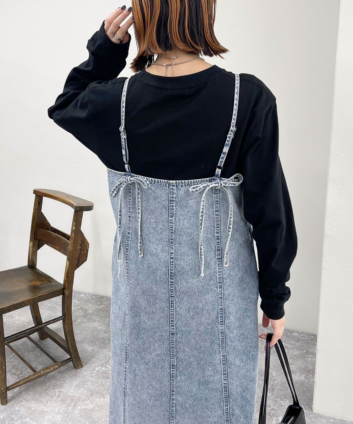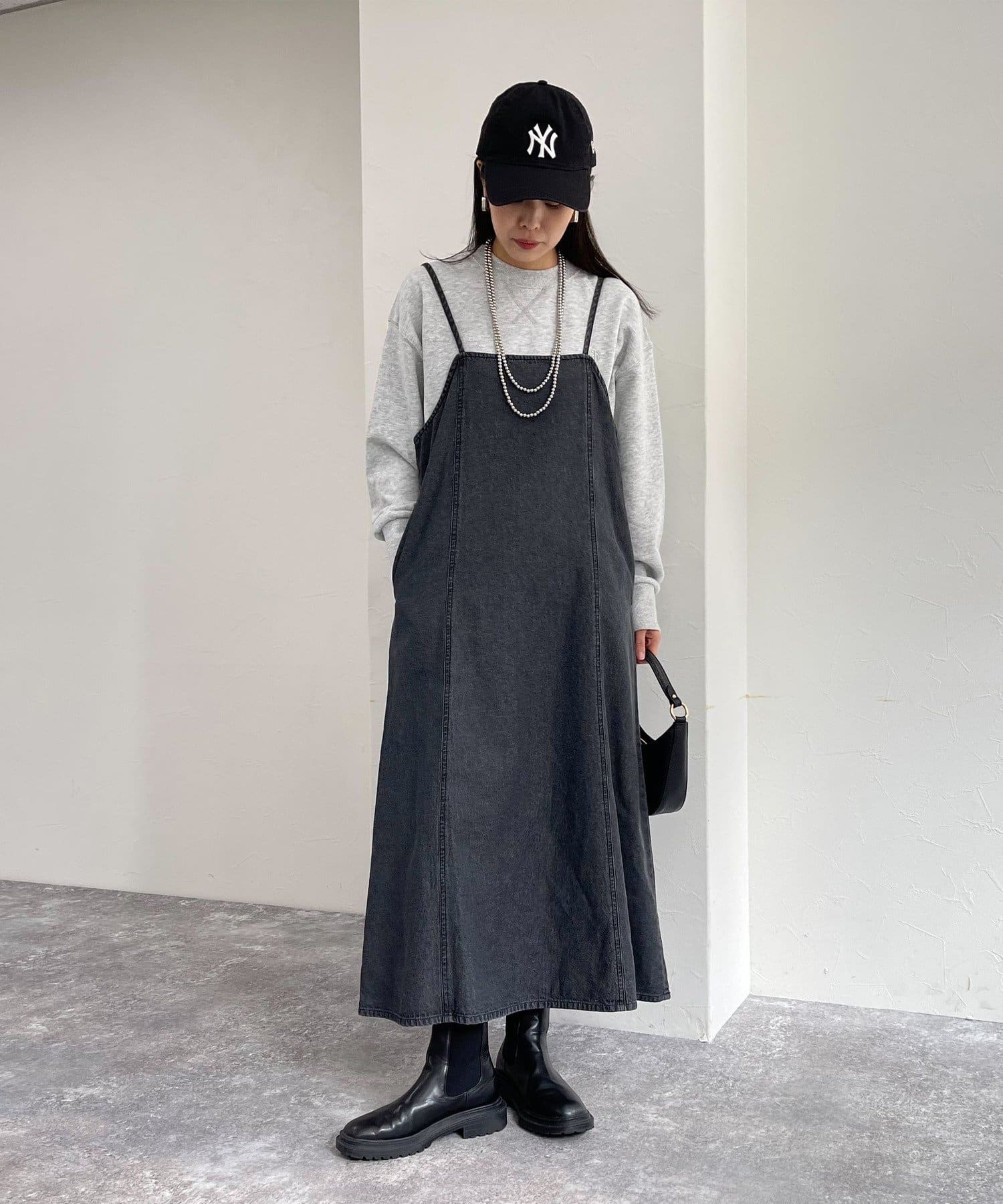 ・カジュアルコーデが決まるデニムのキャミワンピです