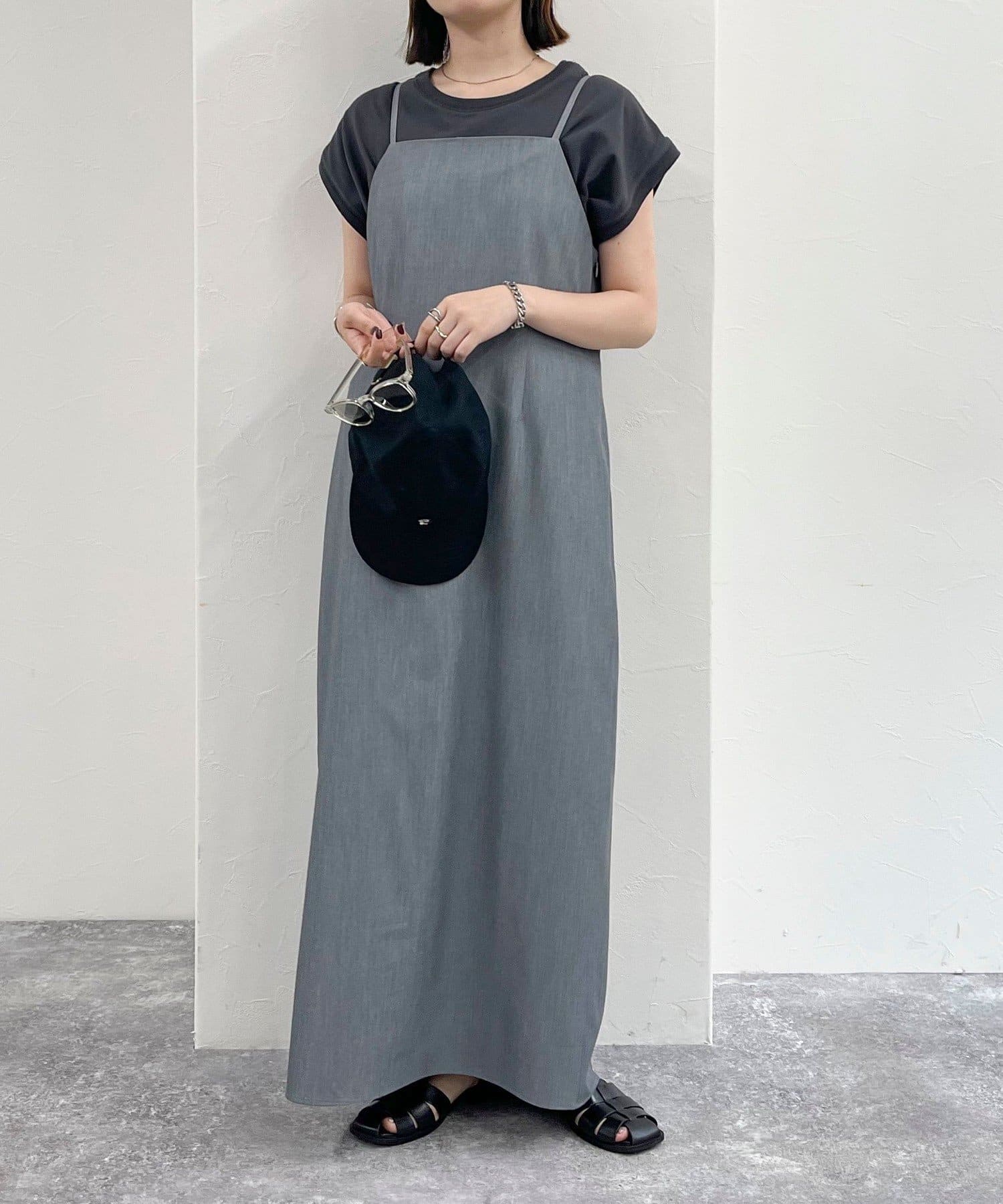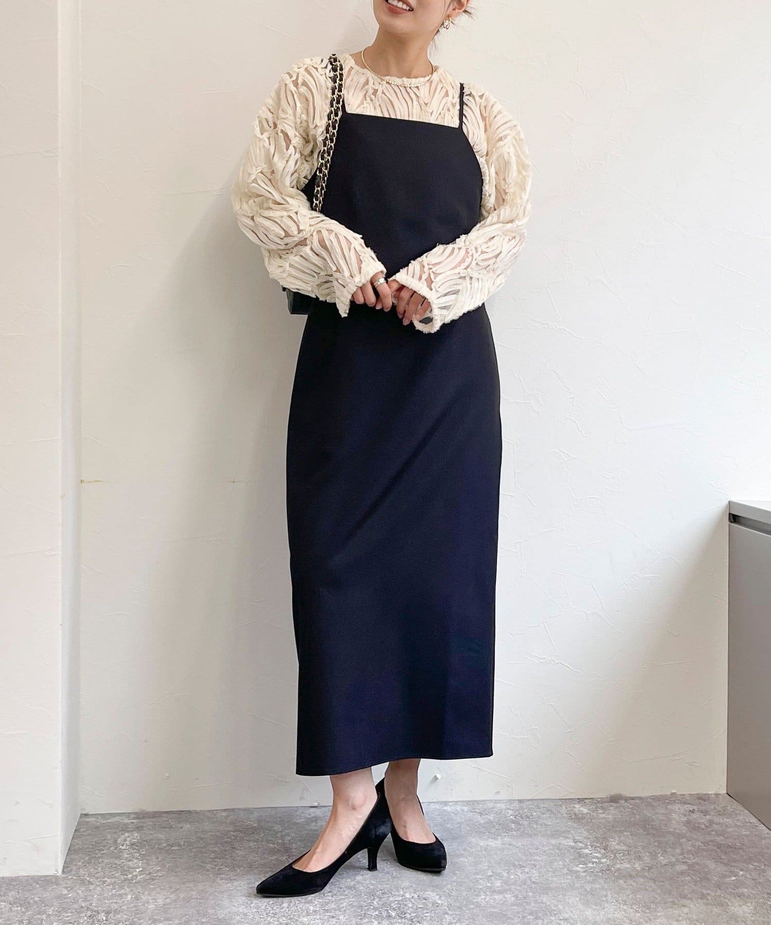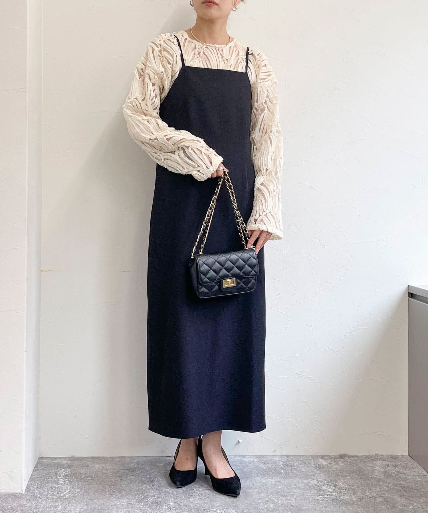 ・一枚着でも大人っぽく決まりますが、カジュアルにTシャツで合わせたり、ブラウス合わせでキレイ目に着こなしたりと幅広いコーディネートでお使いいただけます