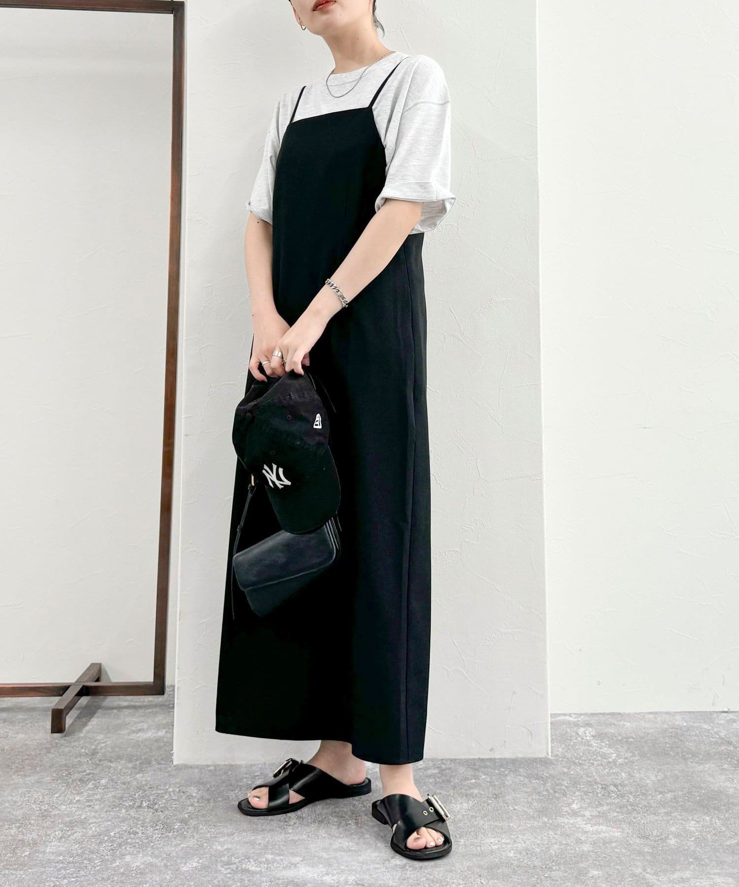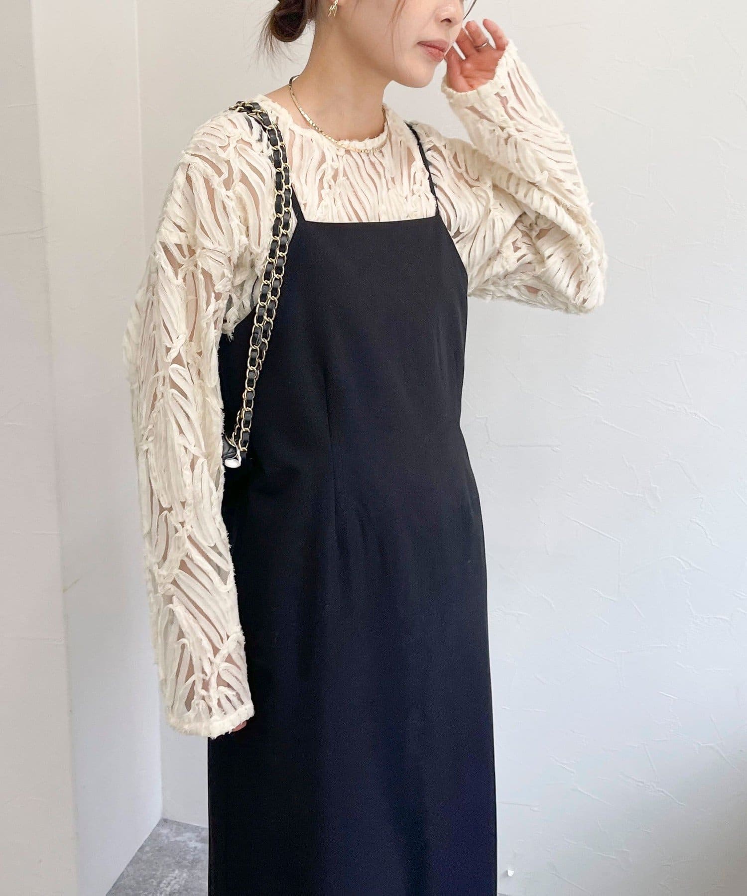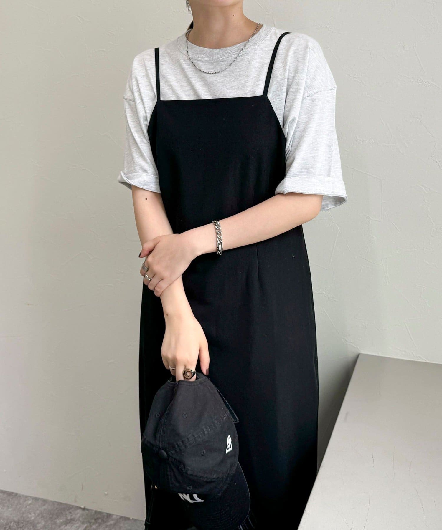 ・一枚着でも大人っぽく決まりますが、カジュアルにTシャツで合わせたり、ブラウス合わせでキレイ目に着こなしたりと幅広いコーディネートでお使いいただけます