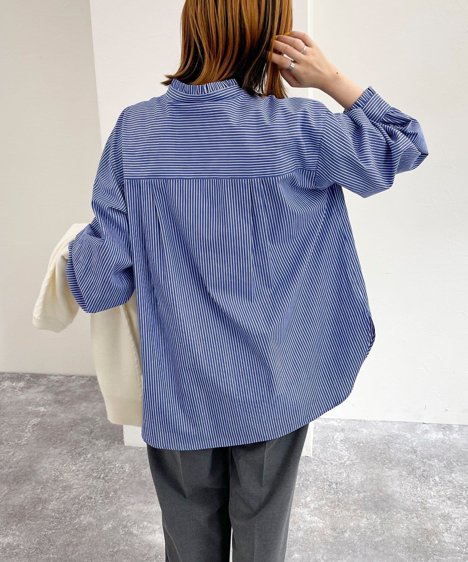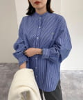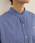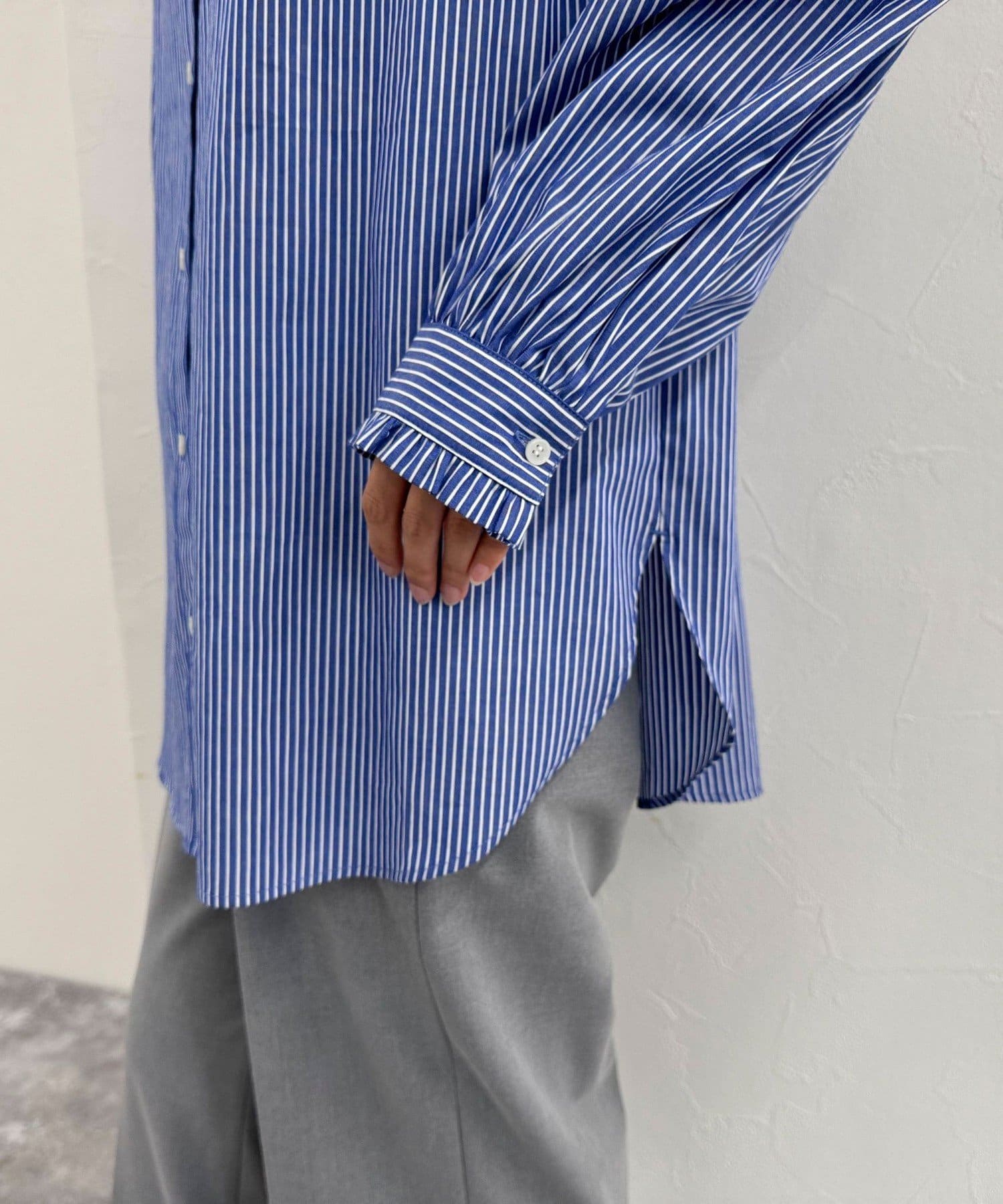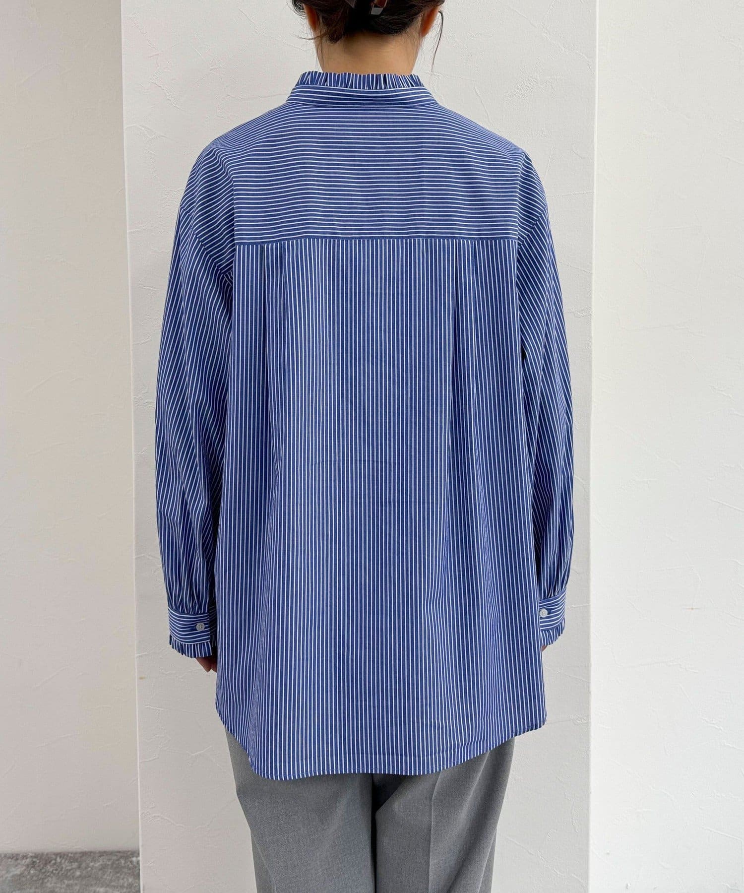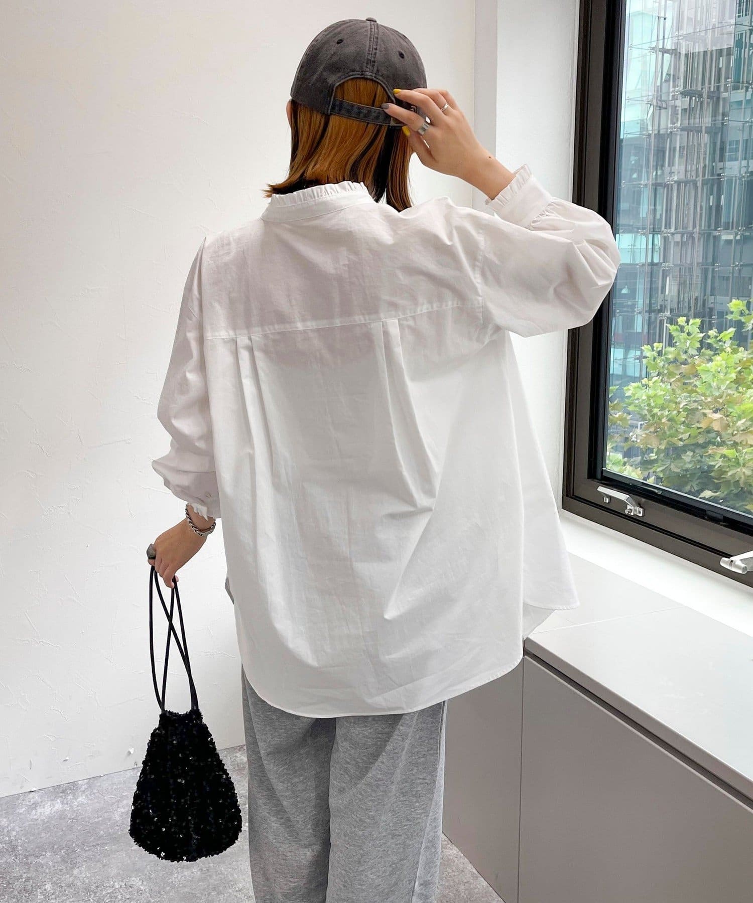 ・女性らしさ溢れるバンドカラーフリルシャツです