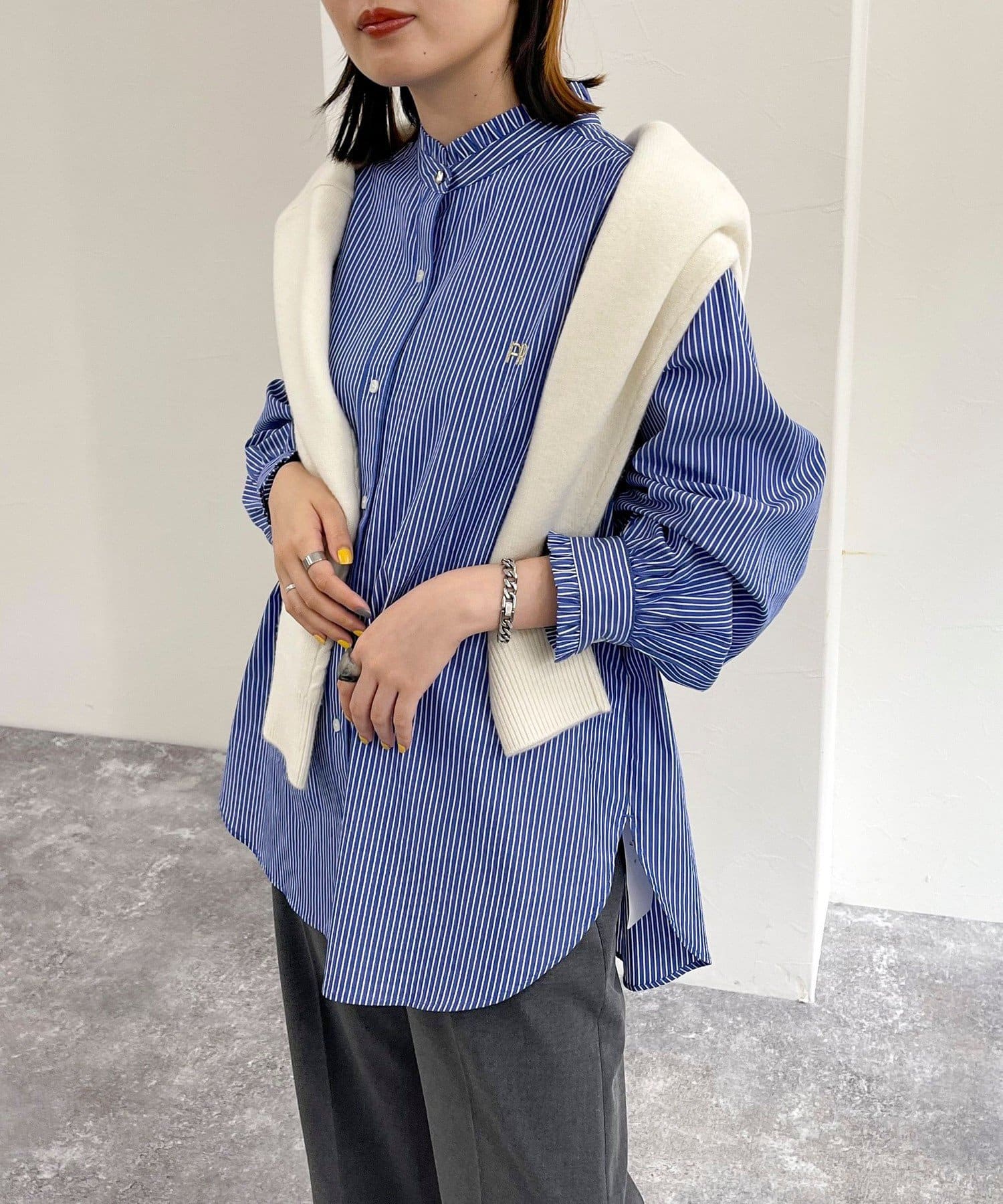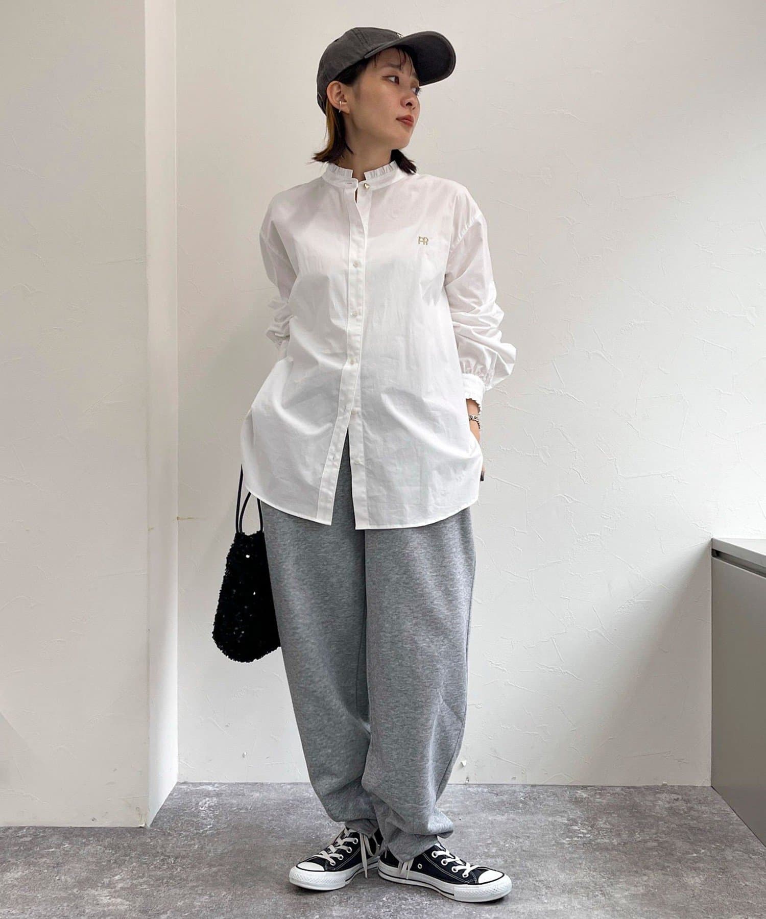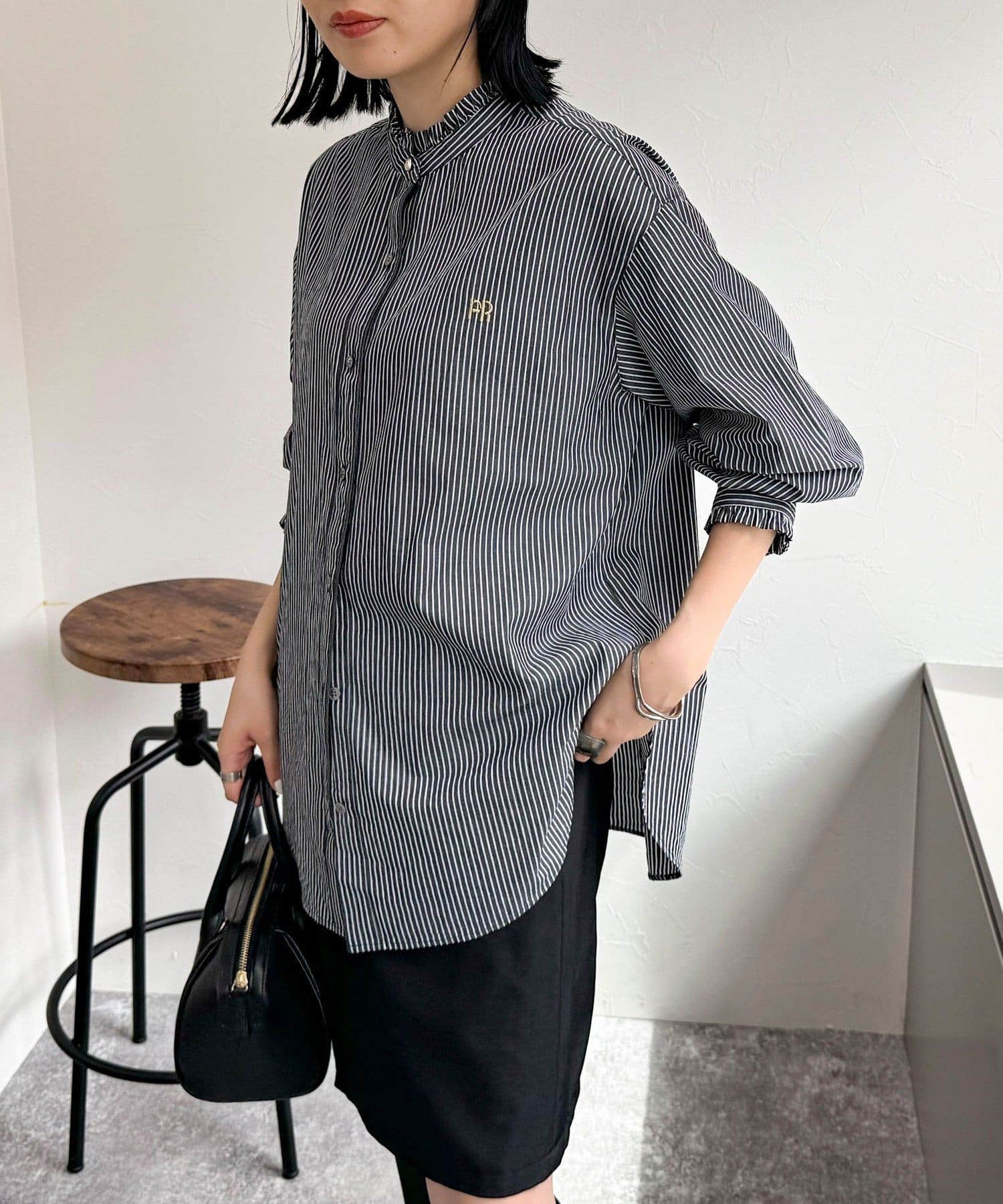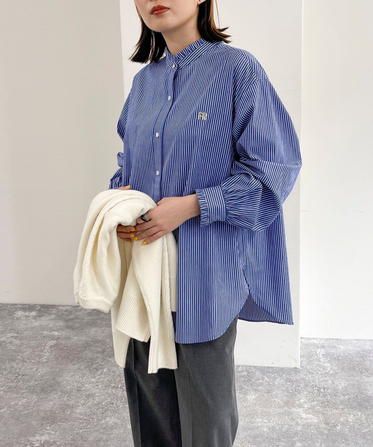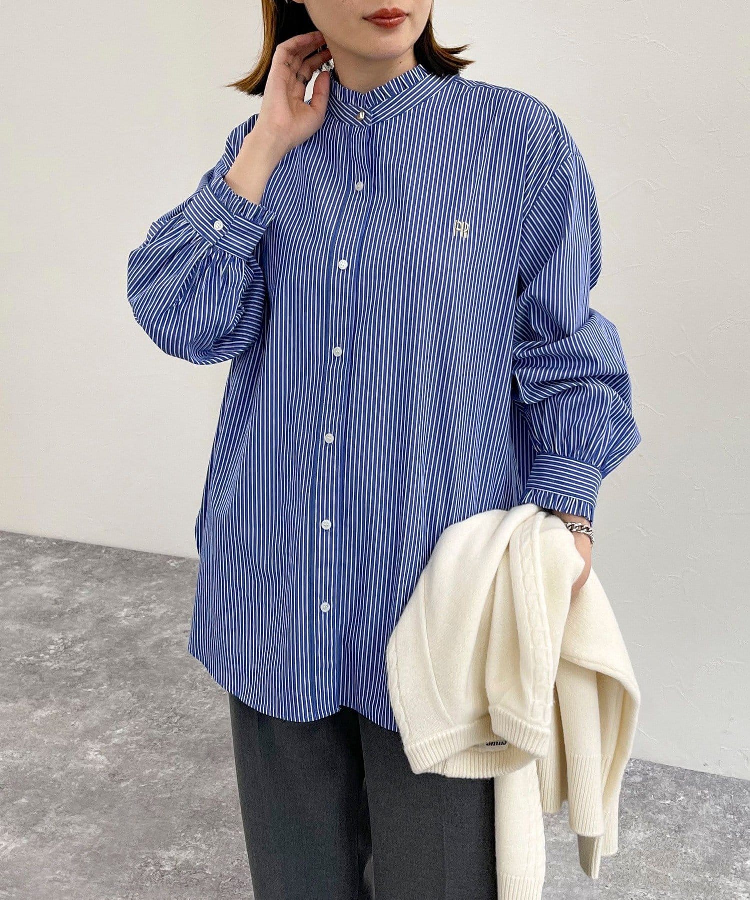 レディライクな1枚で着映えするFR刺繍バンドカラーフリルシャツ