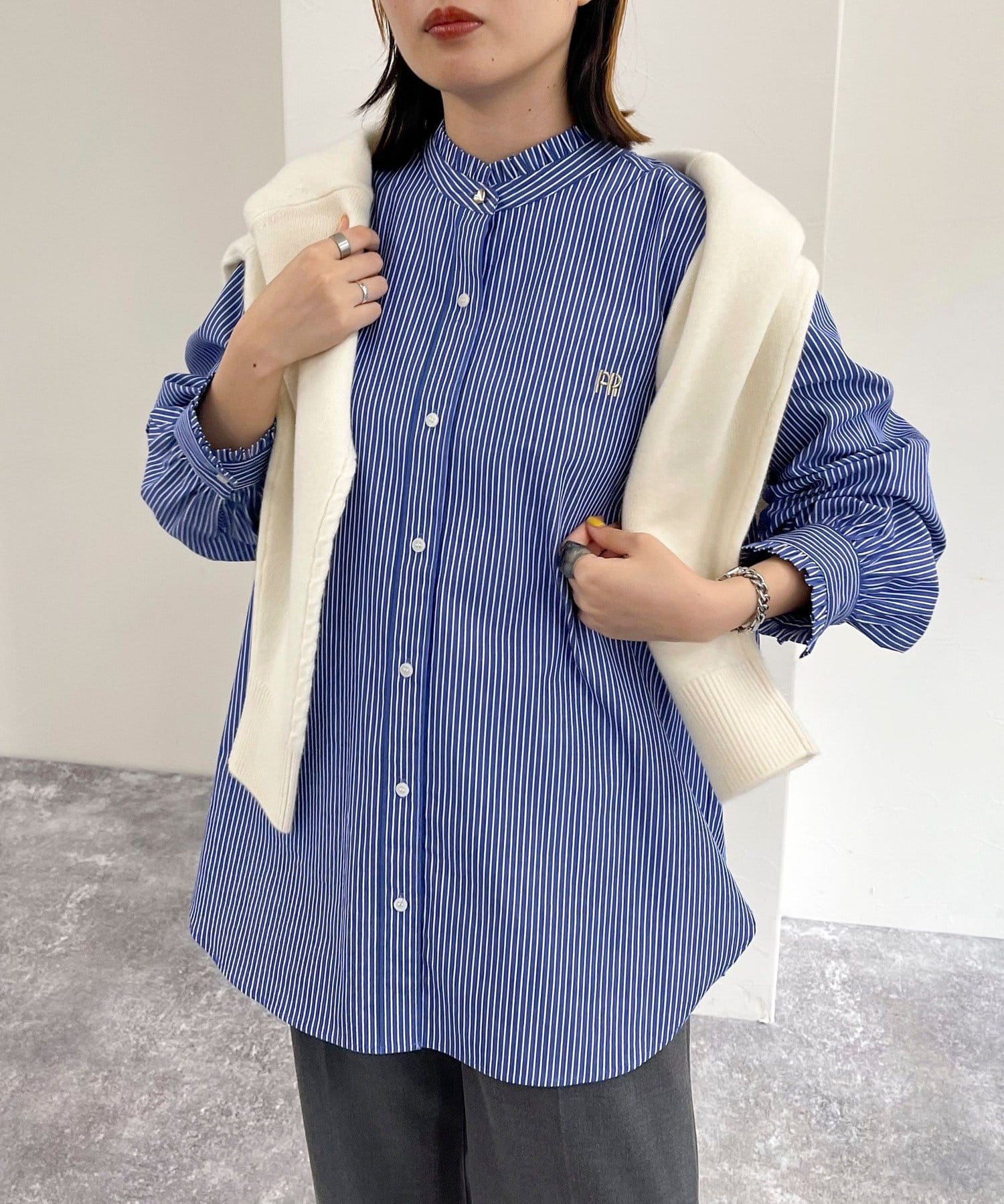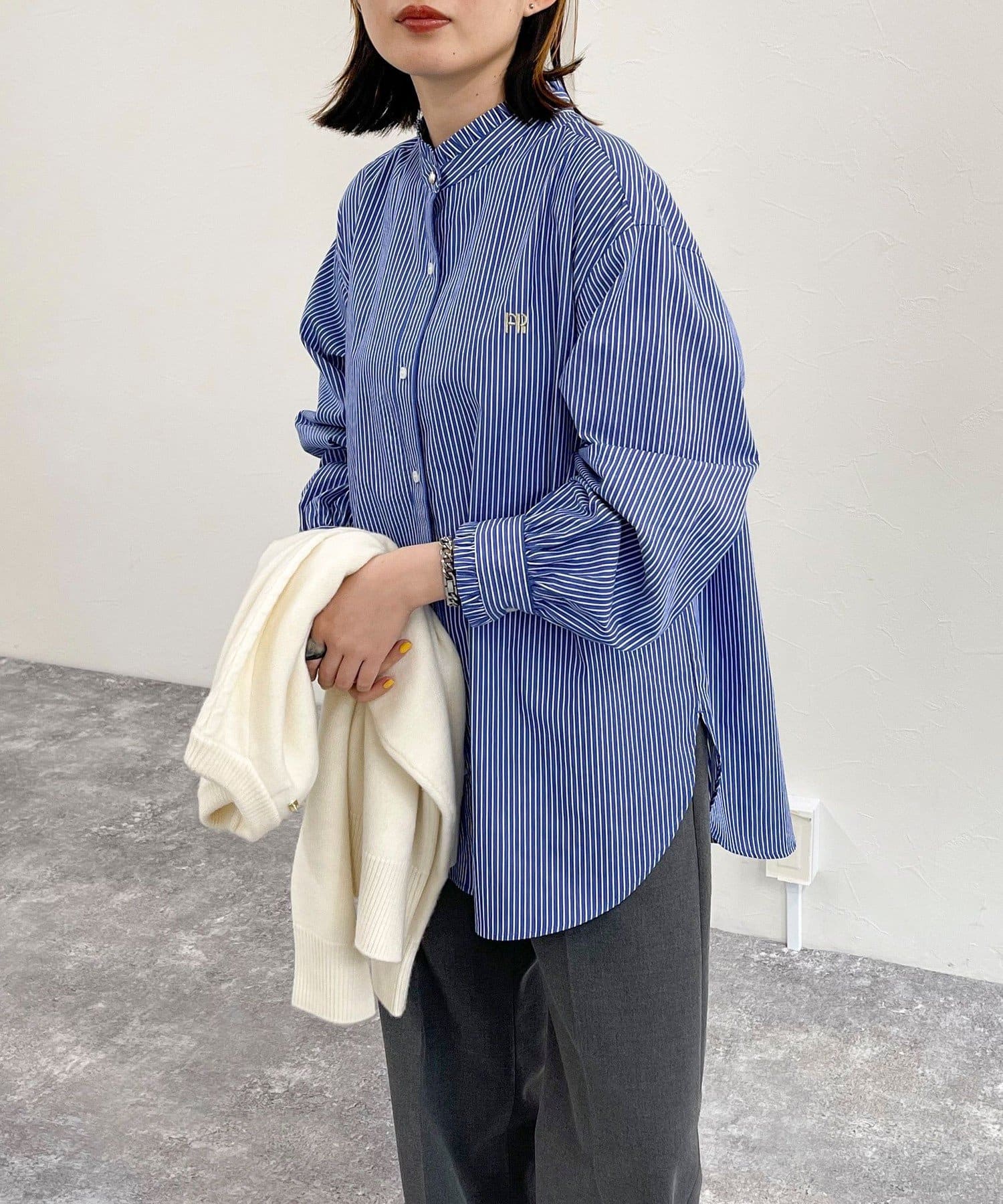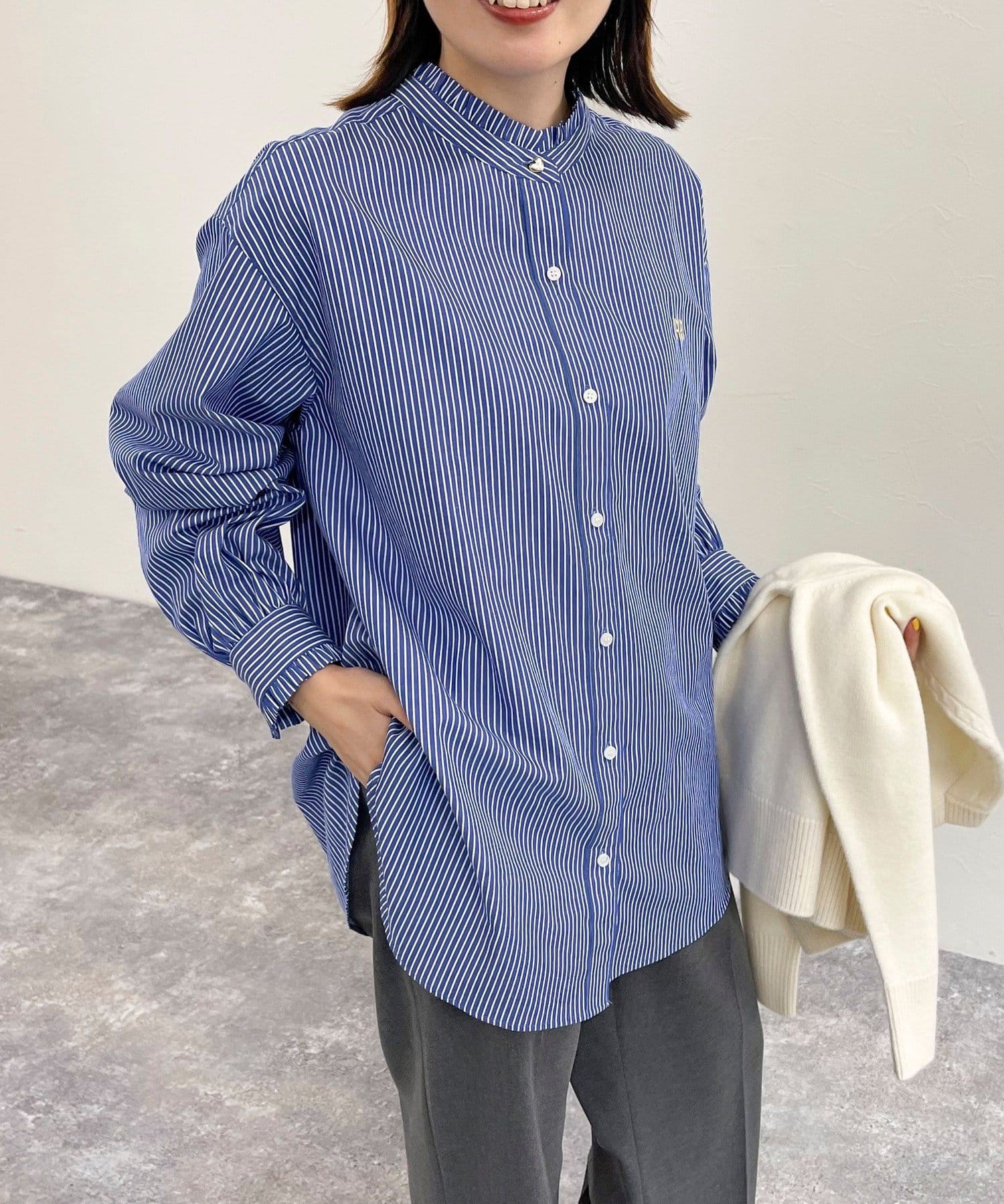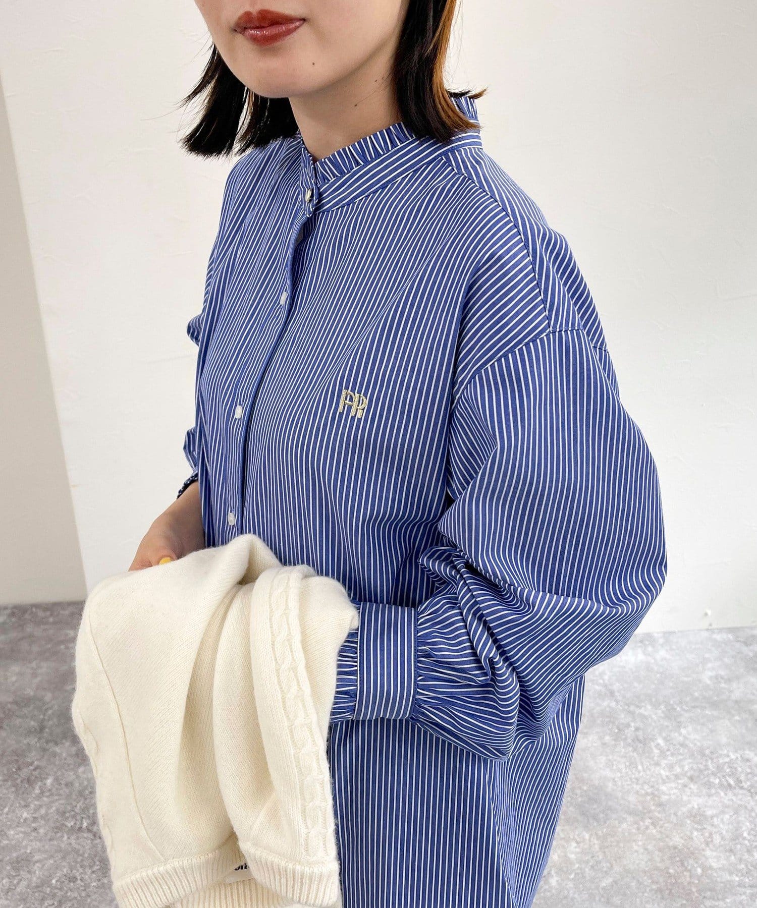 レディライクな1枚で着映えするFR刺繍バンドカラーフリルシャツ
