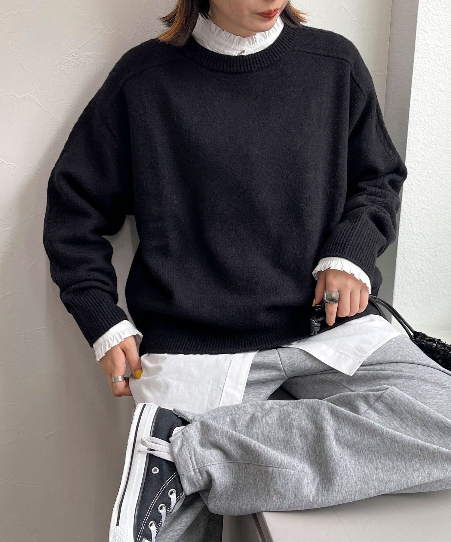 ・ネックに加えて袖口にもフリルが施されており、コーデに遊び心をプラス!