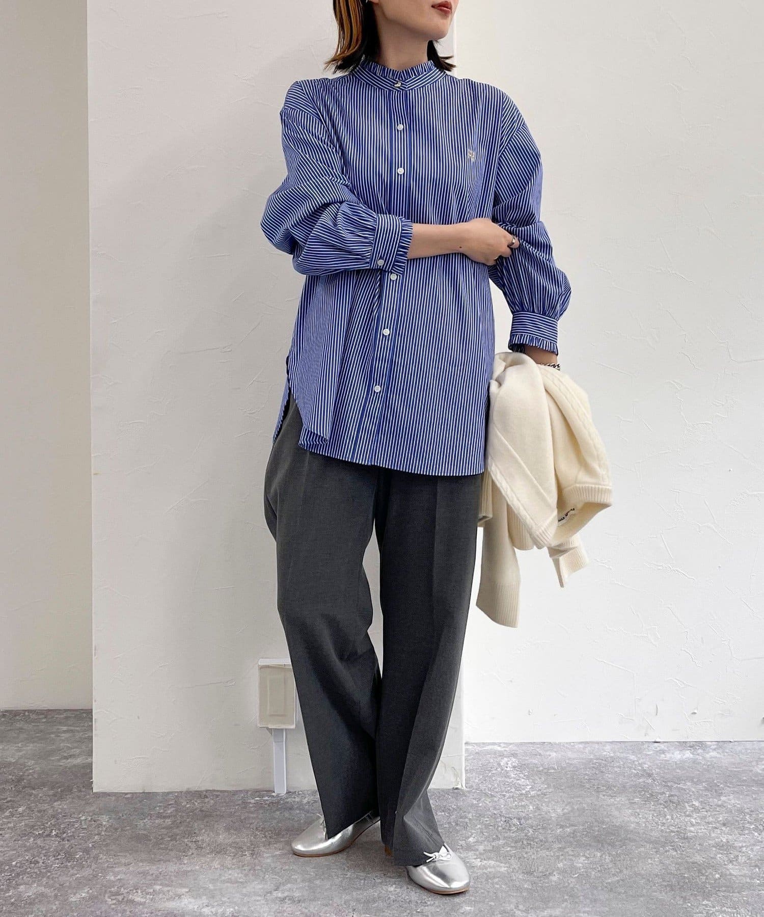・フリルの可愛らしさをバンドカラーで抑えた、大人の女性も使いやすいアイテムです