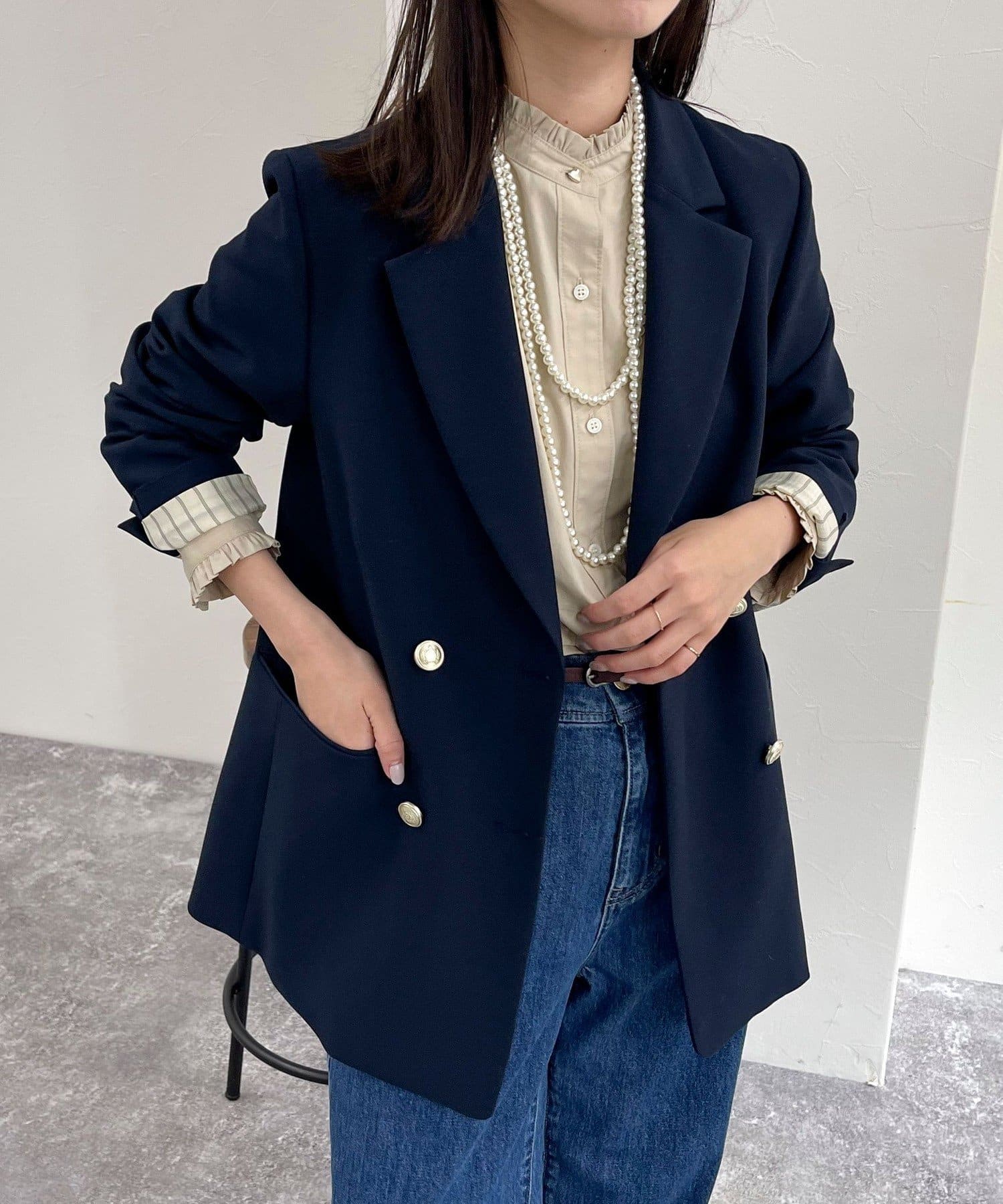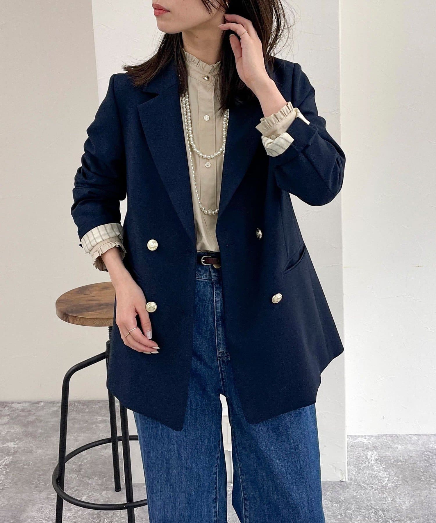 ・1枚でももちろんかわいいですが、寒い時期にはジャケットやニットにインするレイヤードスタイルもオススメです