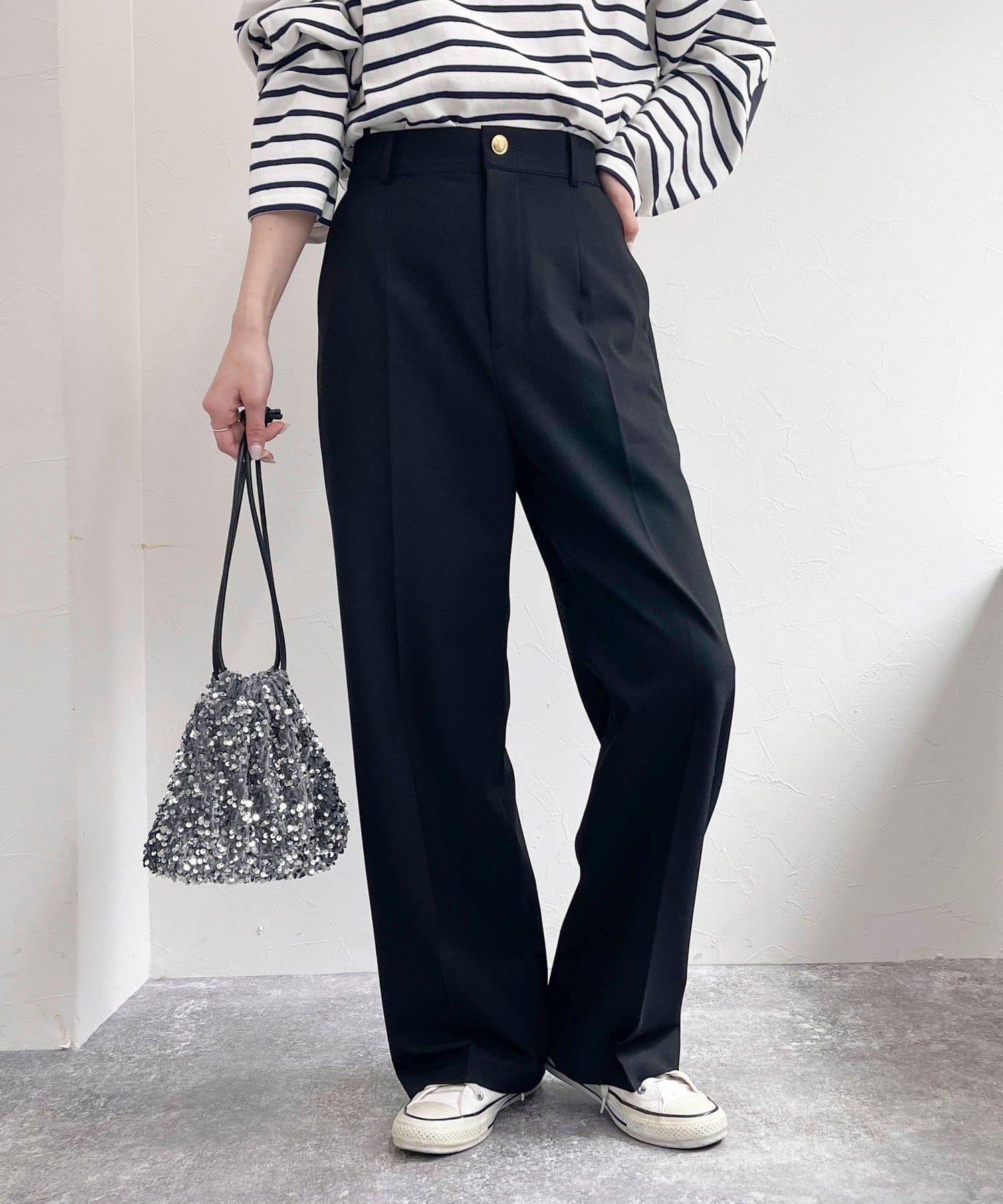 ・ゴールド釦がアクセントになった脚長効果抜群のパンツです