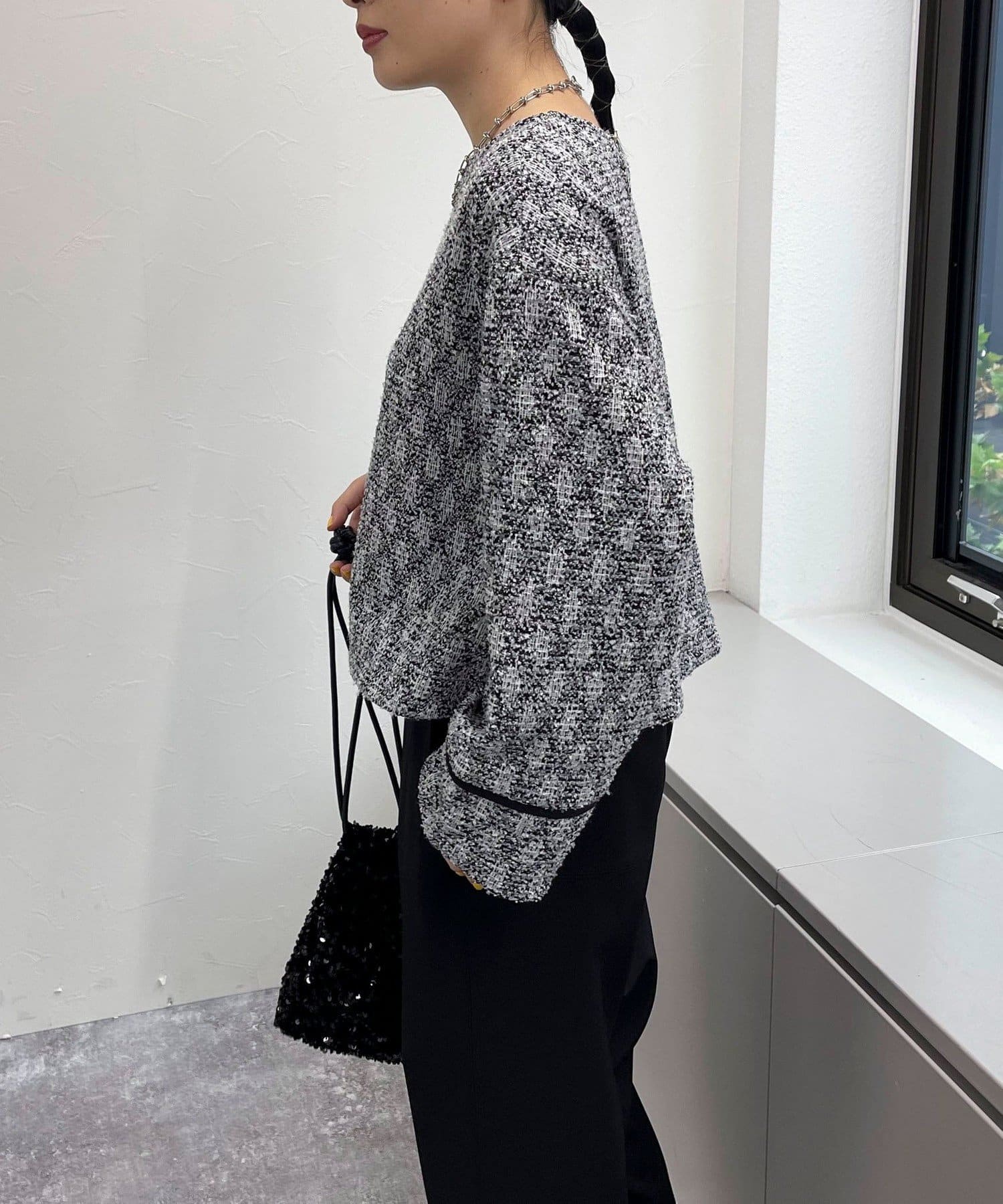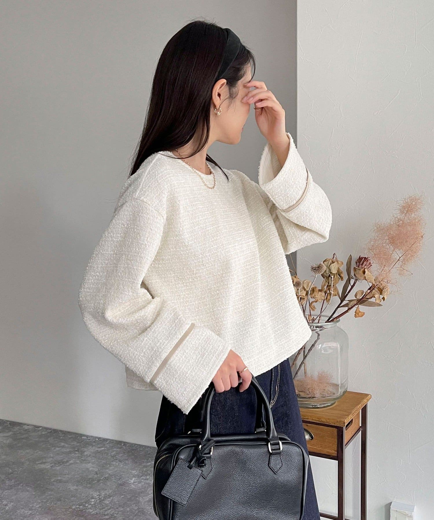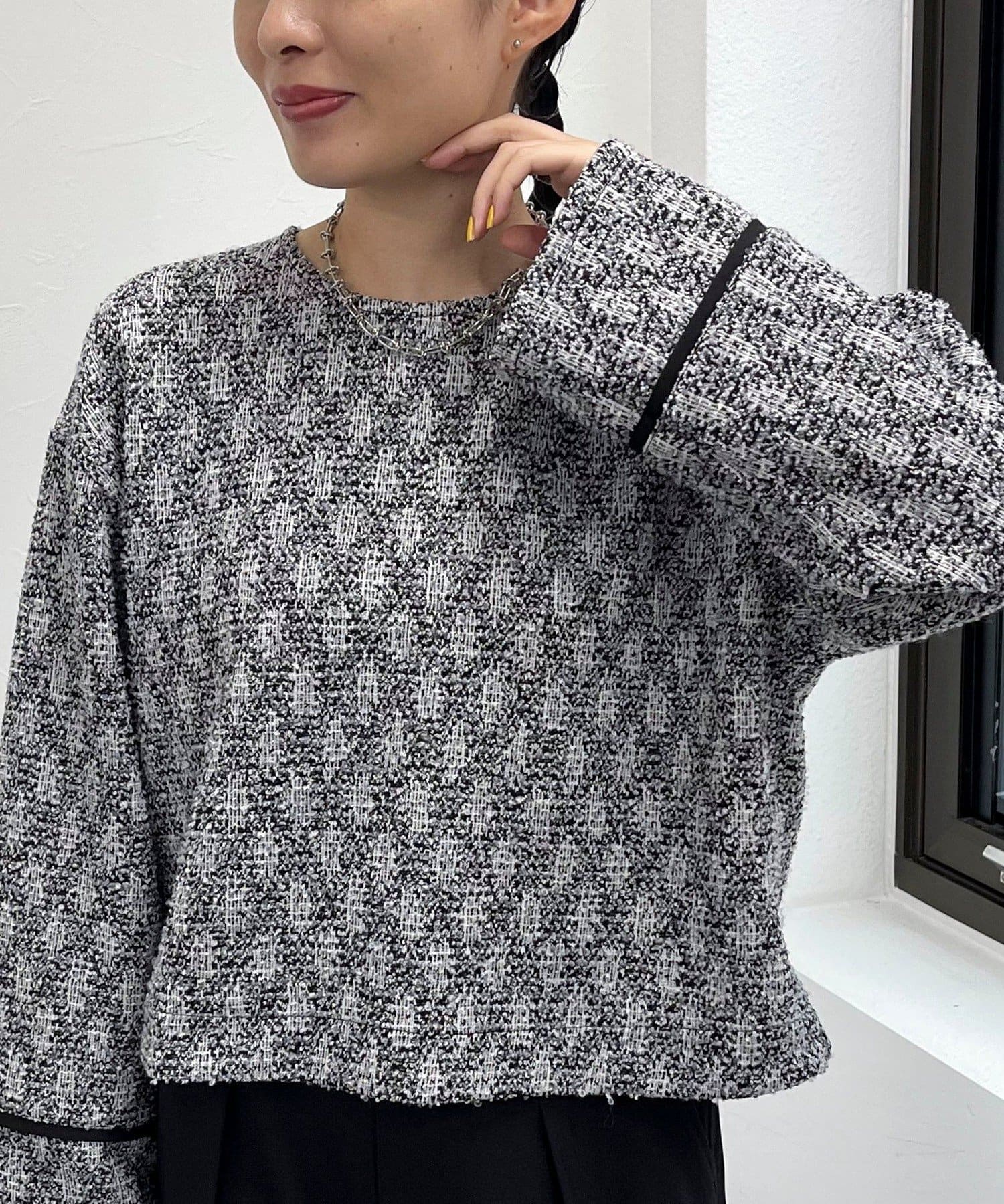 女性らしいスタイリングが叶うMIXツイードニットプルオーバー