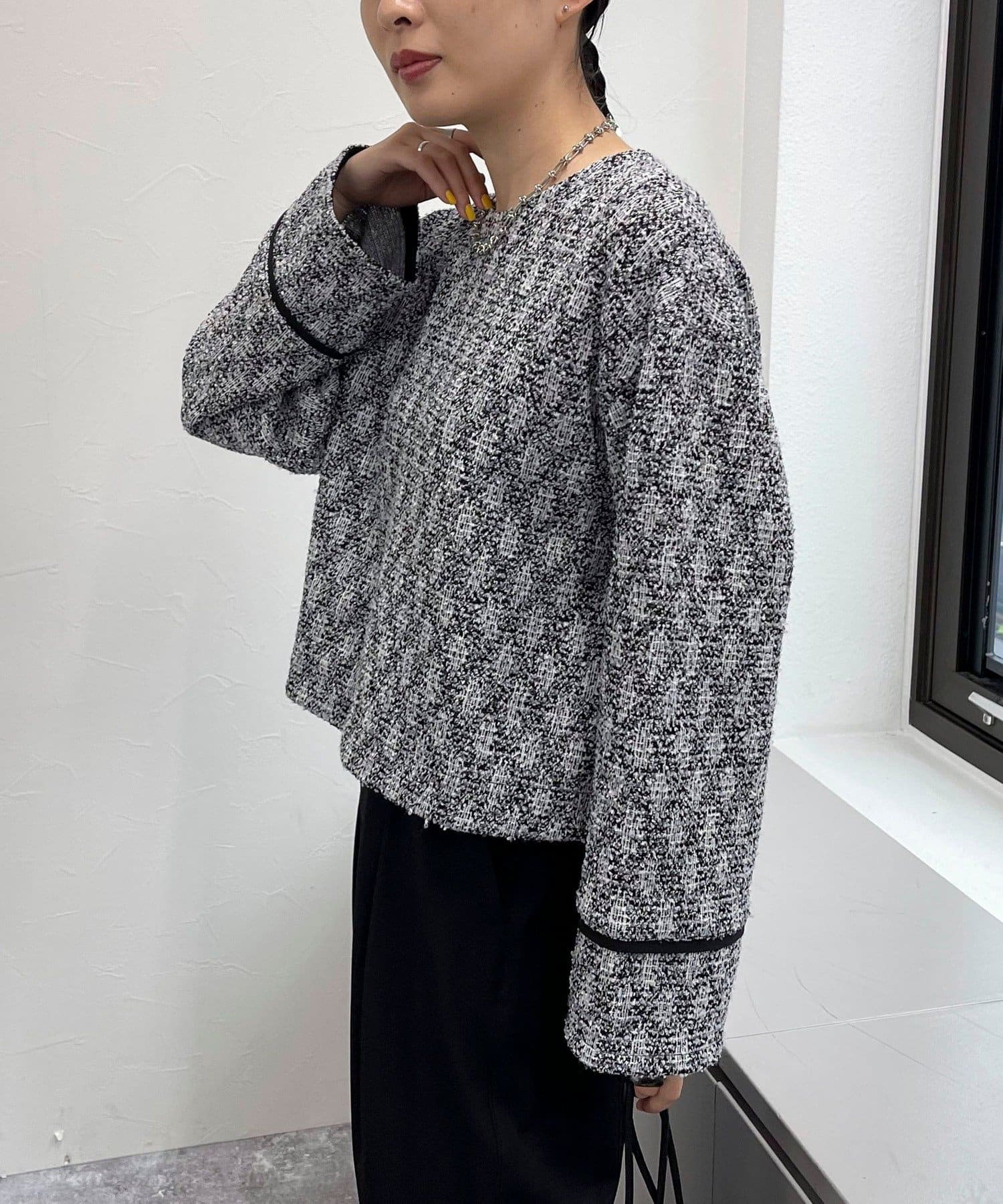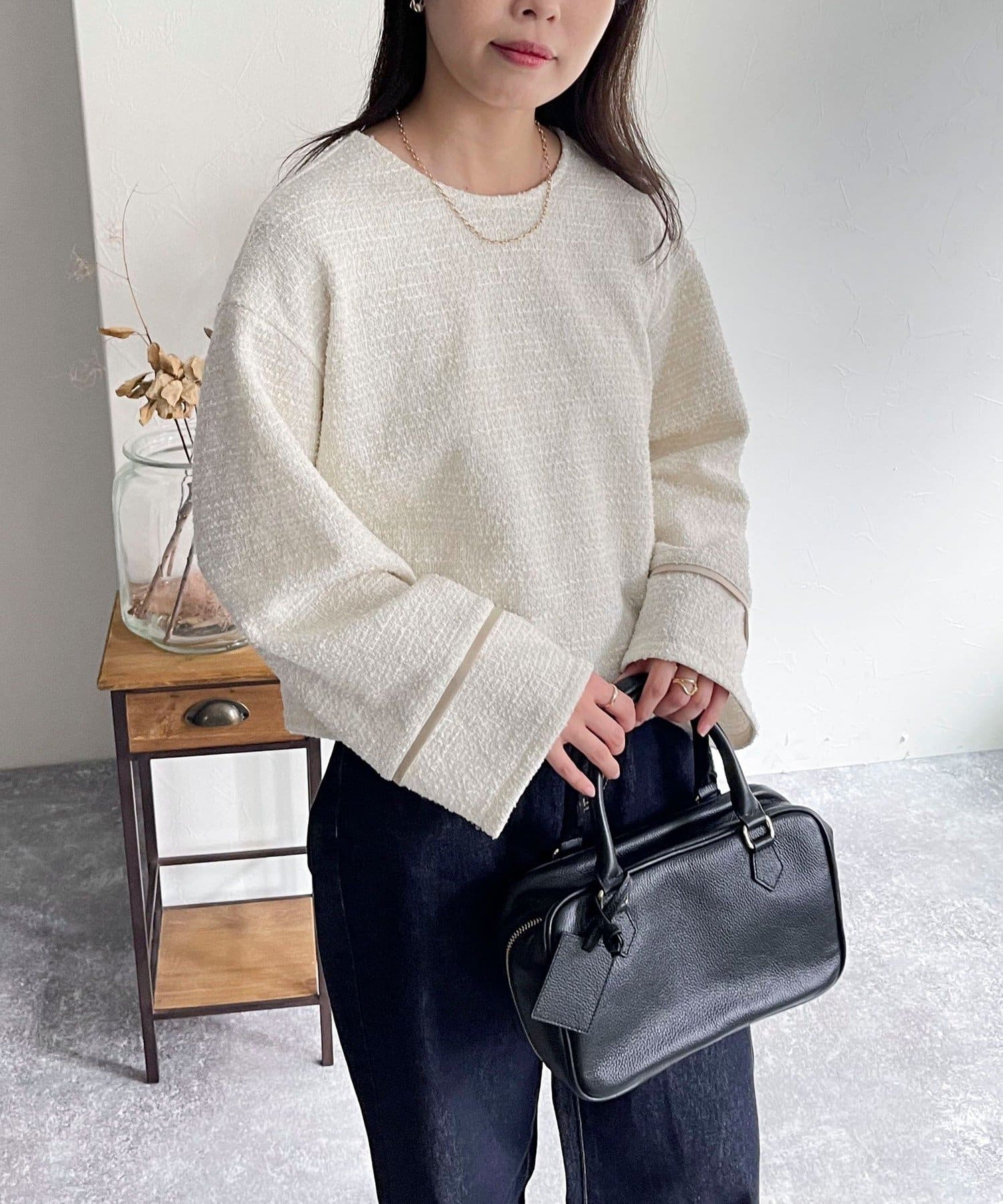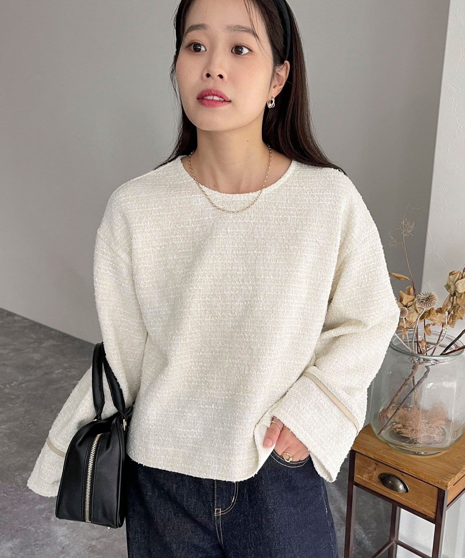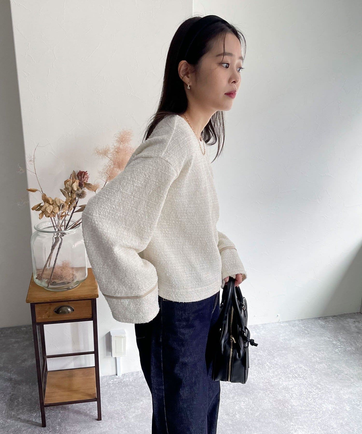 女性らしいスタイリングが叶うMIXツイードニットプルオーバー