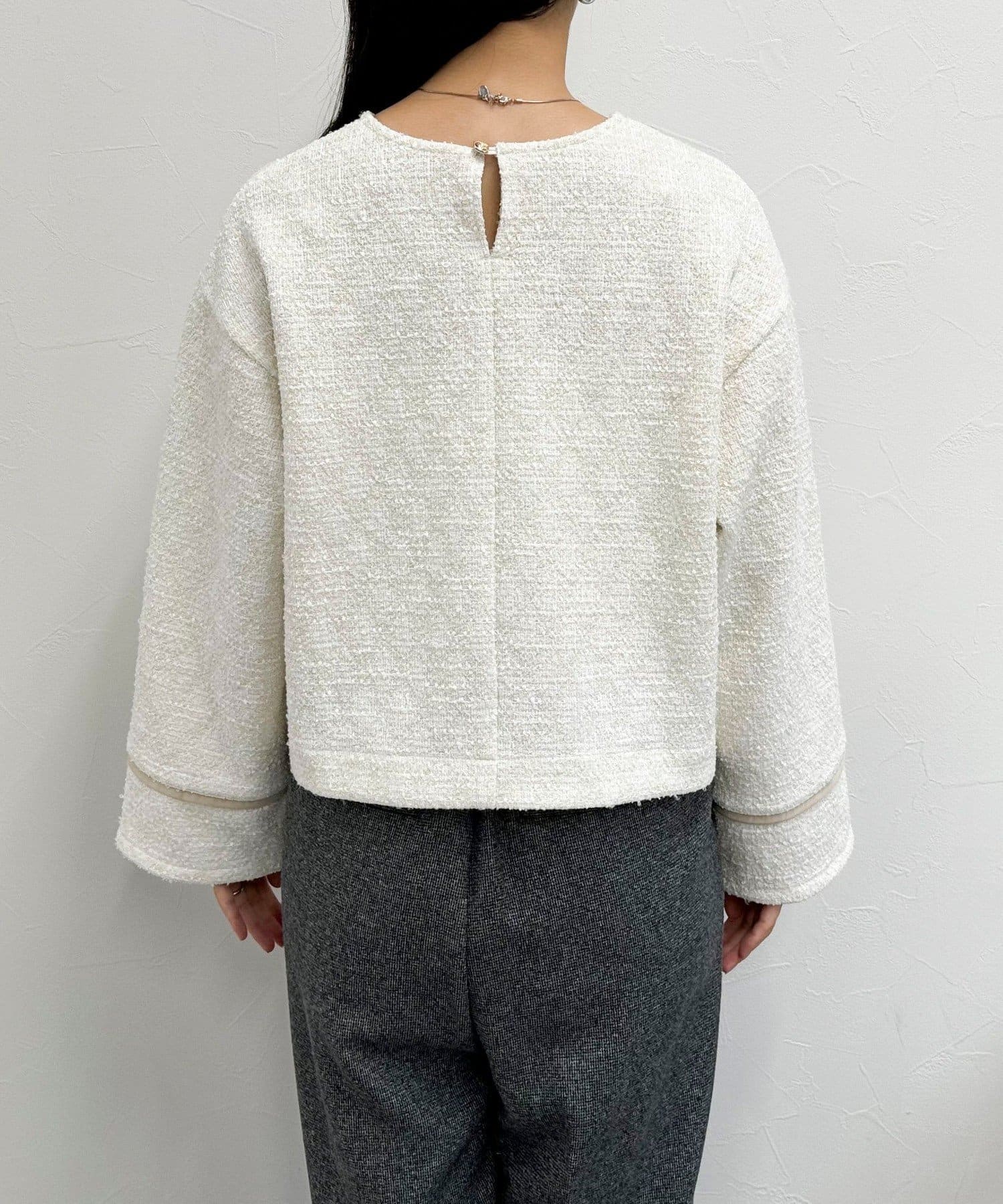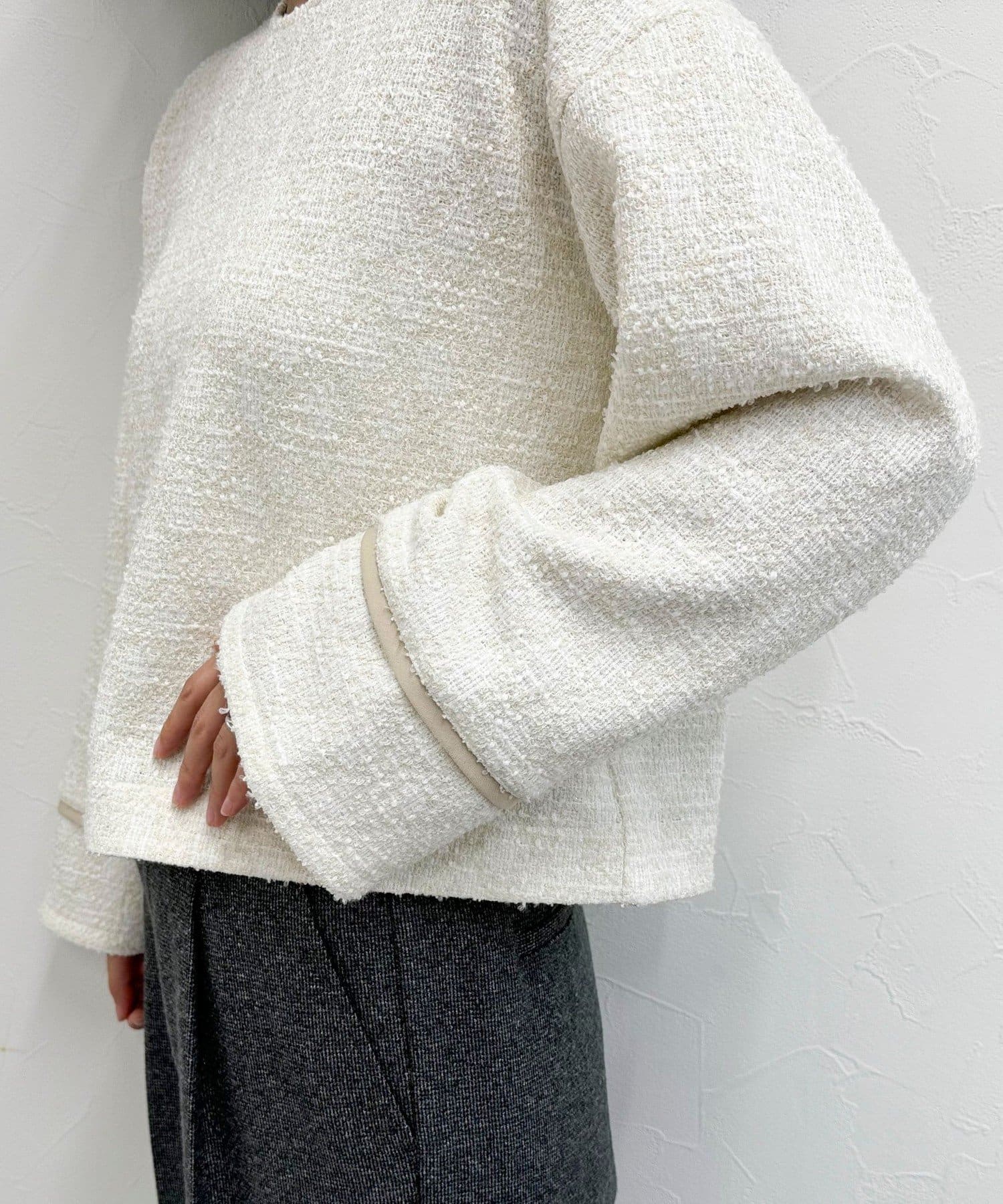 ・ツイード素材が華やかなオンオフ使えるニットプルオーバーです