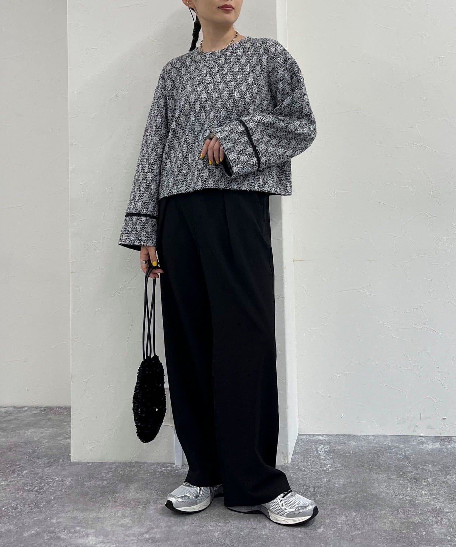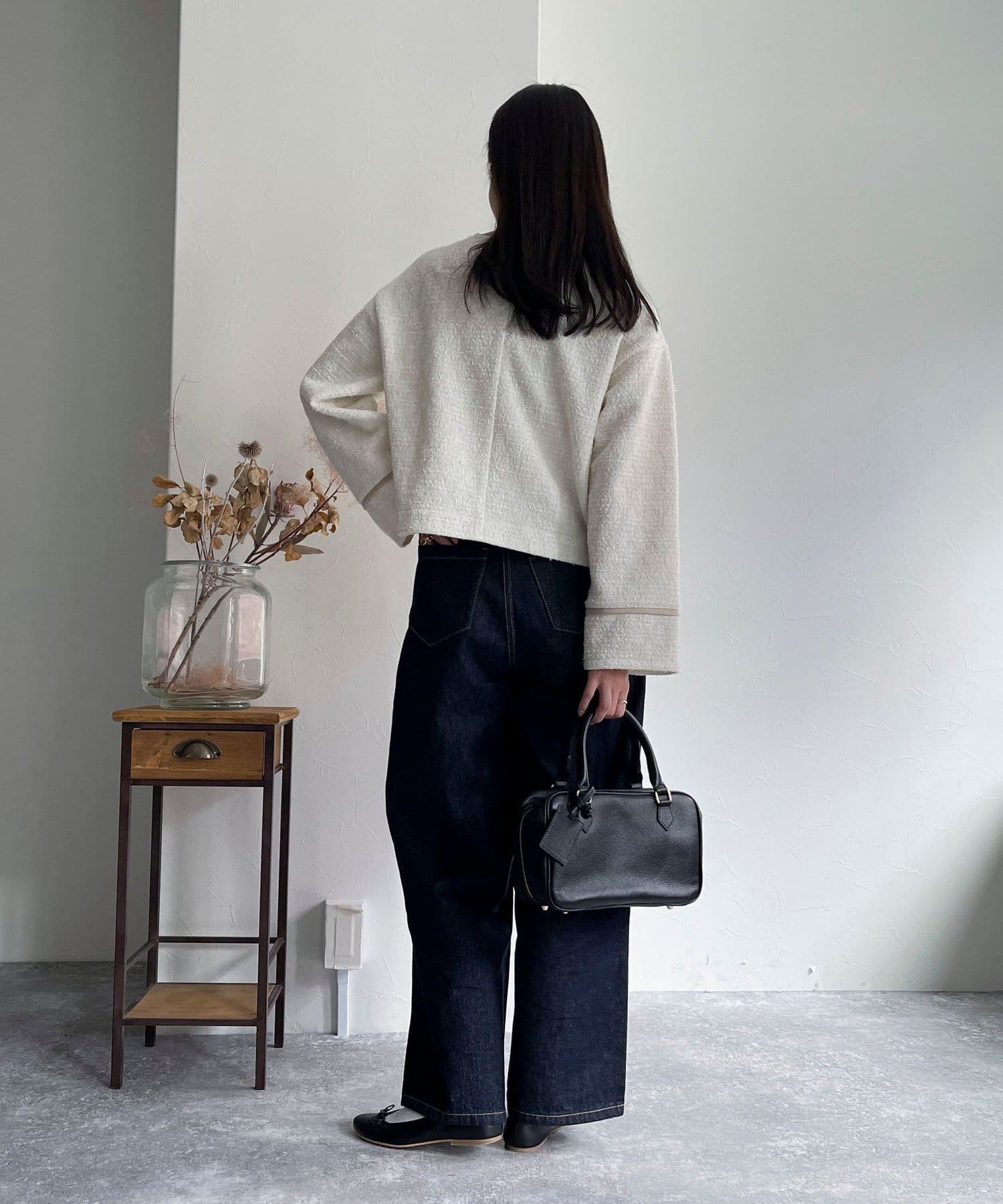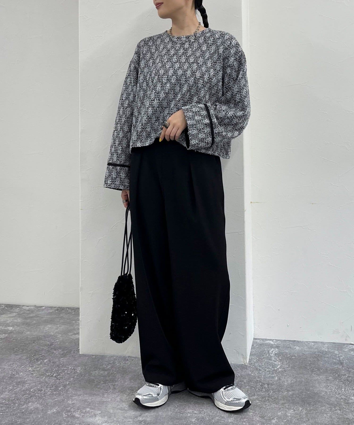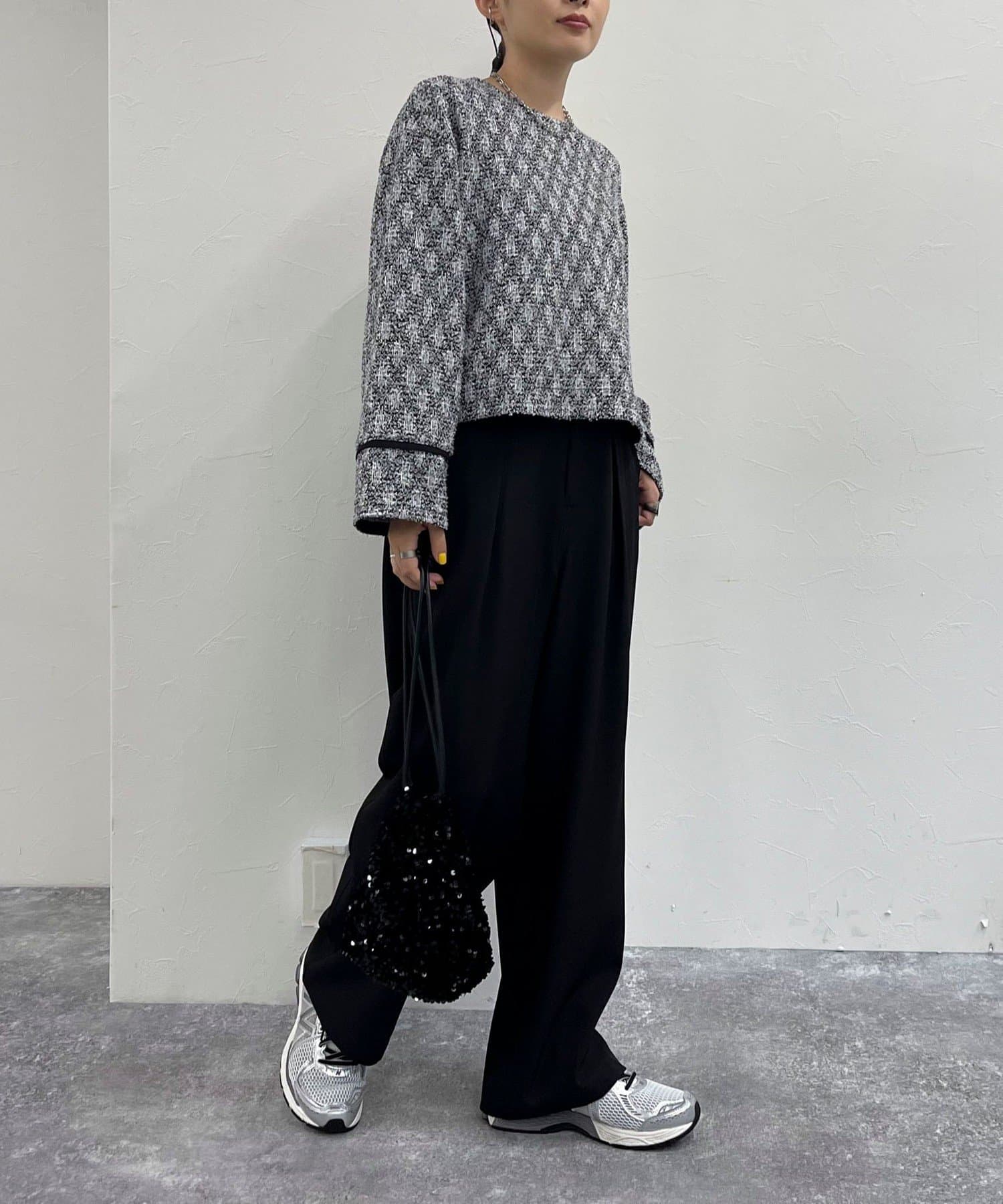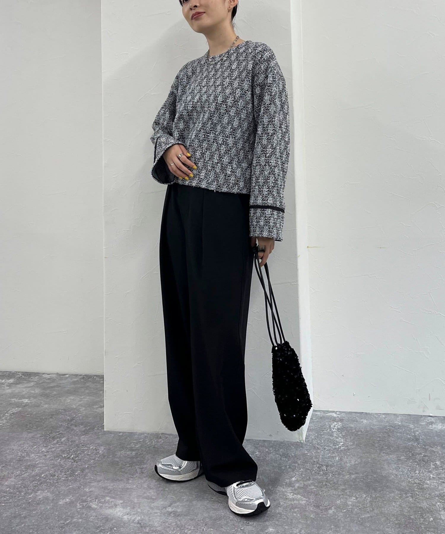 ・表情のあるツイード素材がスタイリングにこなれ感をプラスします