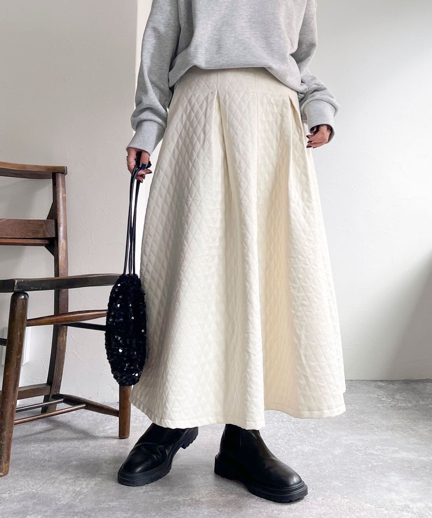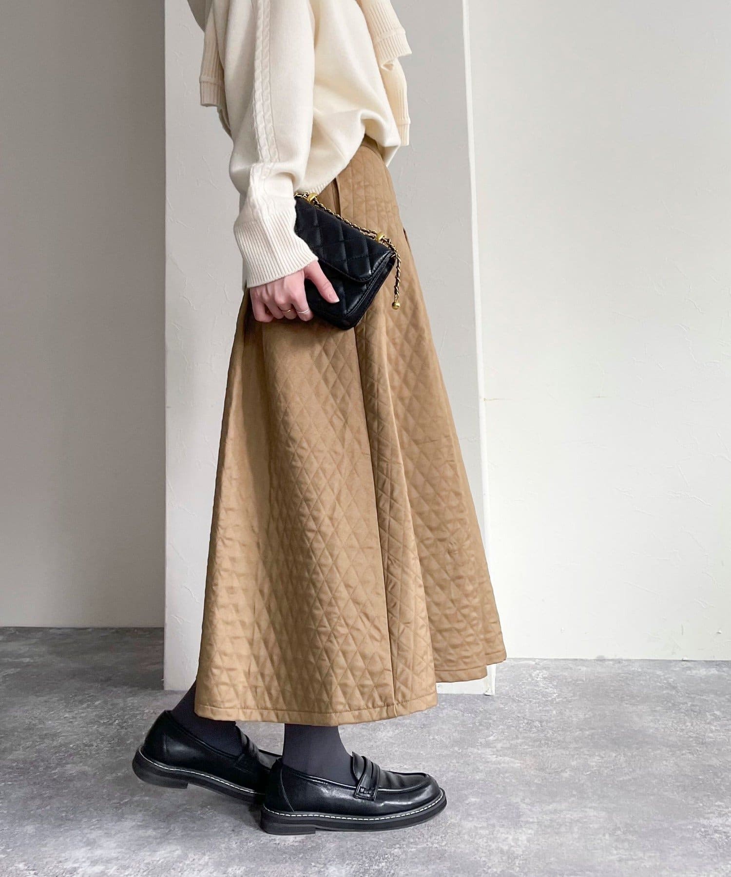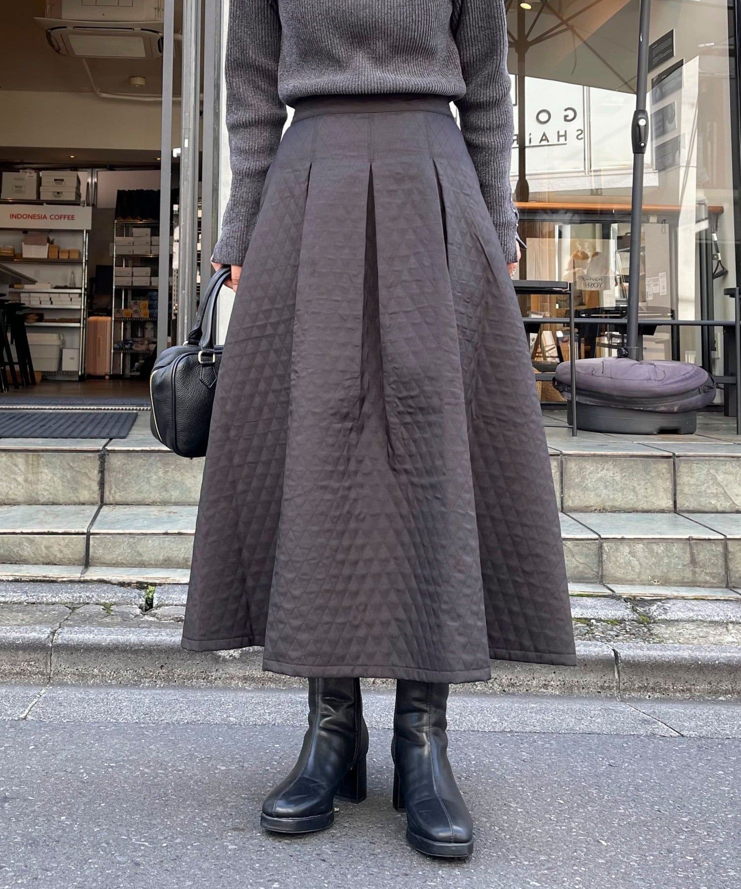 ・程よいボリューム感で品のある、女性らしいキルティングタックスカートです
