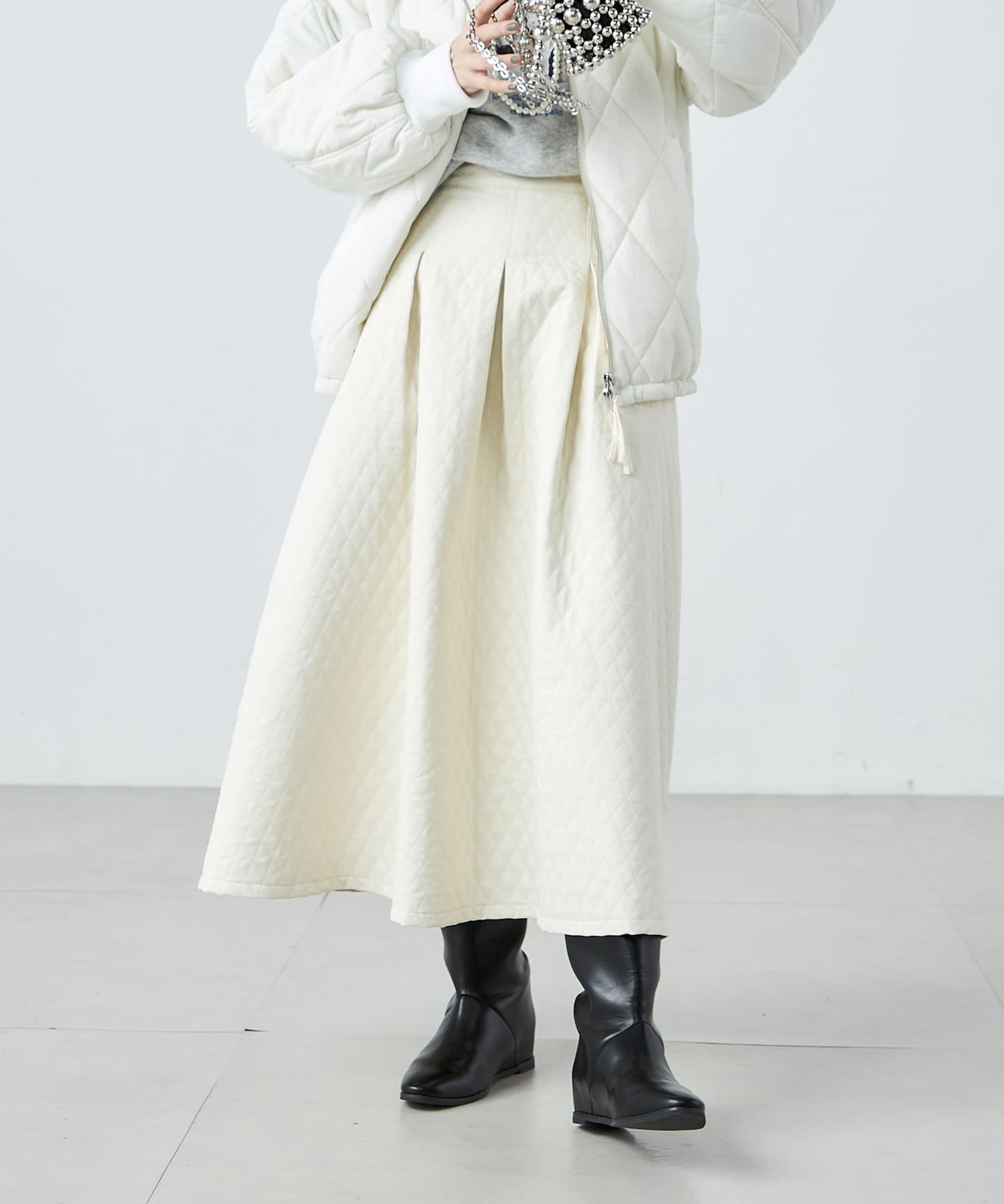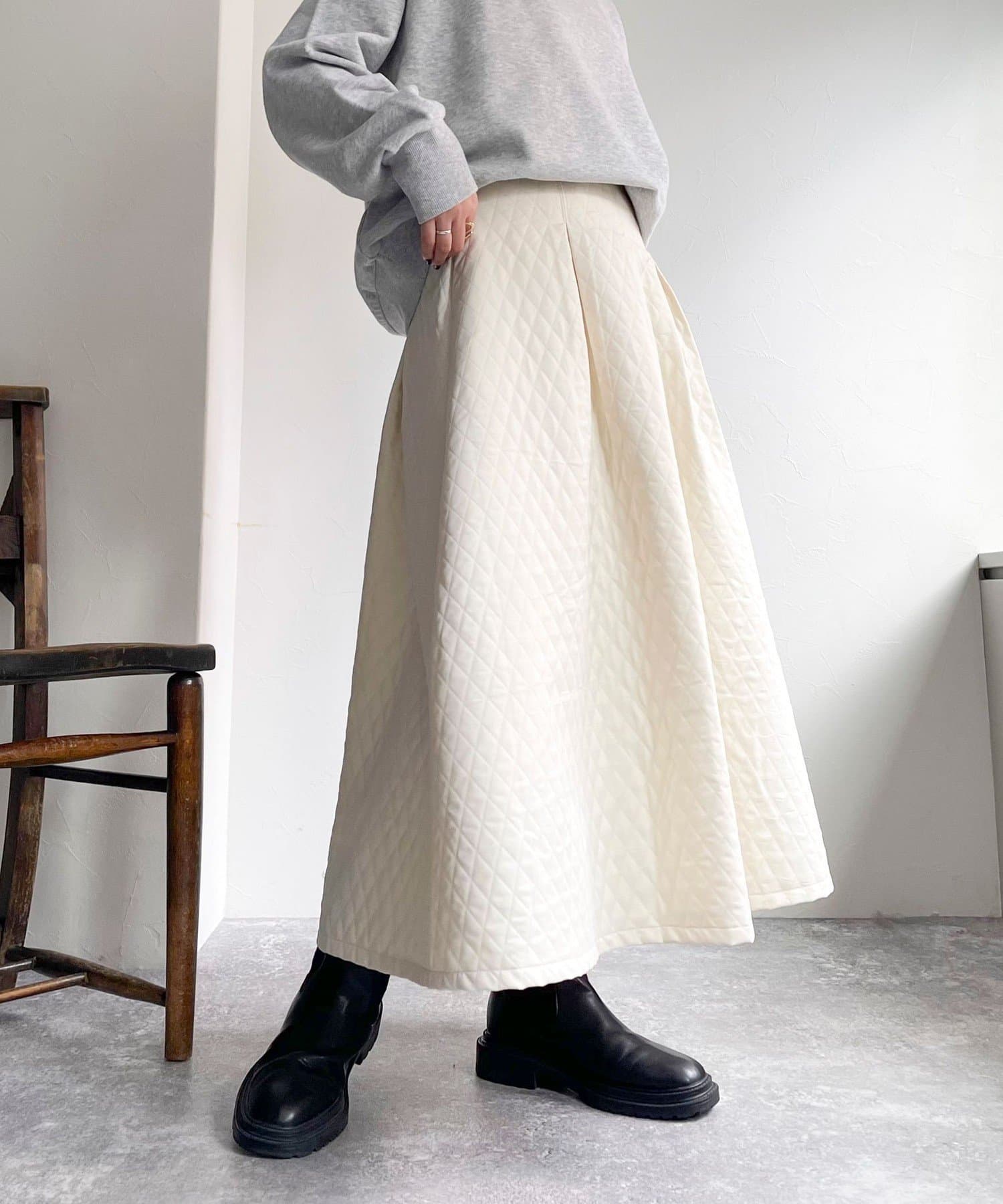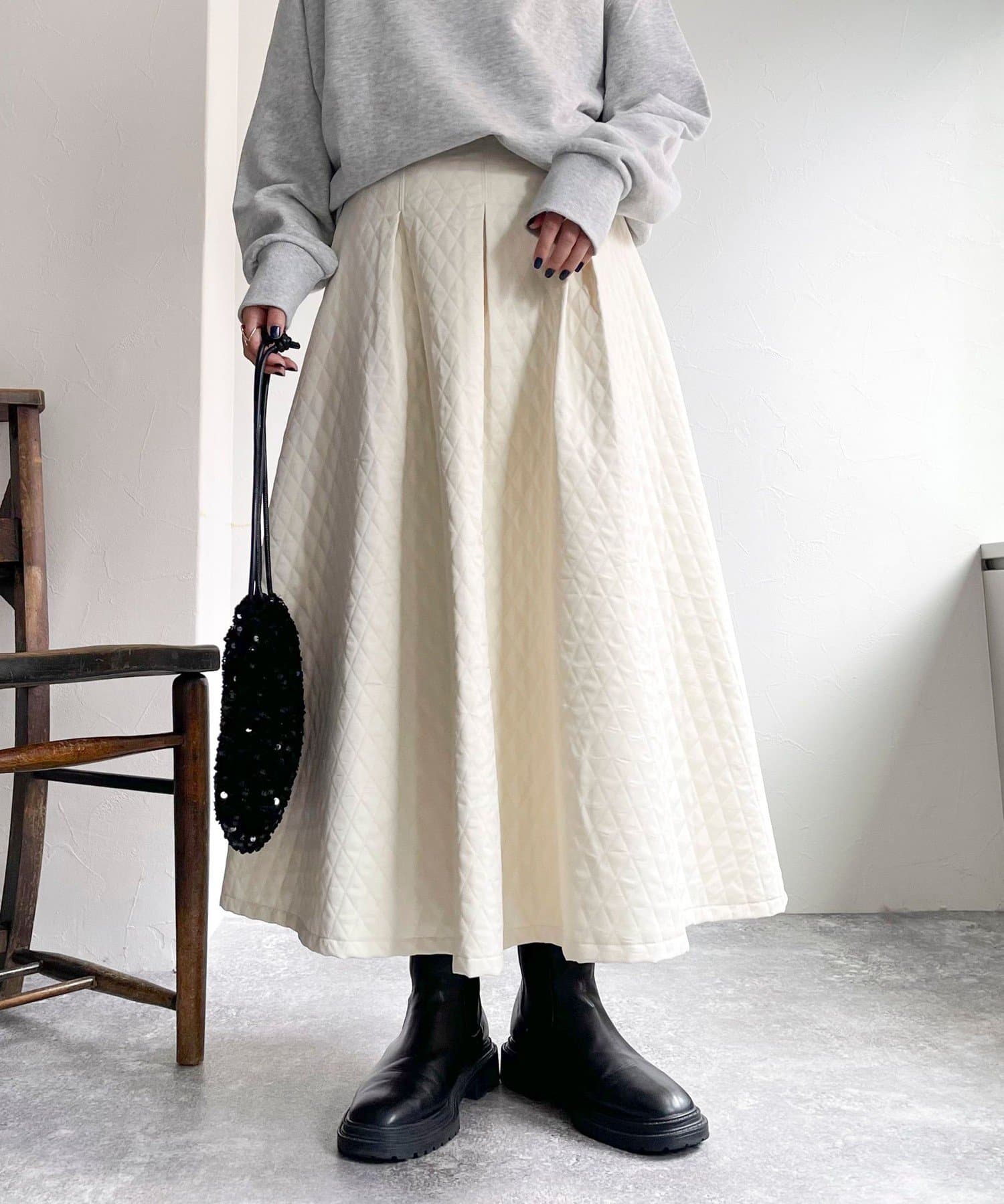 ・程よいボリューム感で品のある、女性らしいキルティングタックスカートです