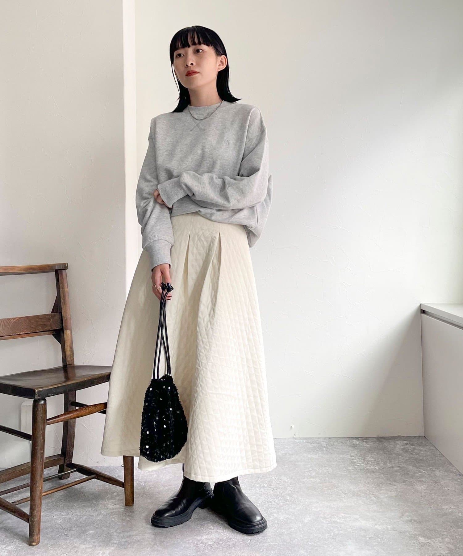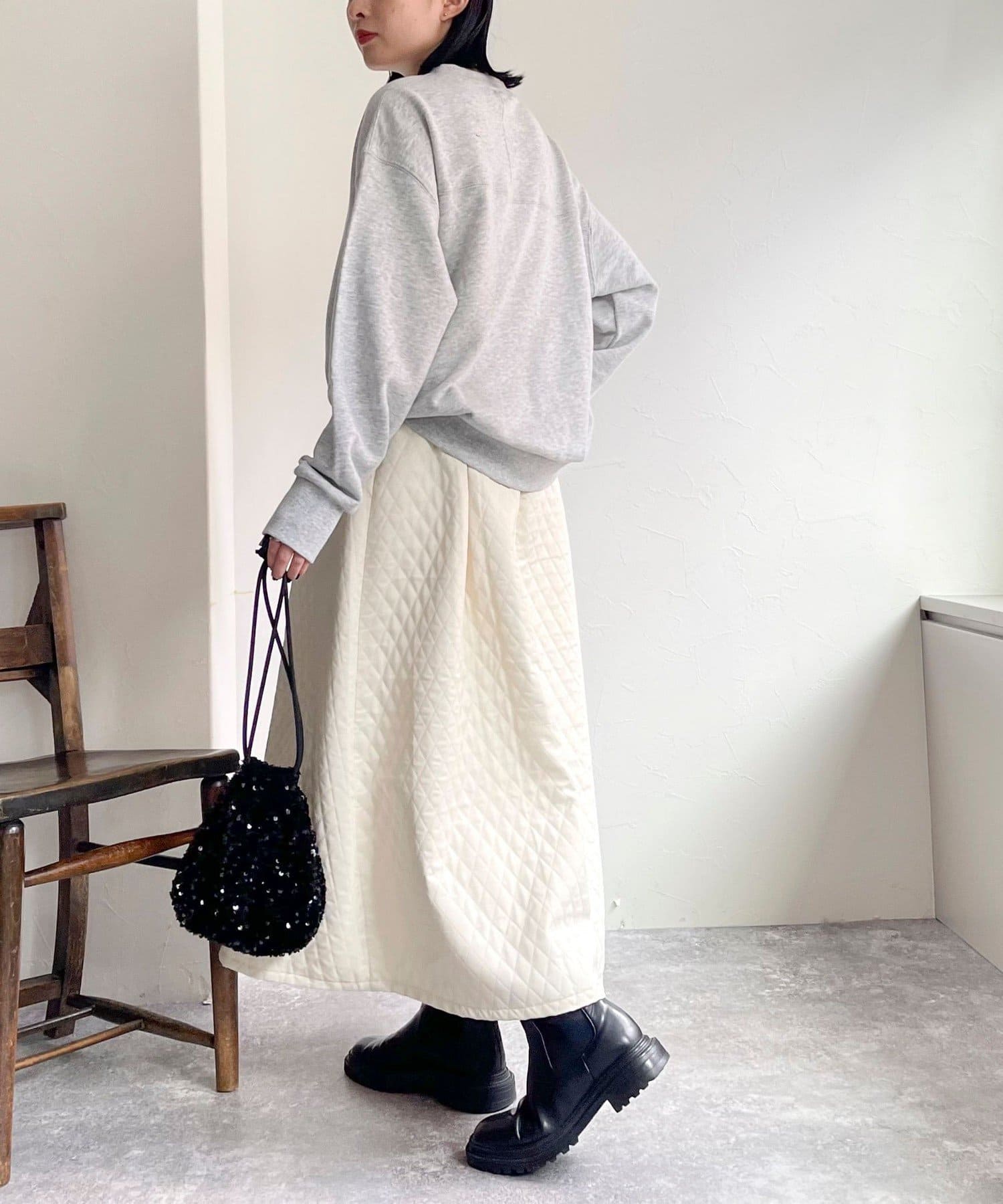 こちらのスカートは1枚生地にキルティング風の縫い目を施しているものなので春先に着ることにしました