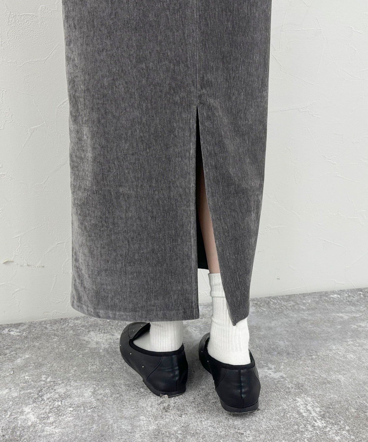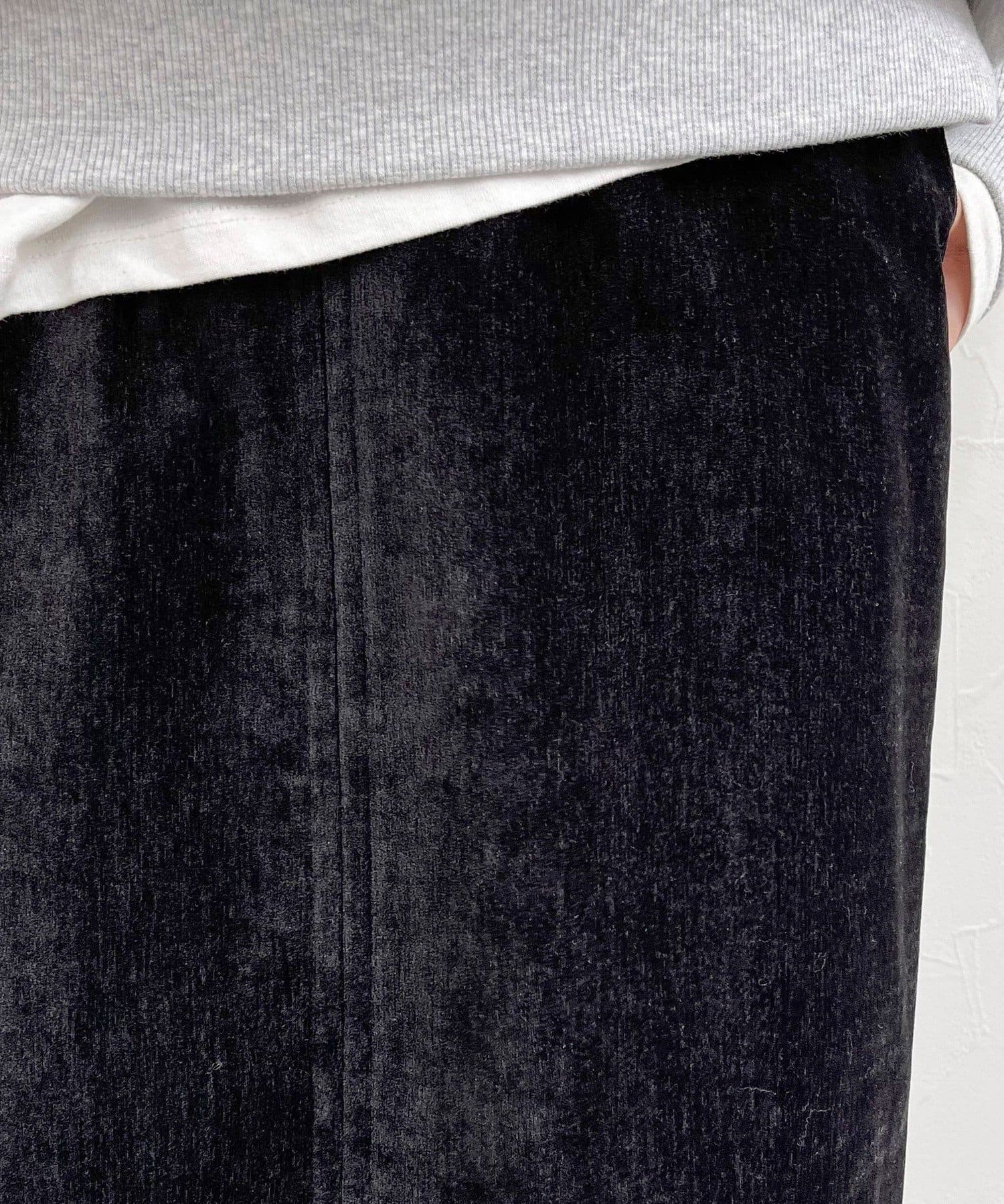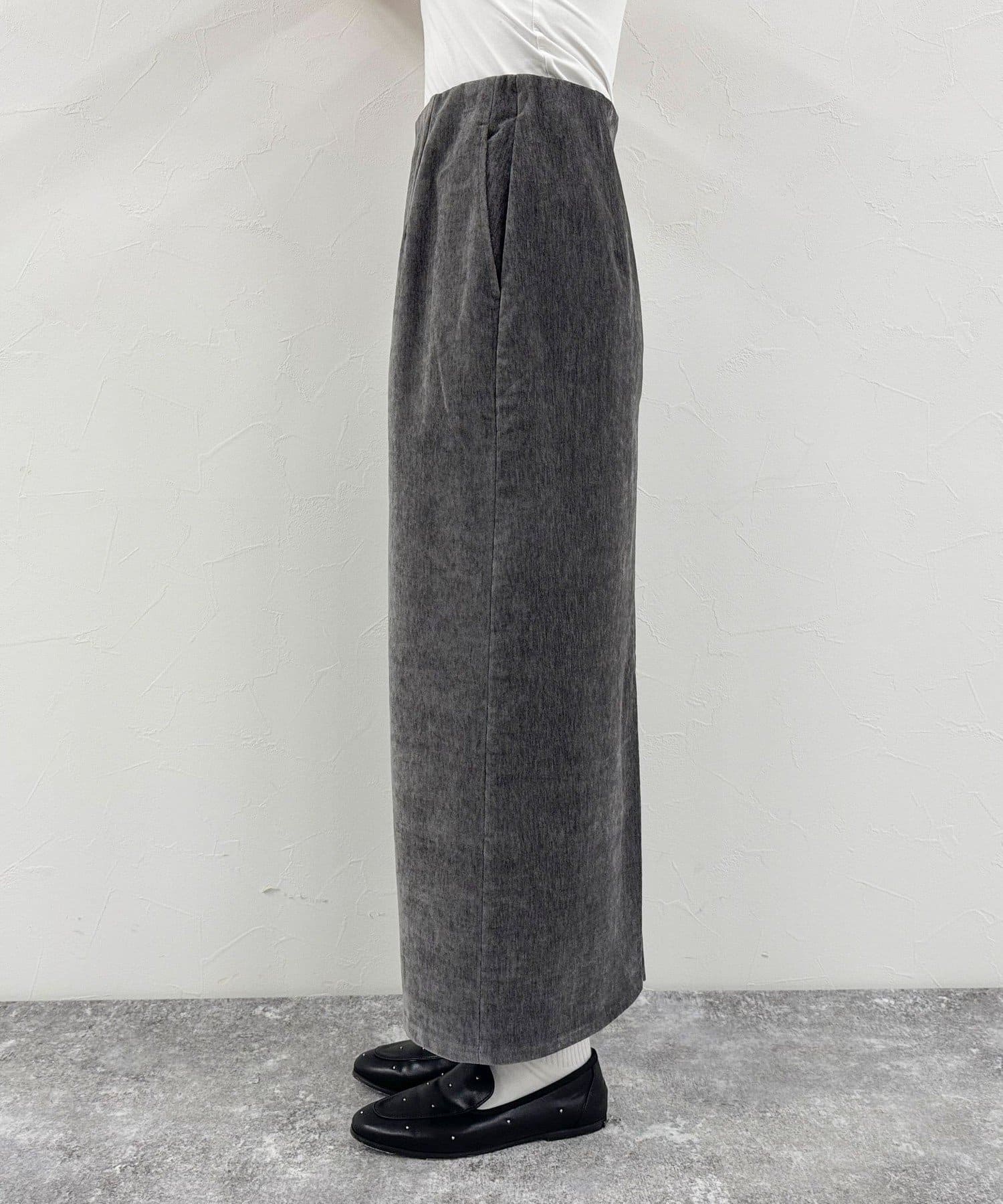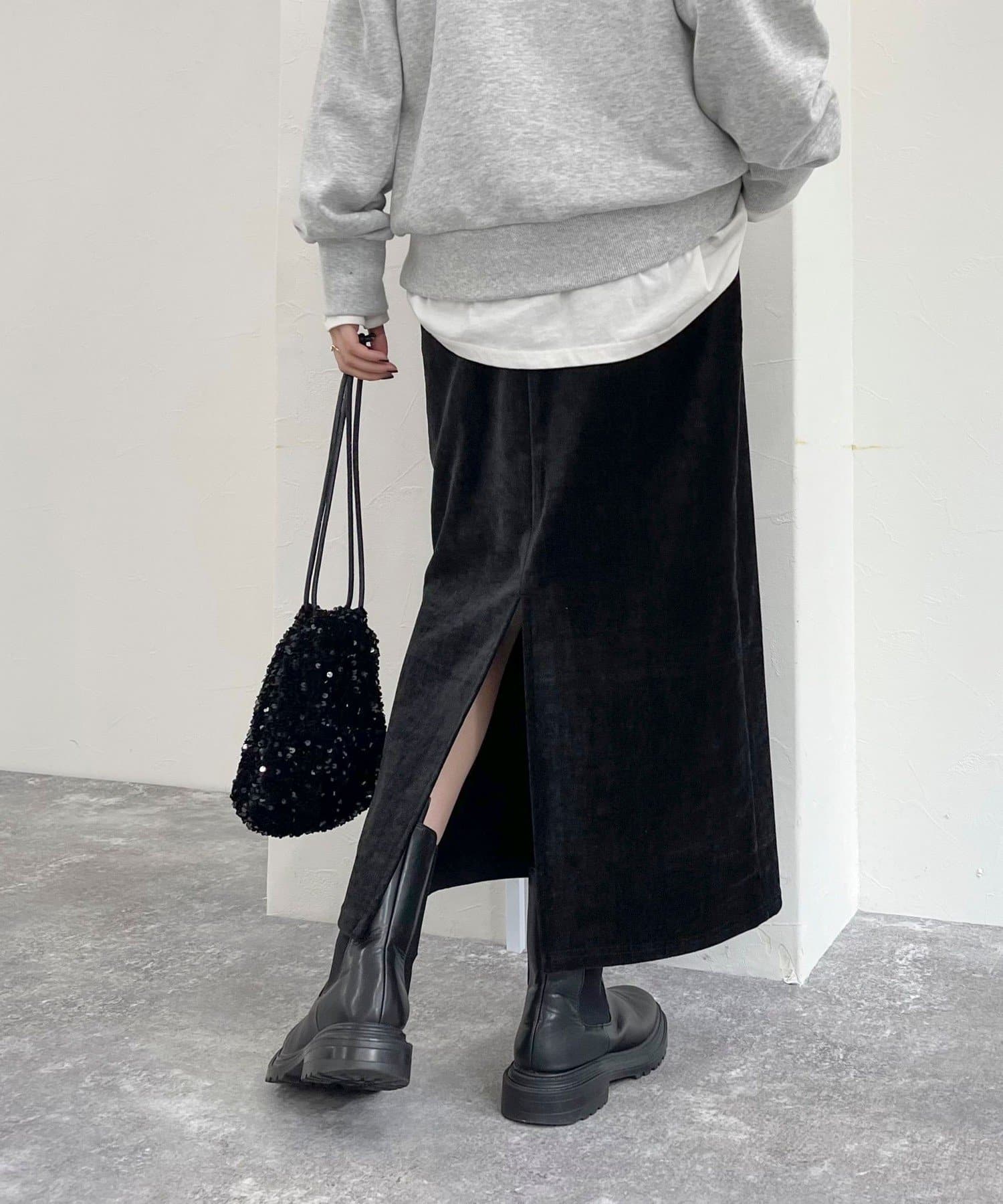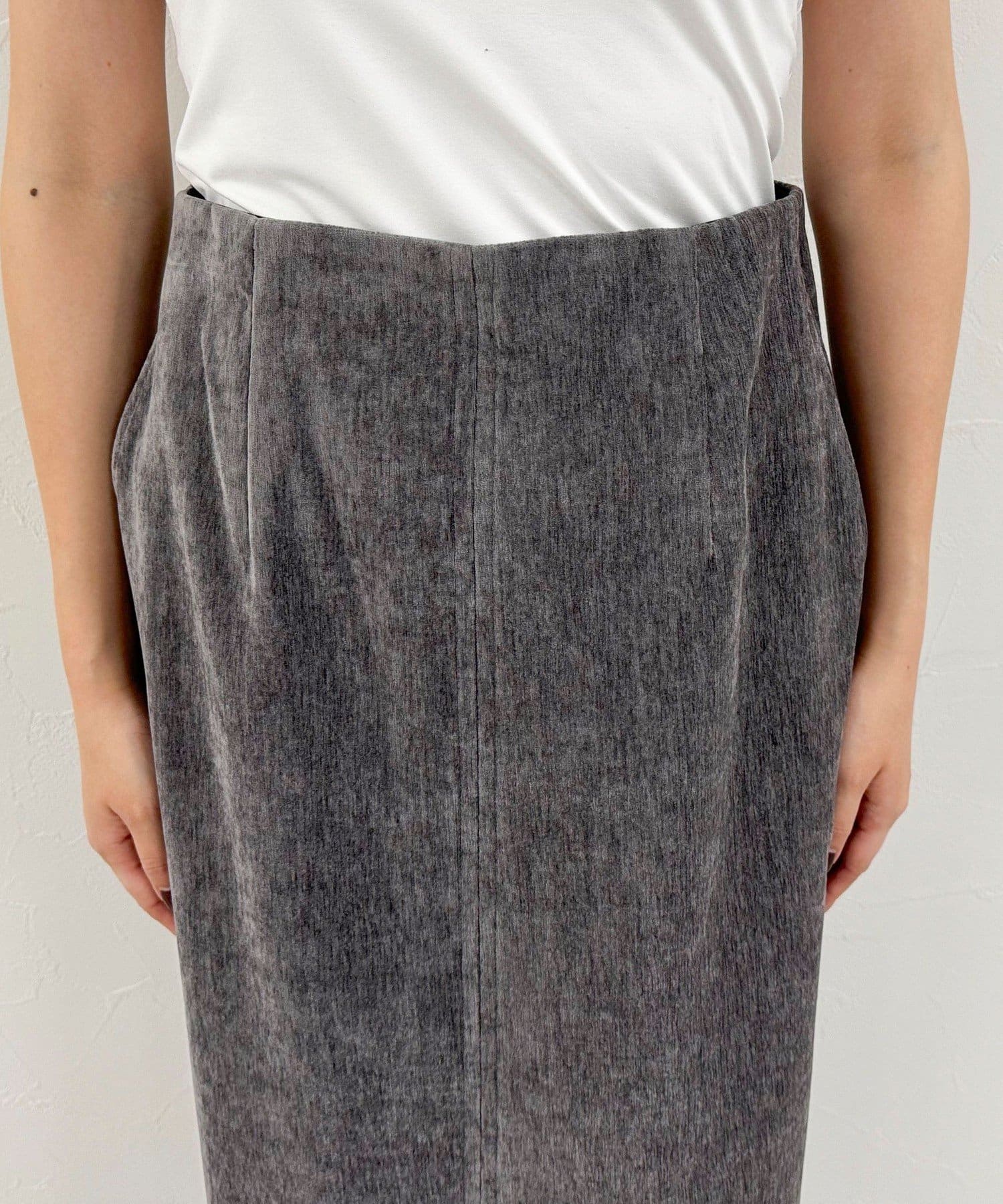 表面感のあるベロア素材がコーデのアクセントになるナロースカート