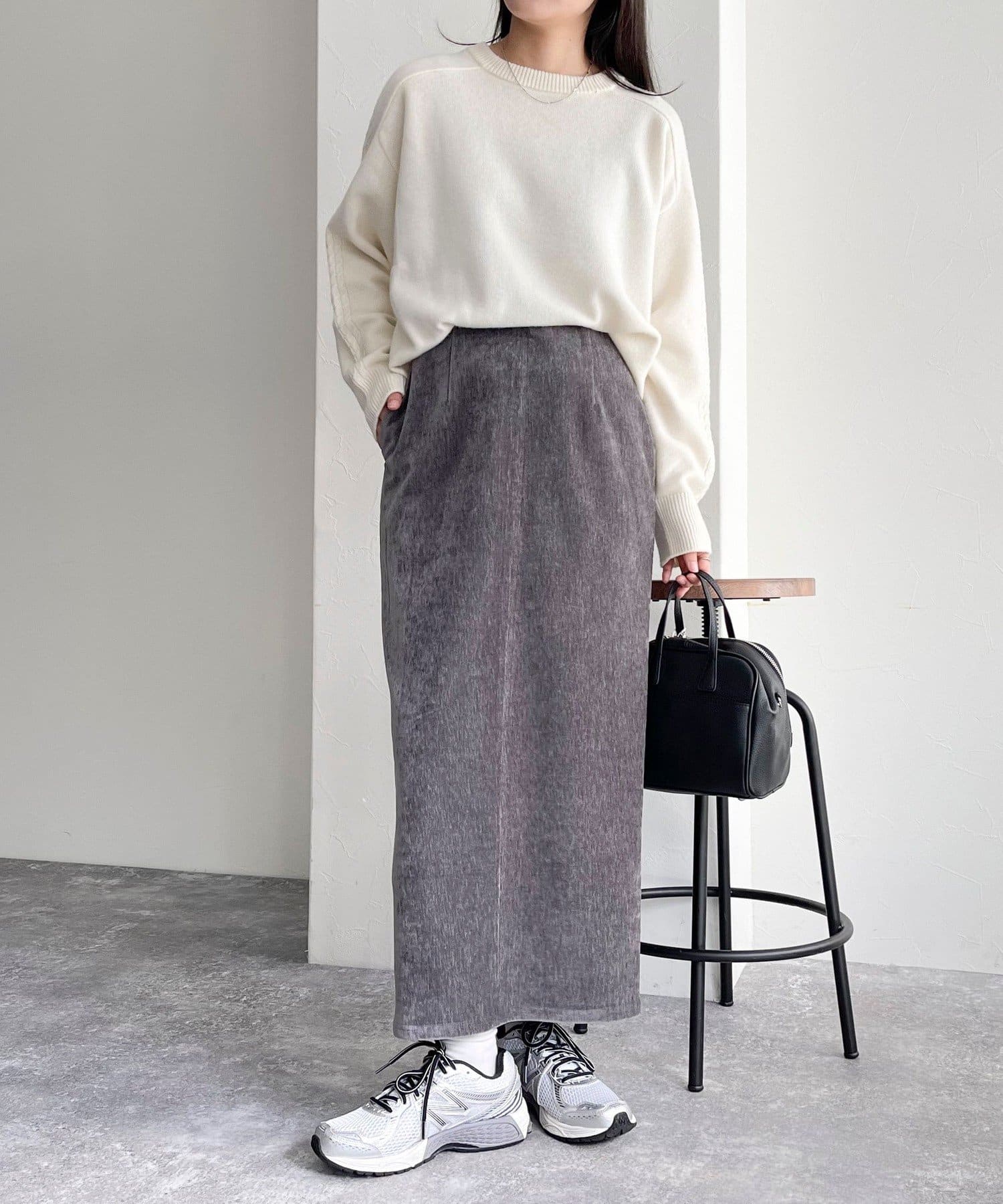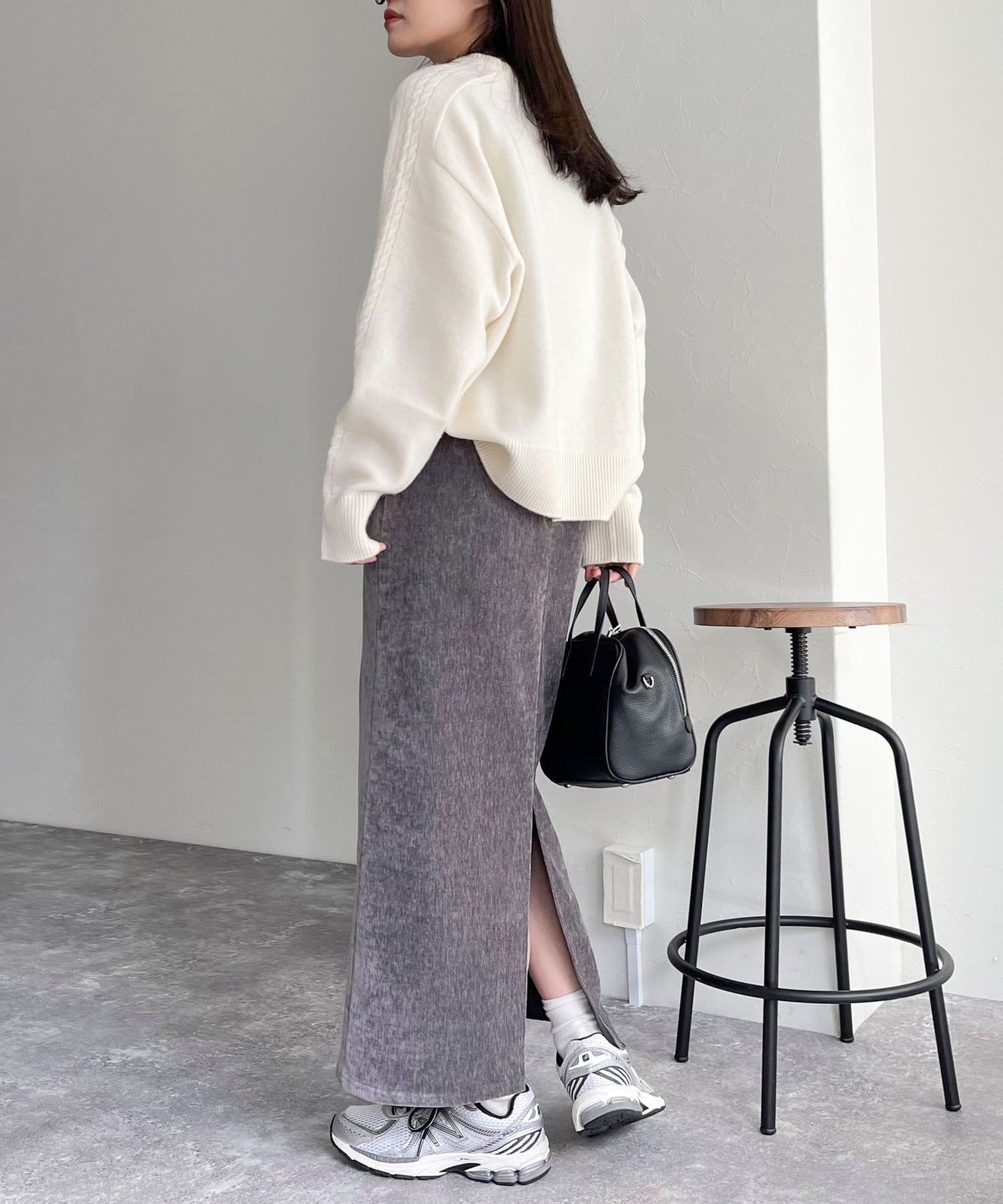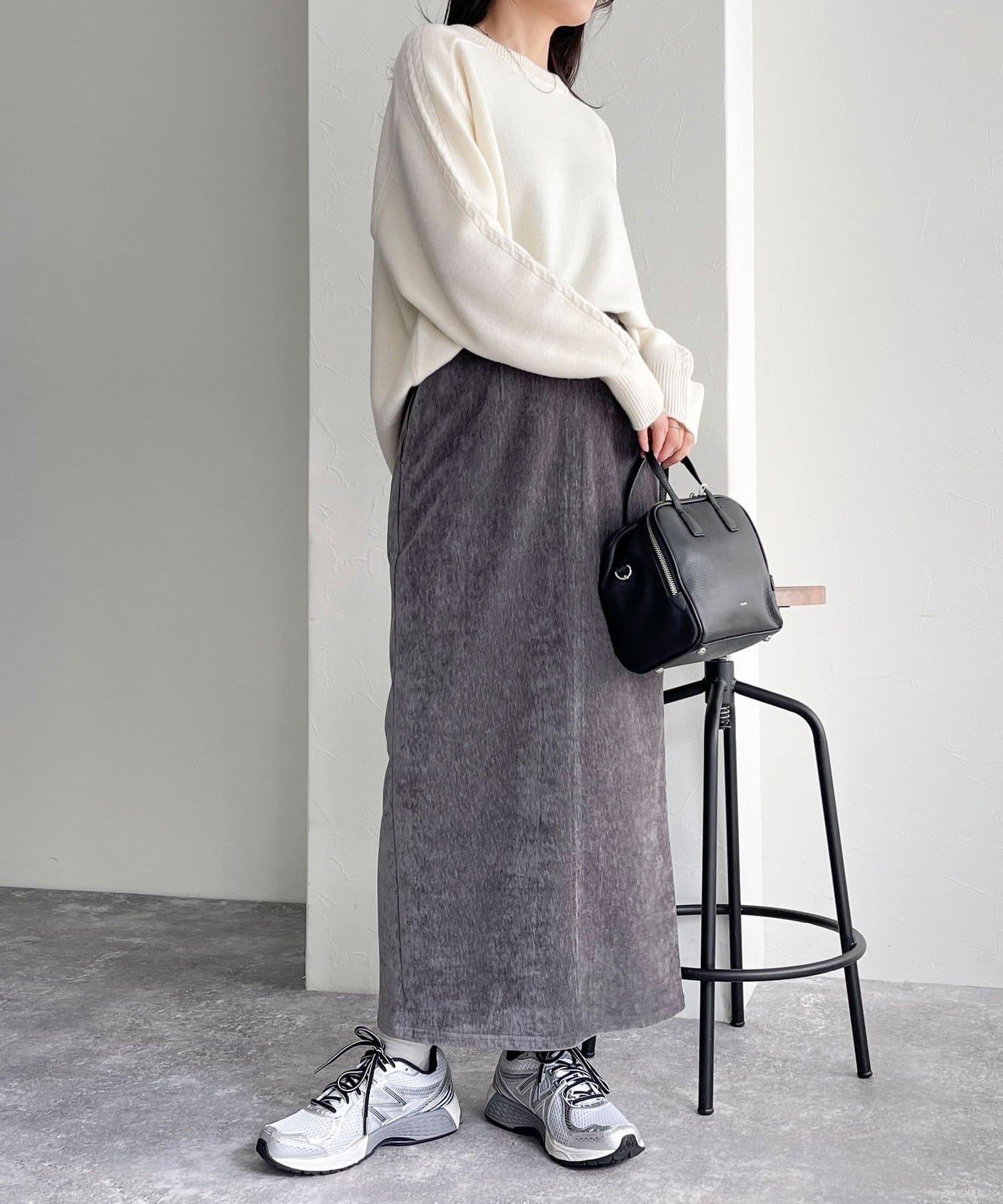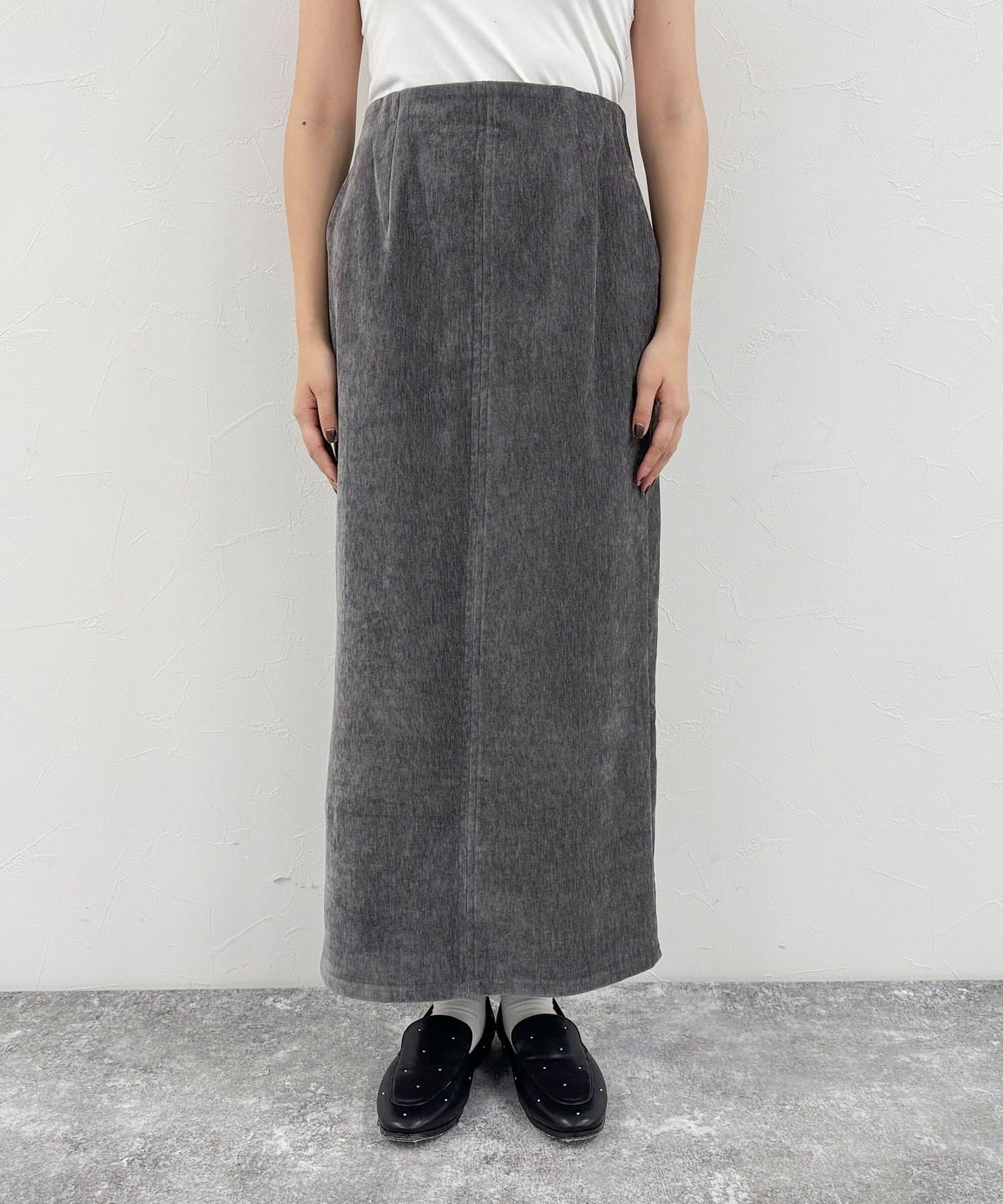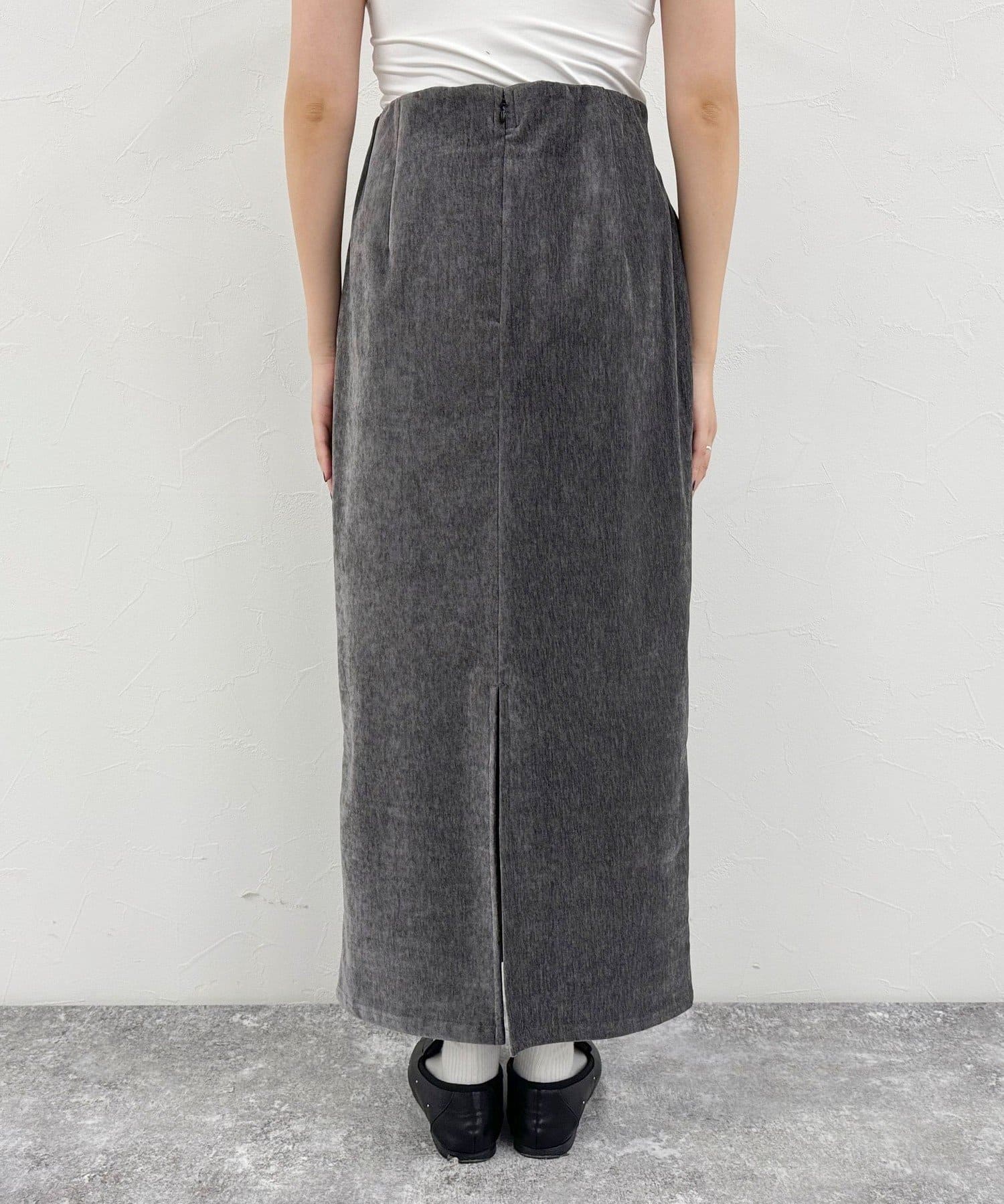 表面感のあるベロア素材がコーデのアクセントになるナロースカート