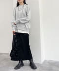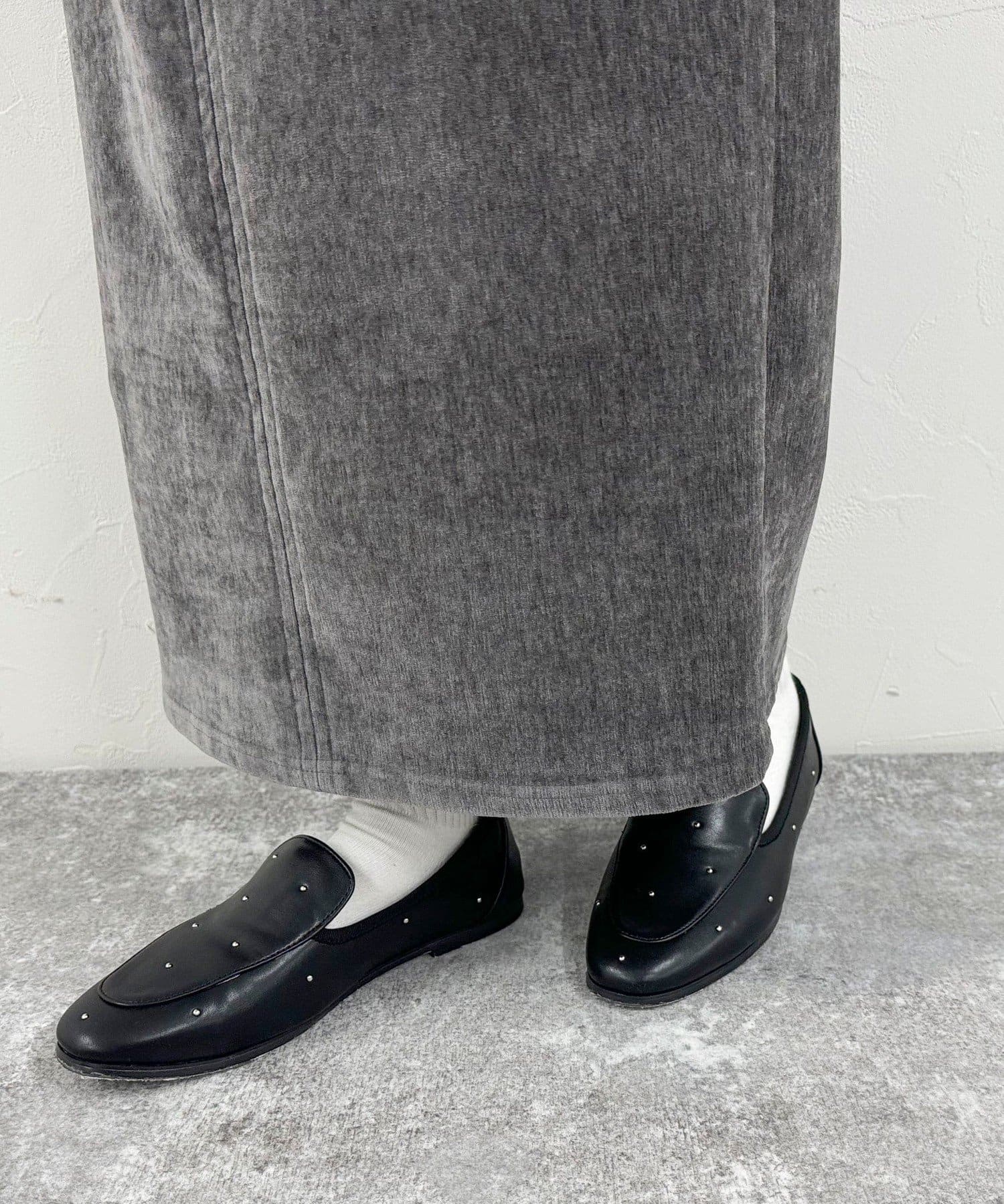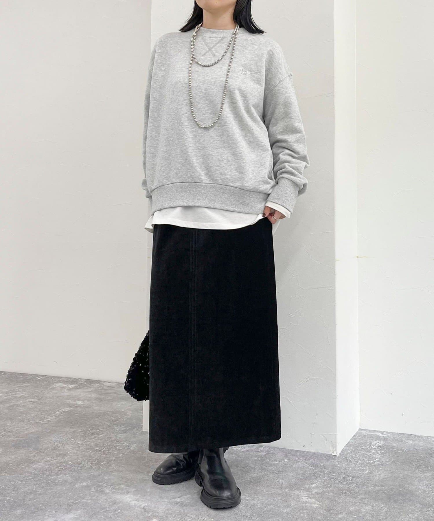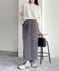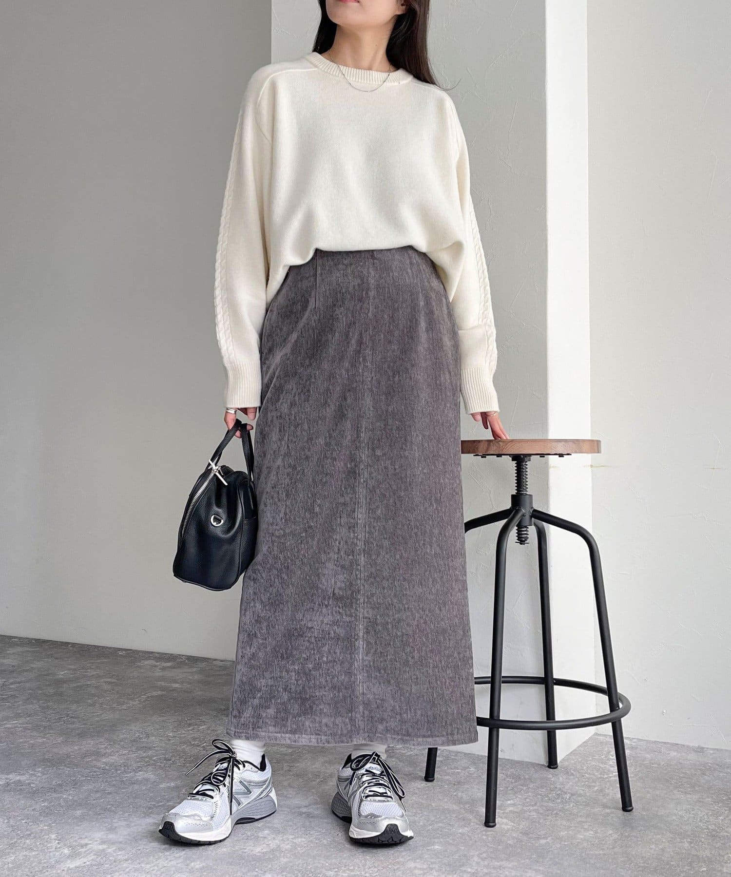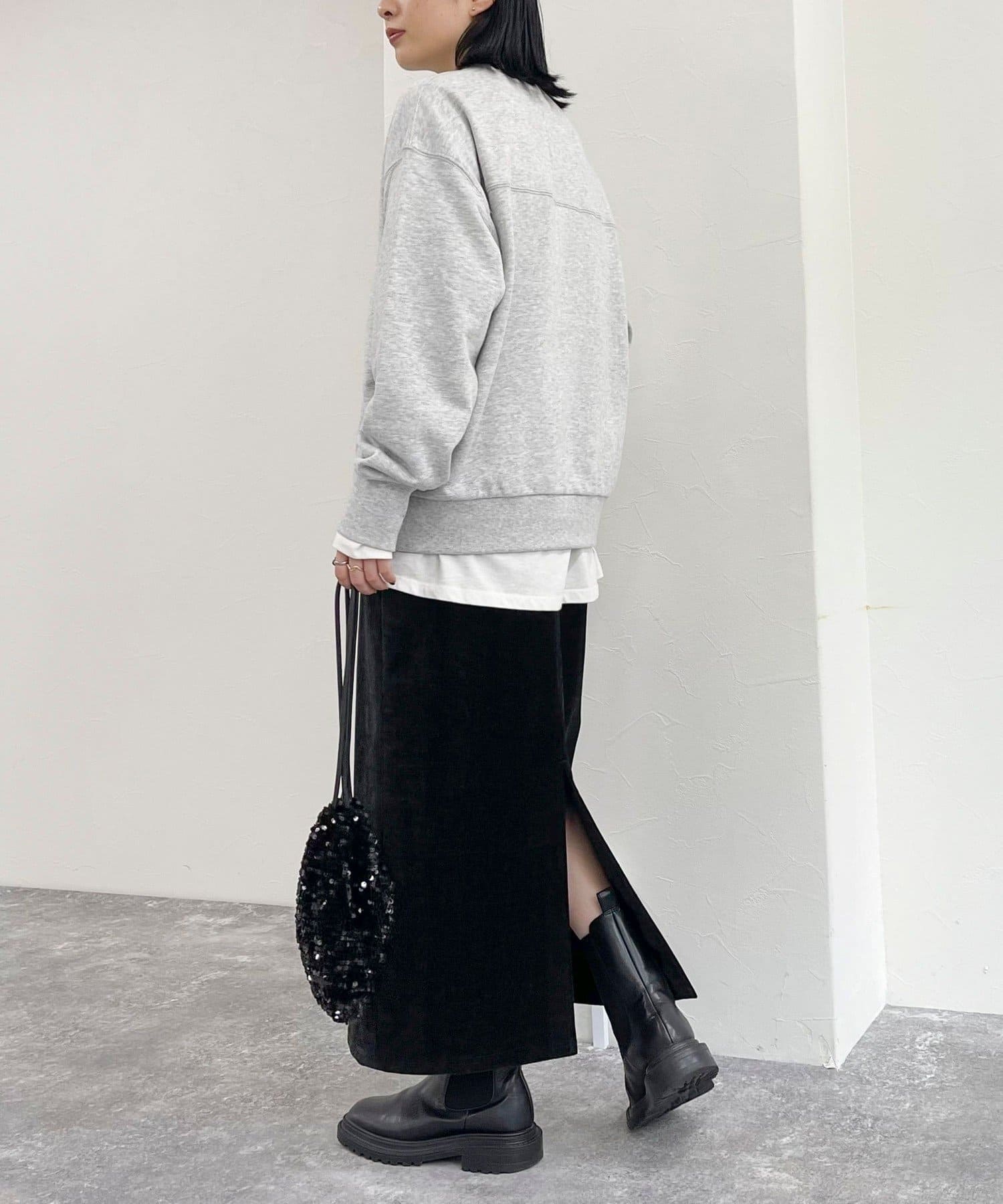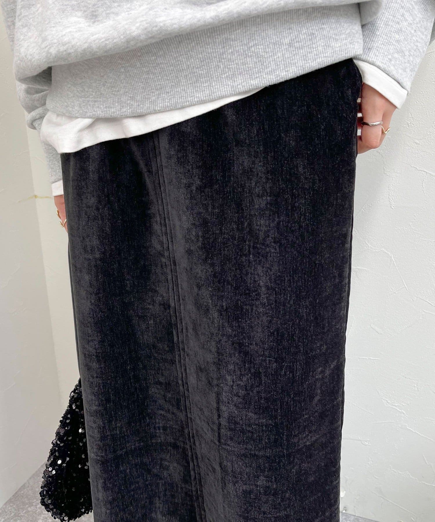 表面感のあるベロア素材がコーデのアクセントになるナロースカート