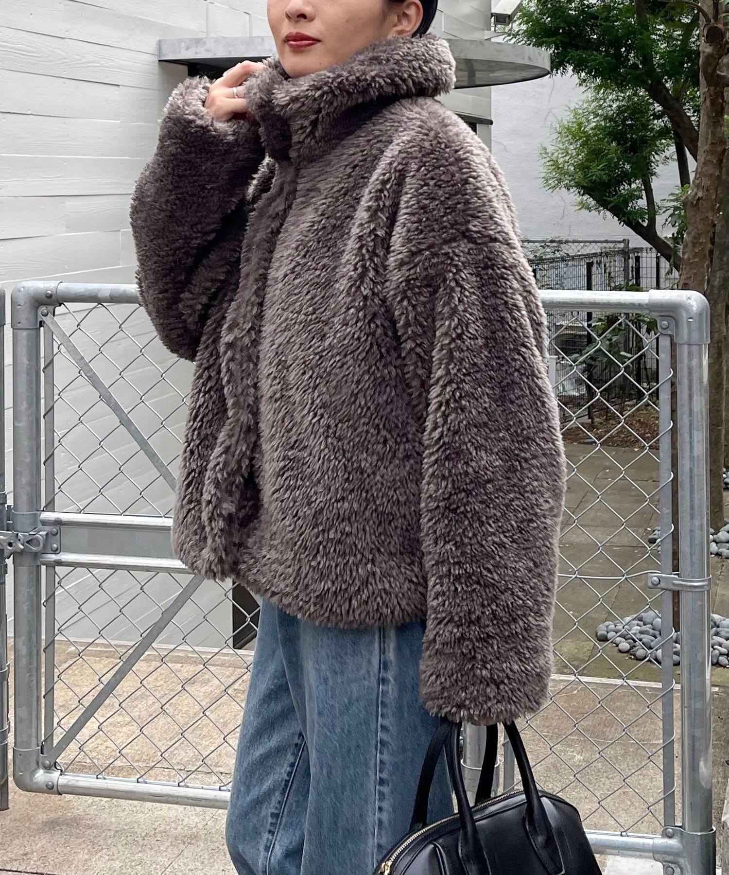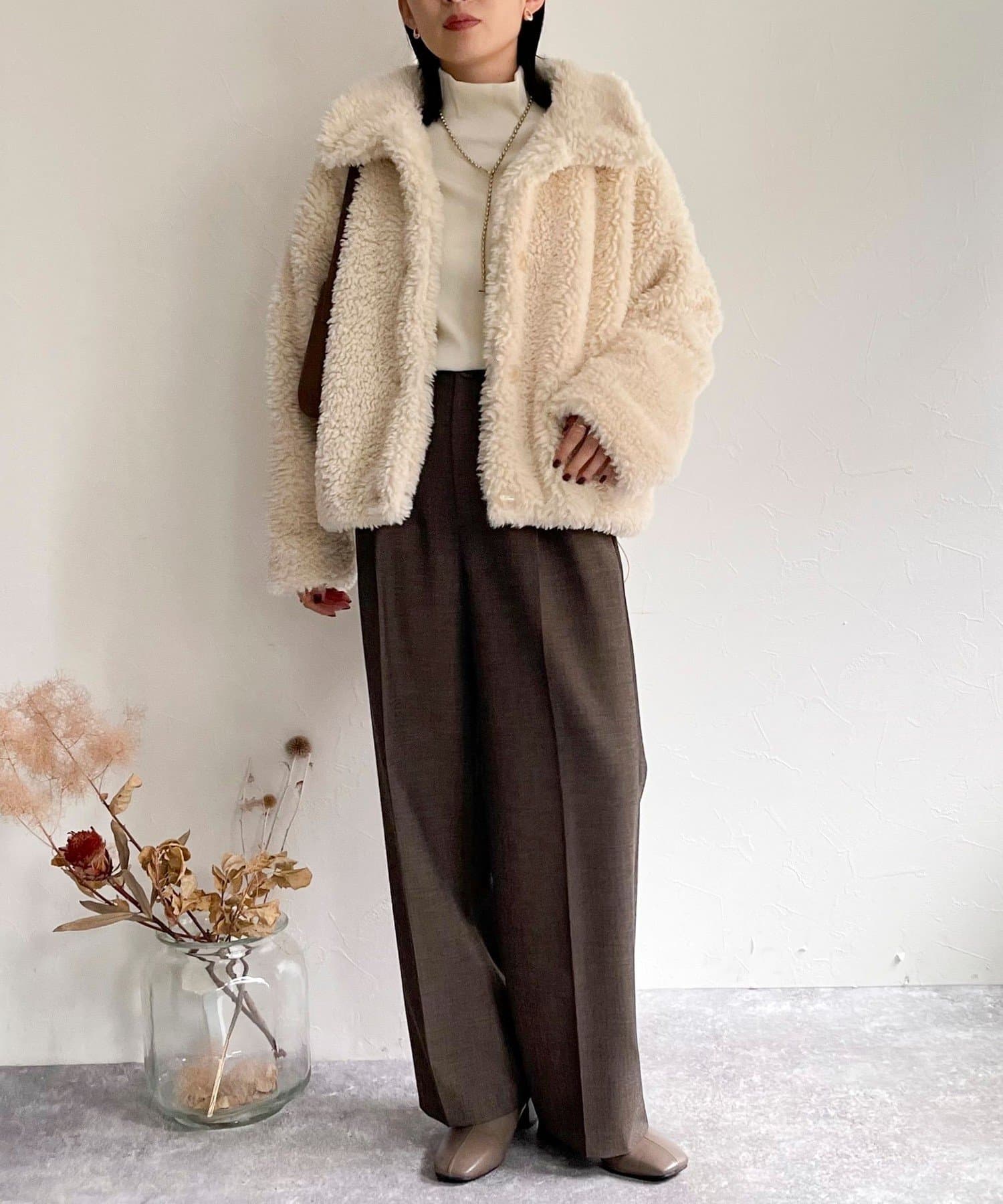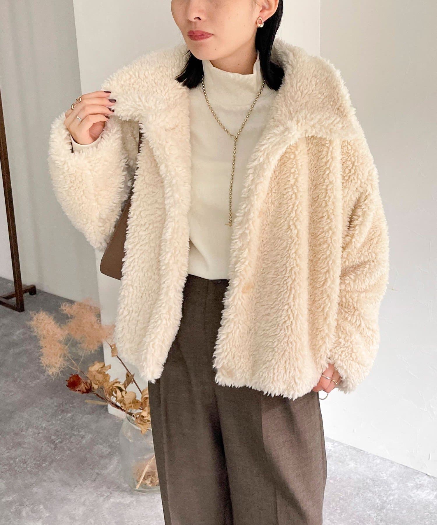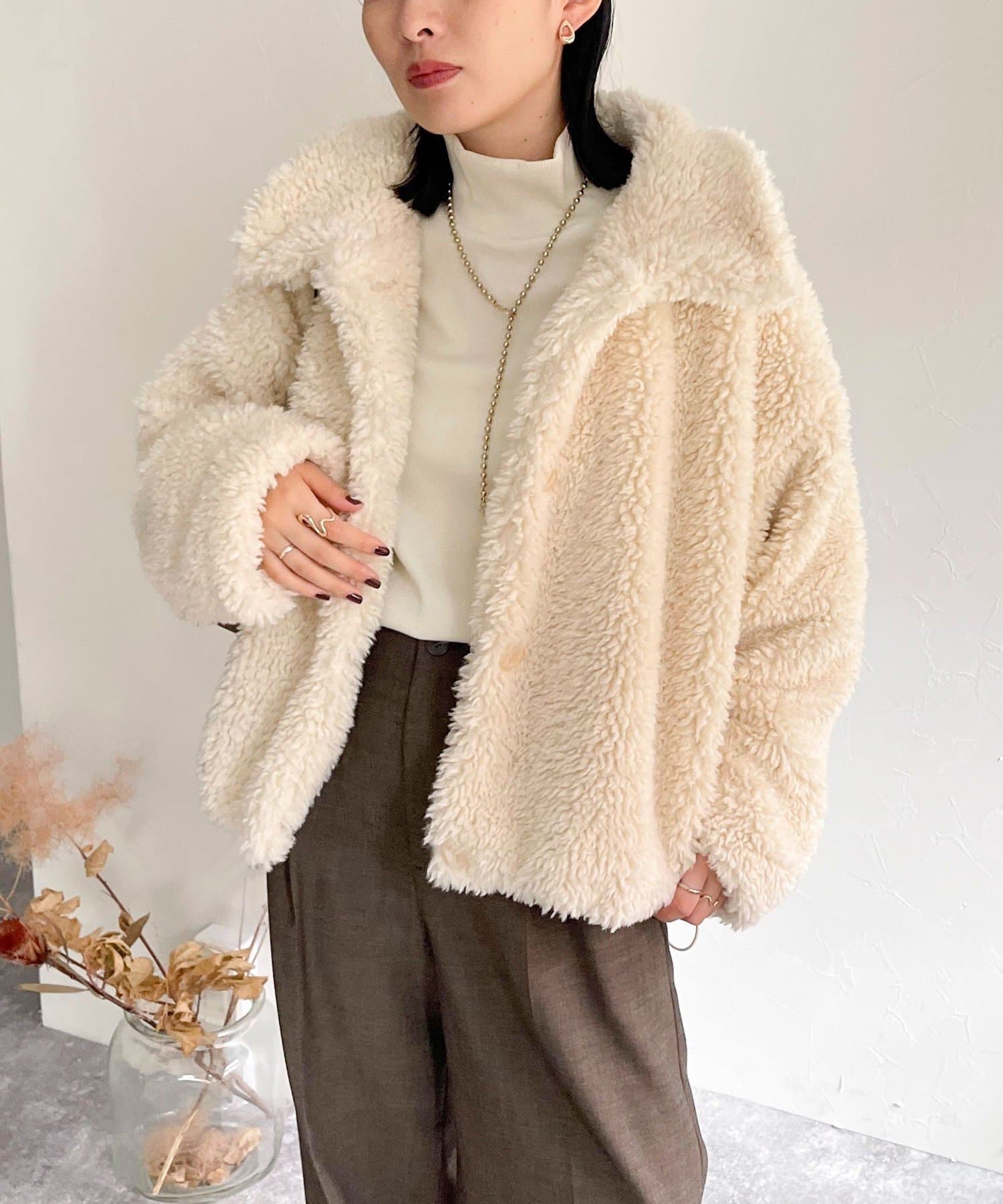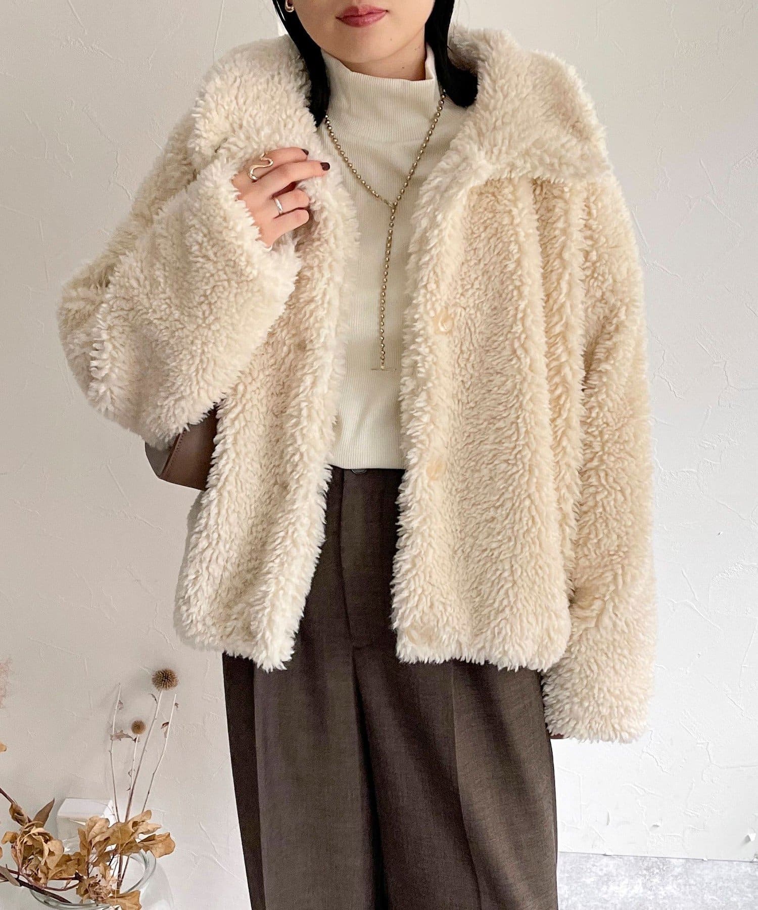 ・ふんわりとしたフェイクファーとややショートな丈感で1枚でトレンド感のある仕上がりに!