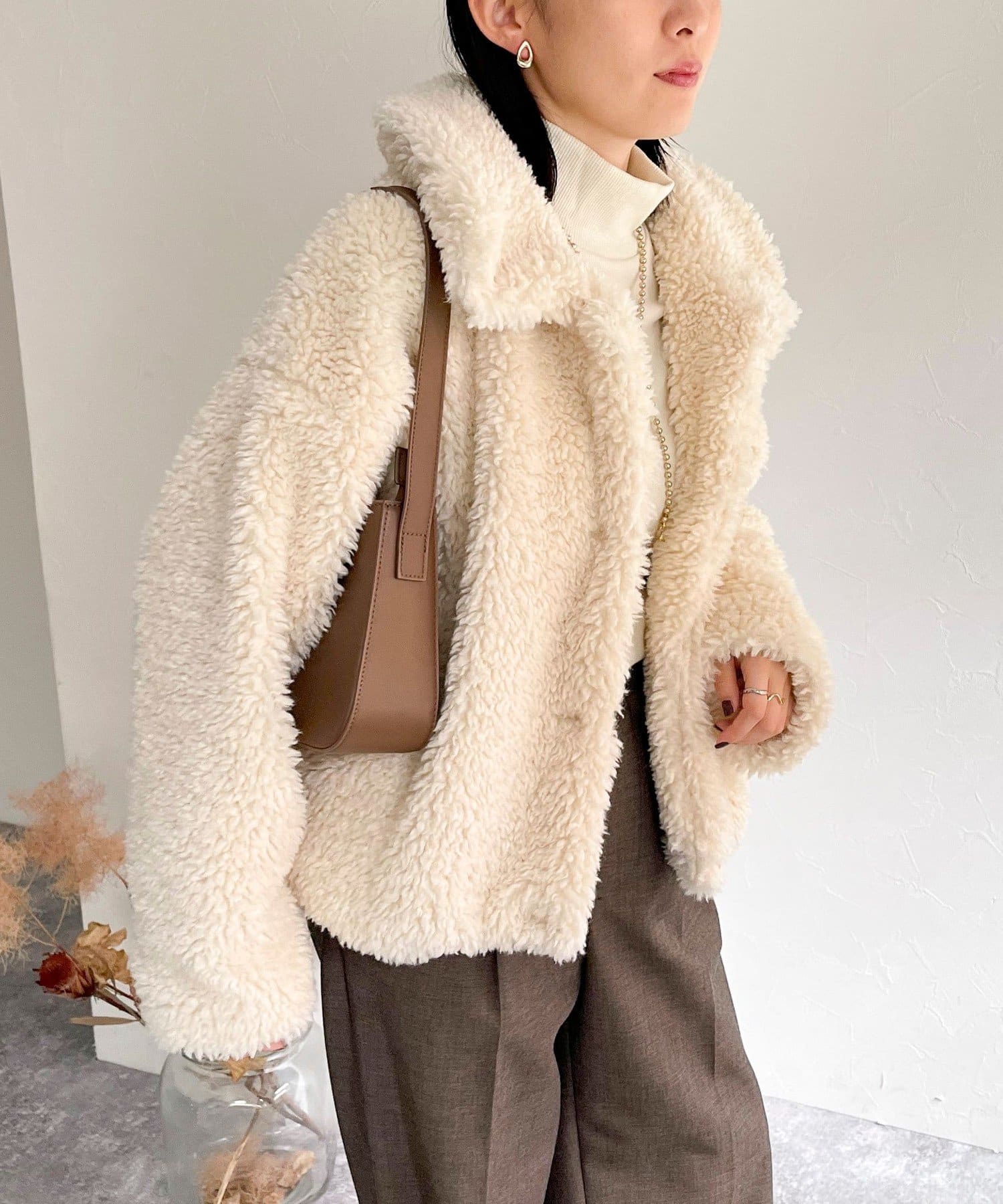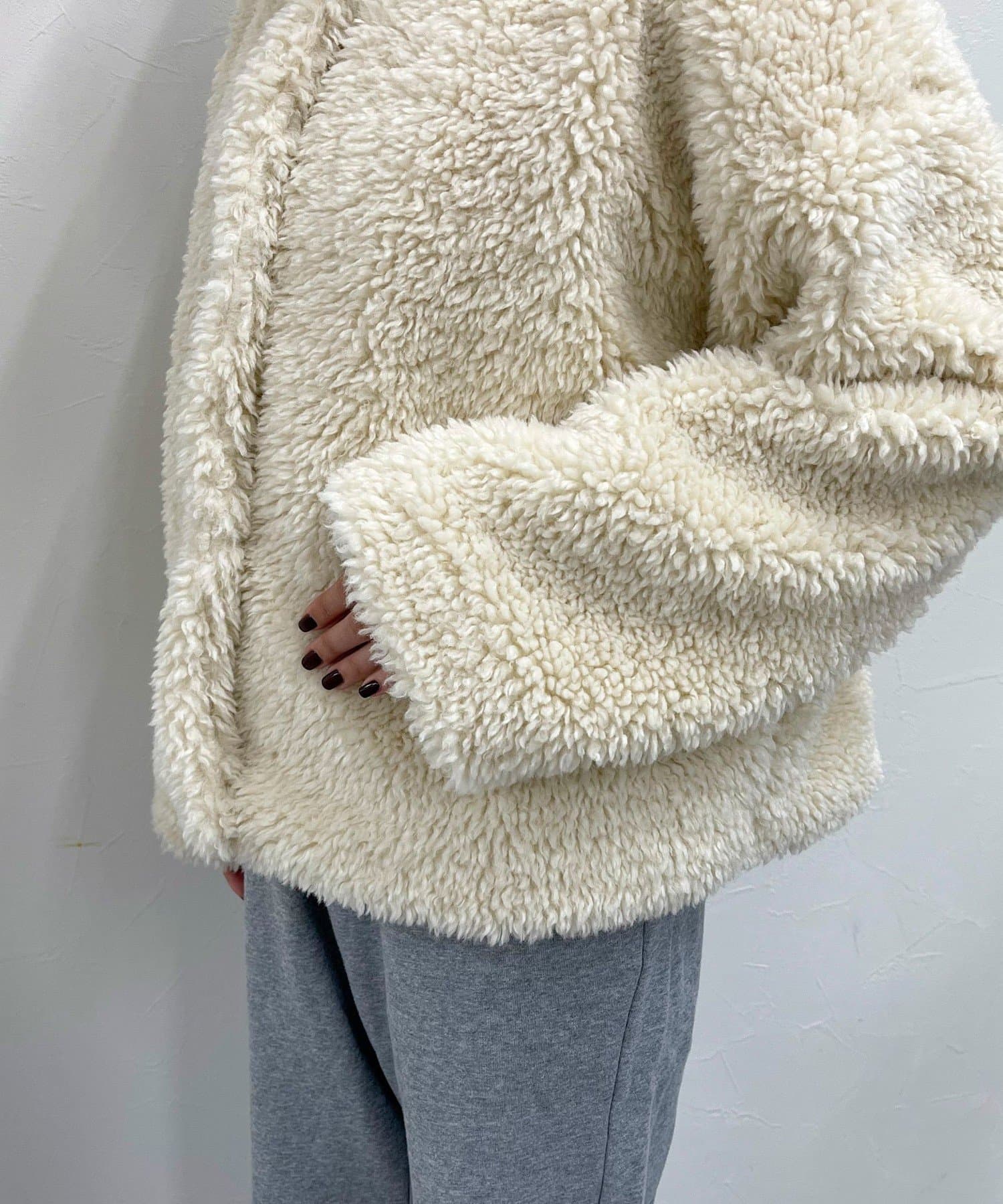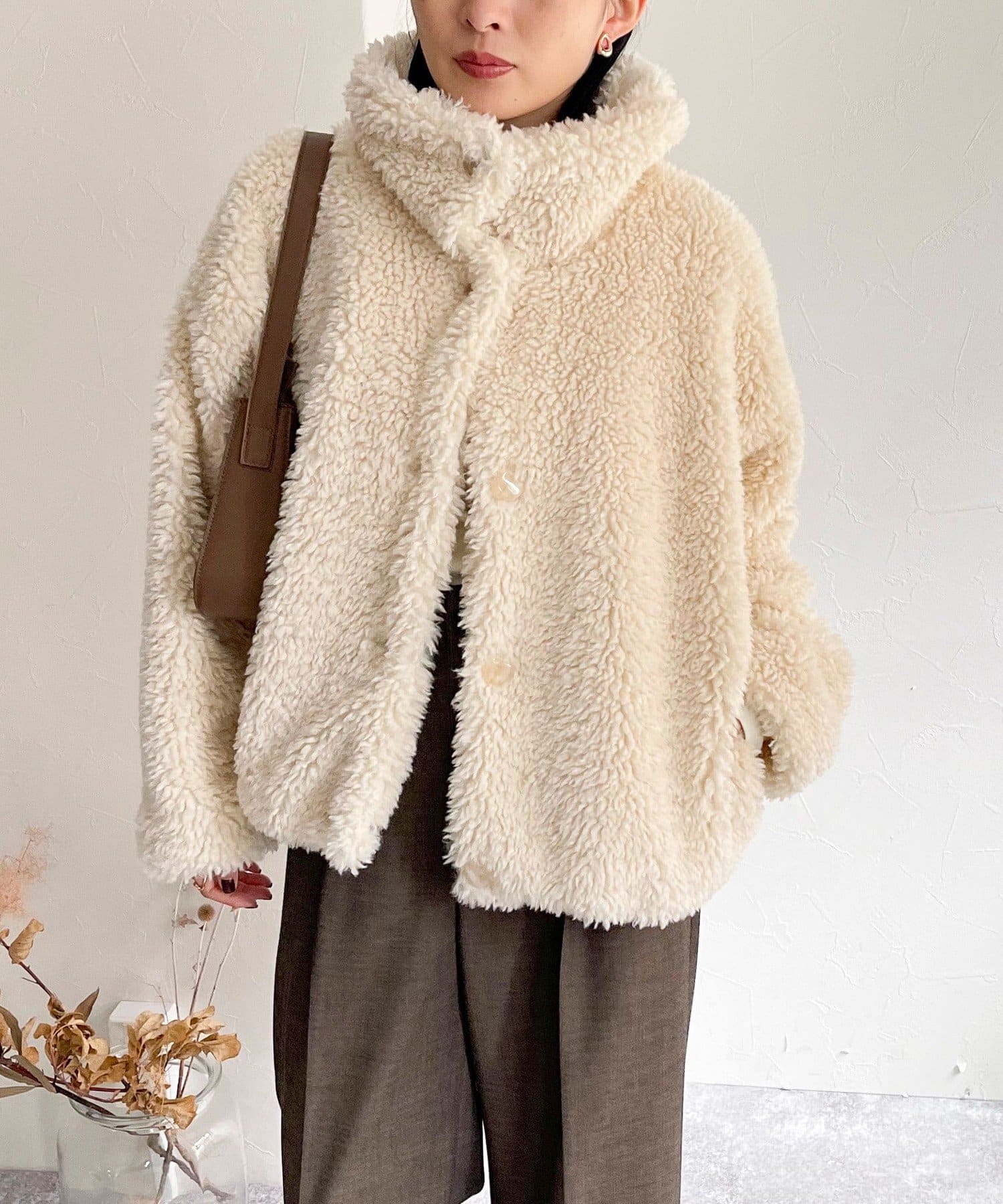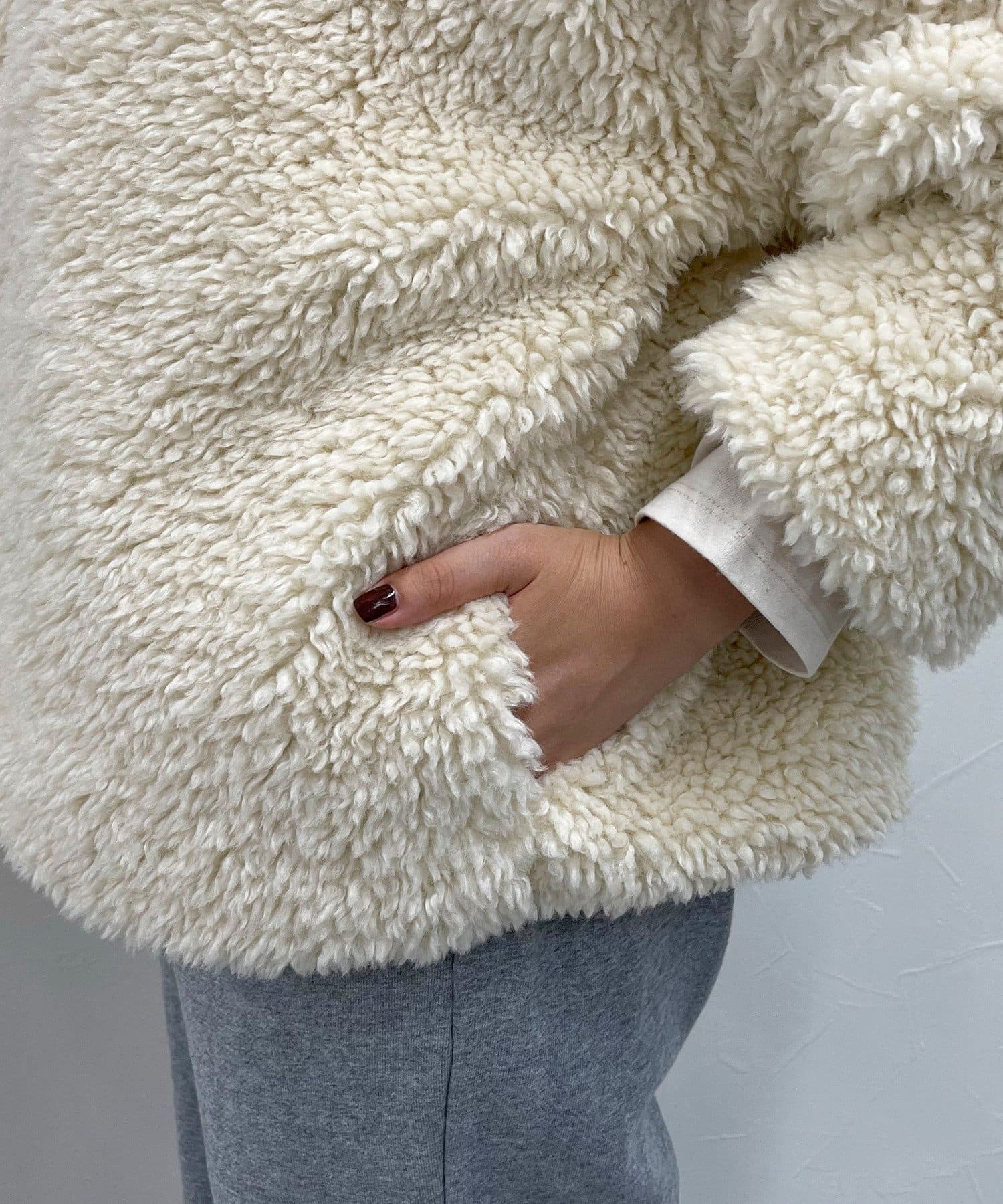 ・ふんわりとしたフェイクファーとややショートな丈感で1枚でトレンド感のある仕上がりに!