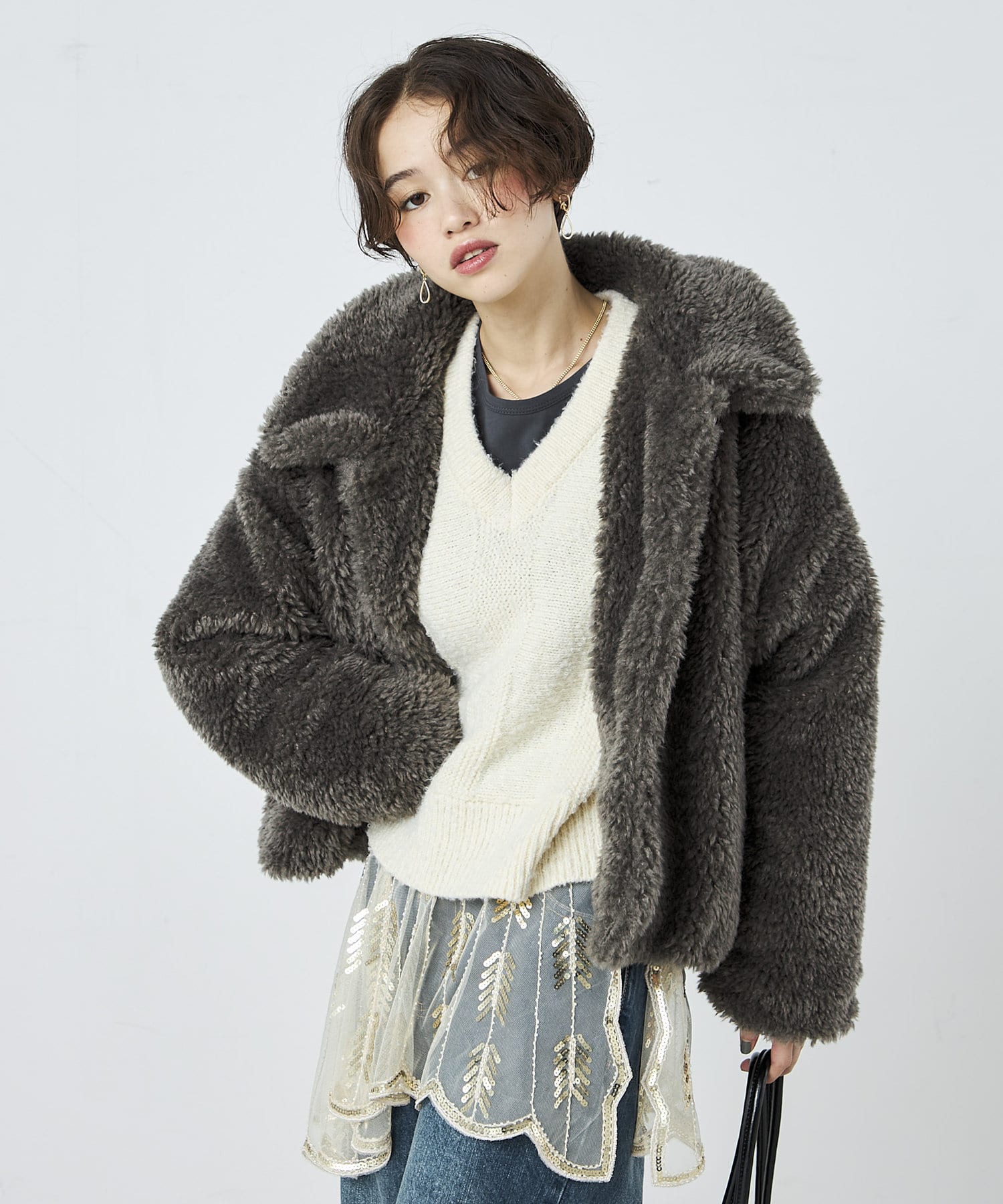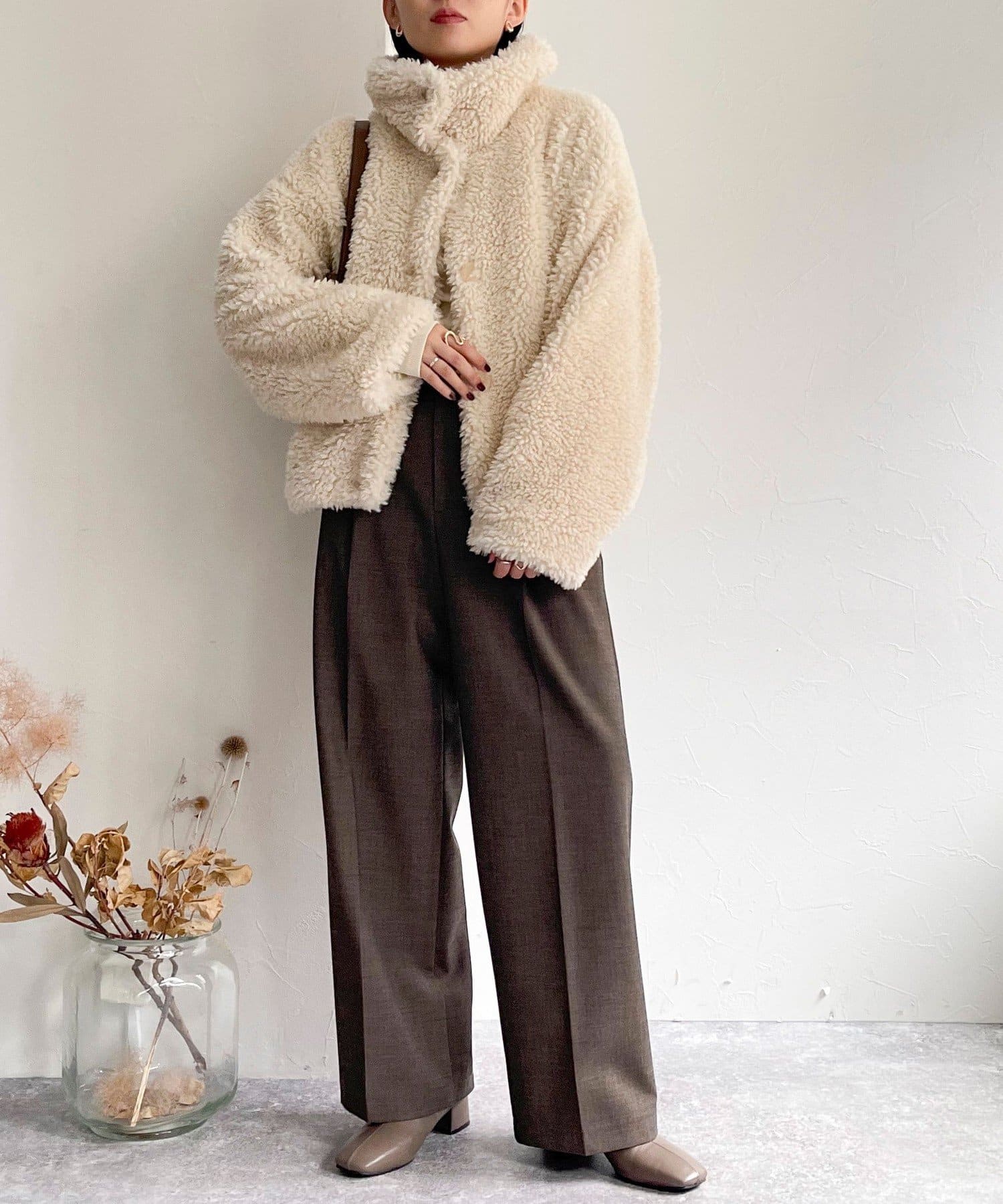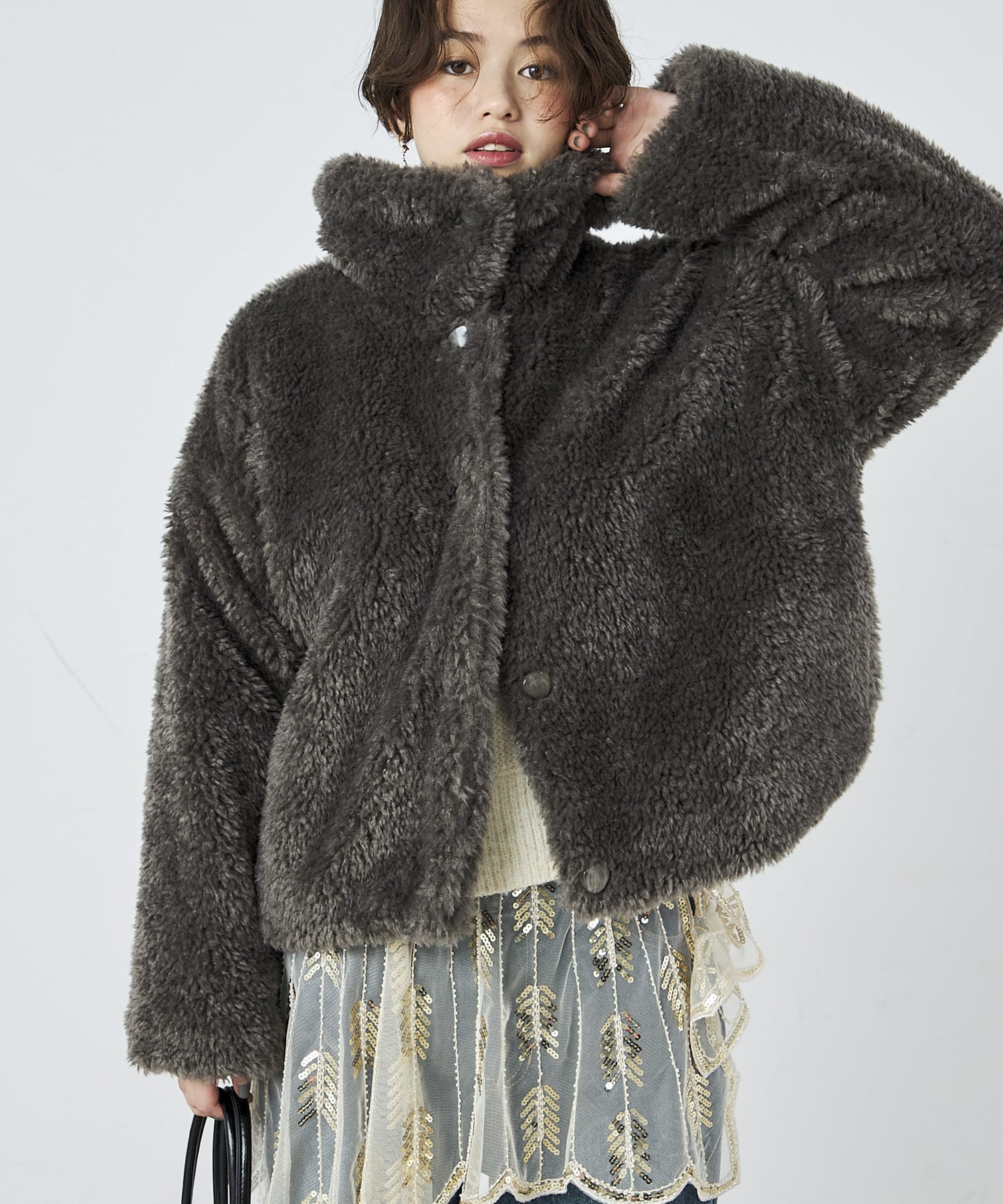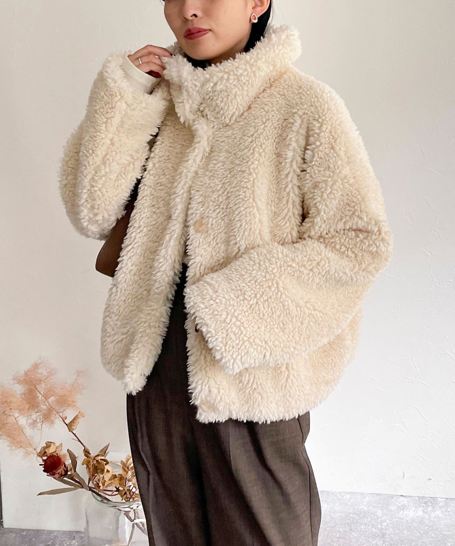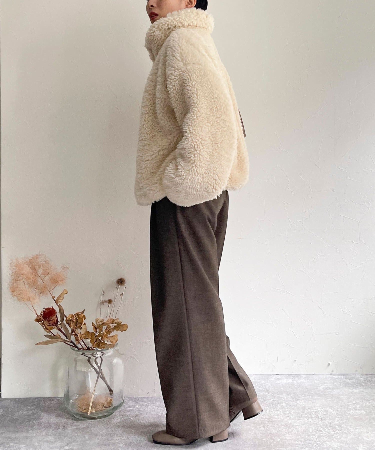 ・ふんわりとしたフェイクファーとややショートな丈感で1枚でトレンド感のある仕上がりに!