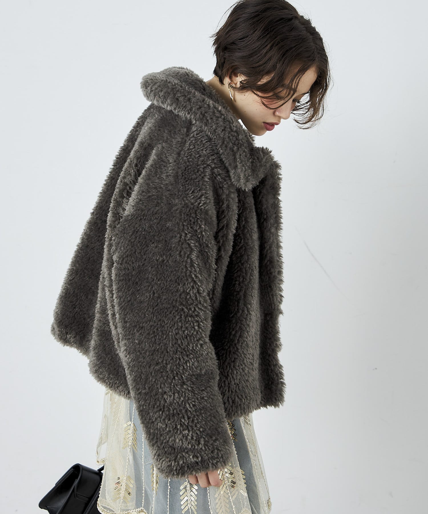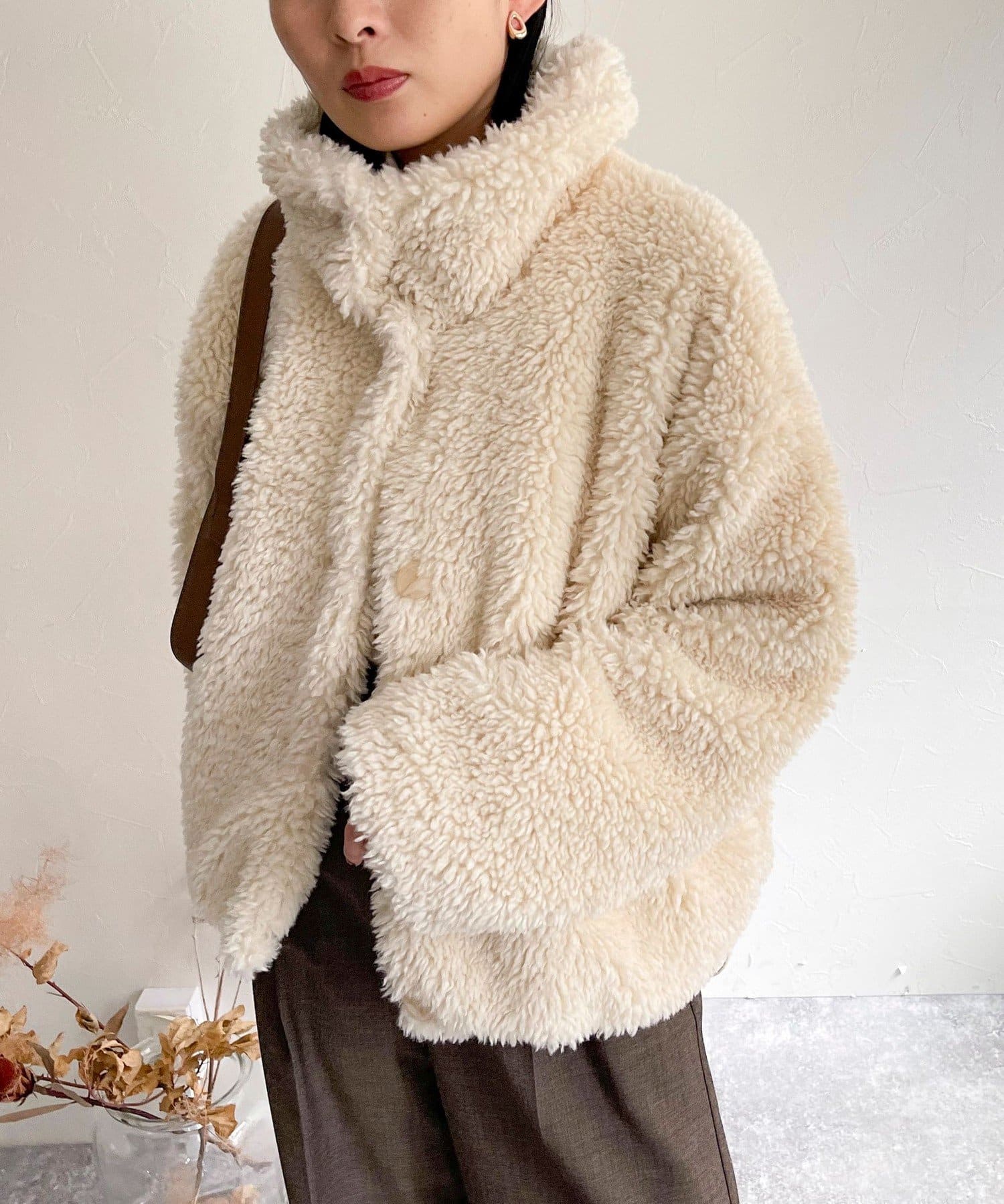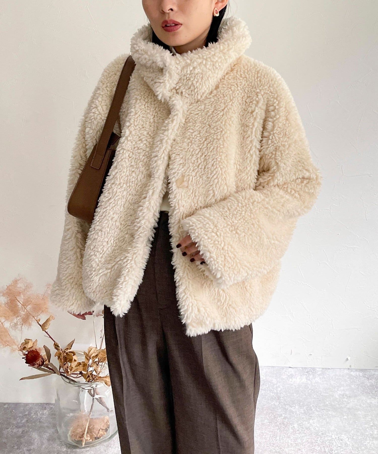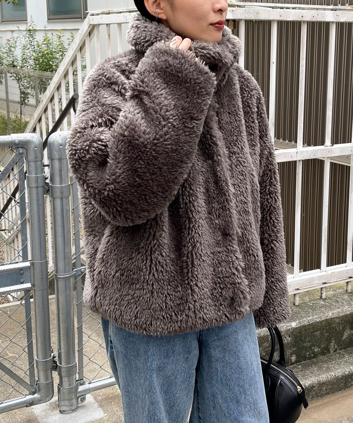 ・ふんわりとしたフェイクファーとややショートな丈感で1枚でトレンド感のある仕上がりに!