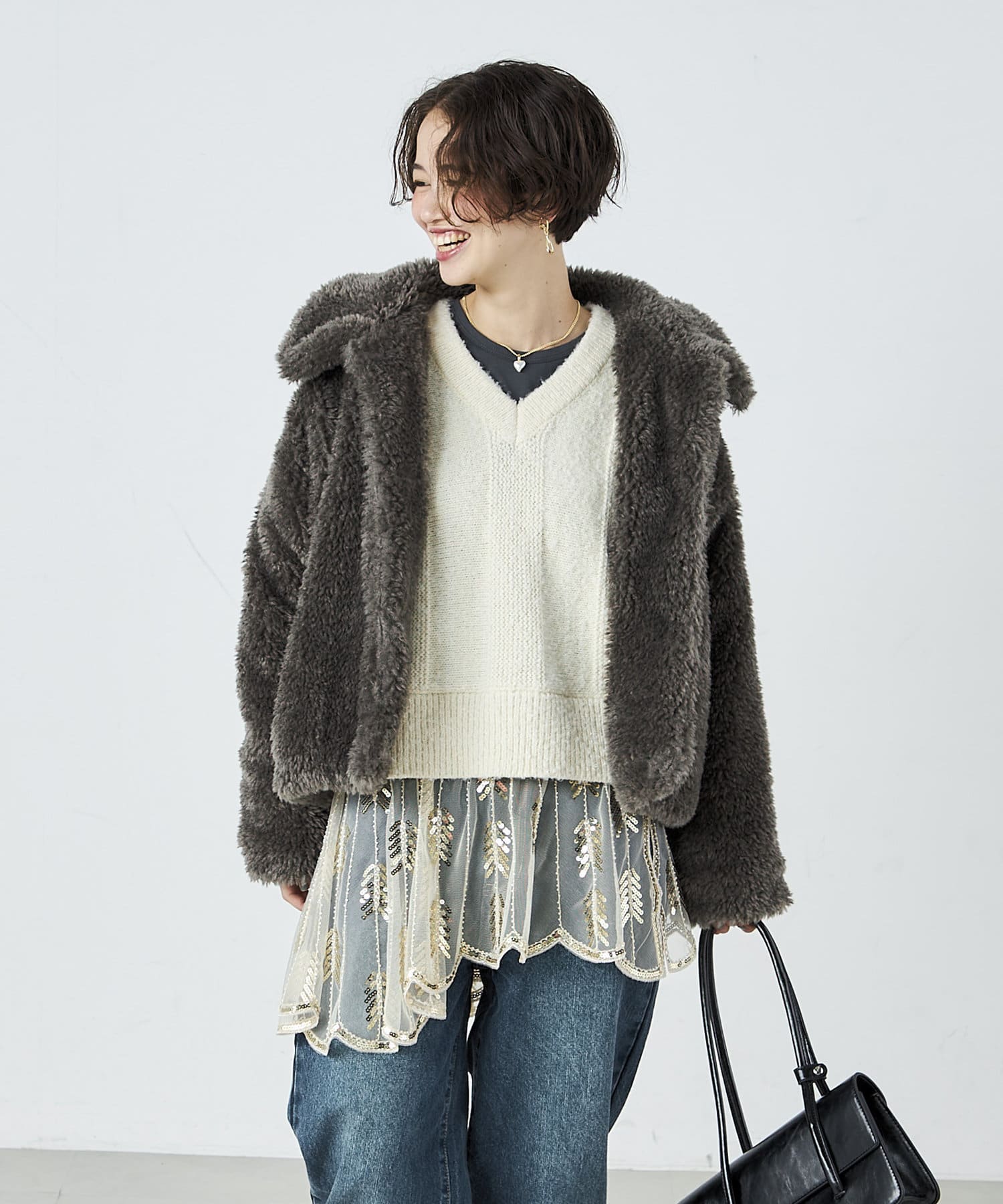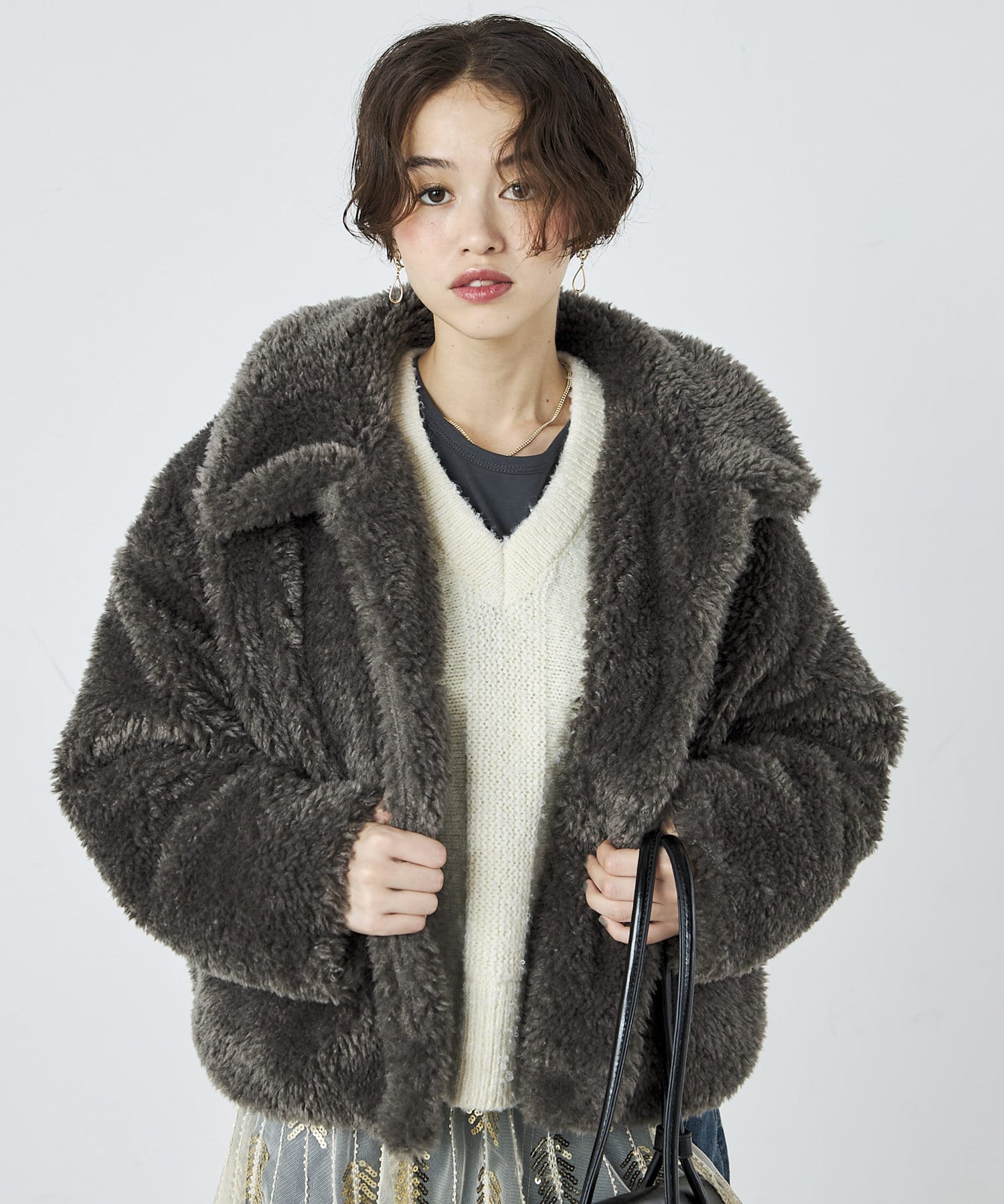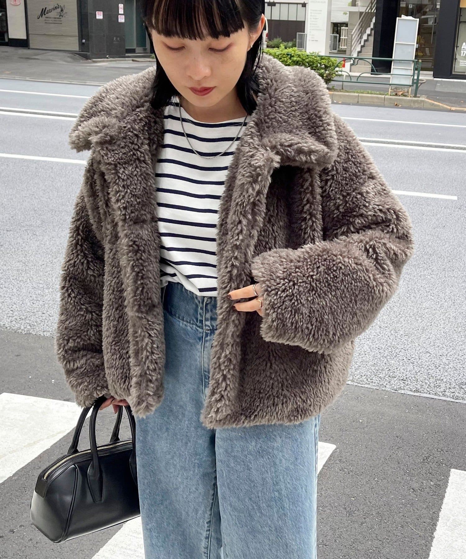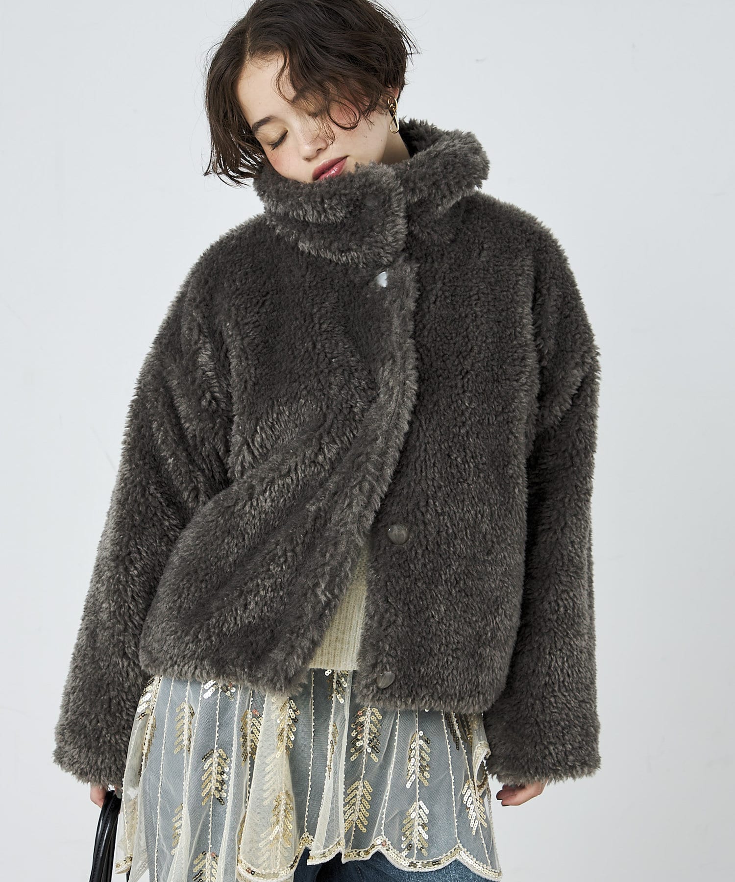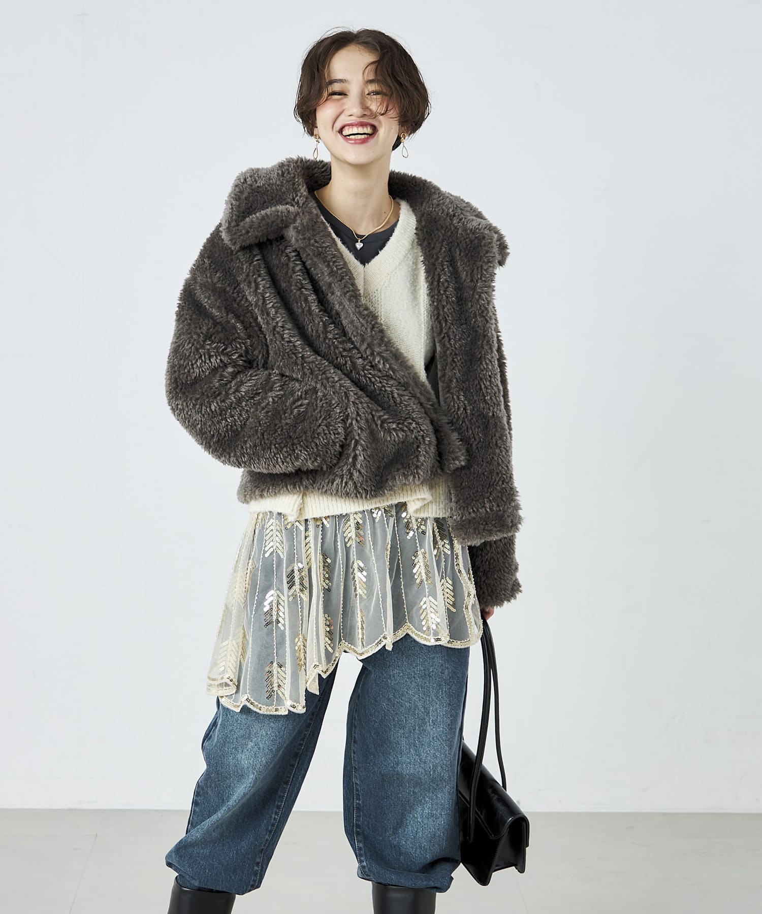 ・ふんわりとしたフェイクファーとややショートな丈感で1枚でトレンド感のある仕上がりに!