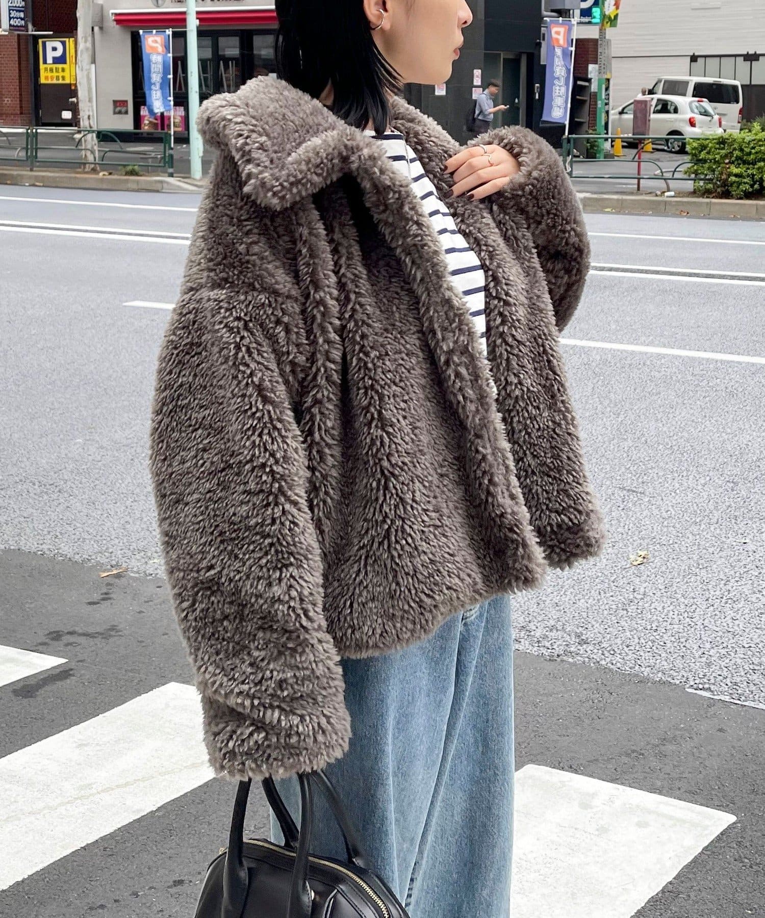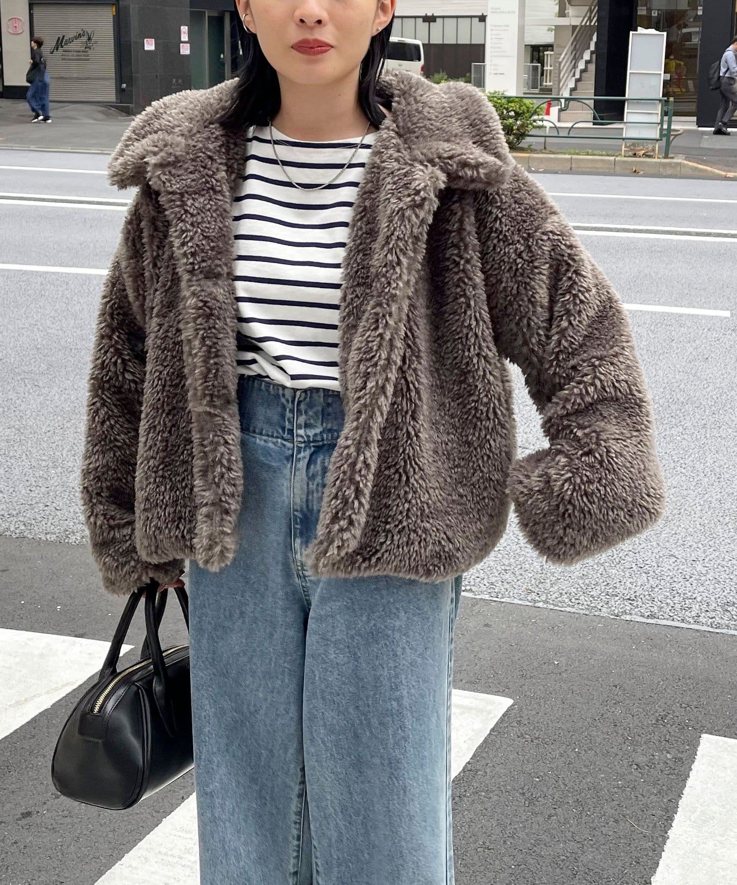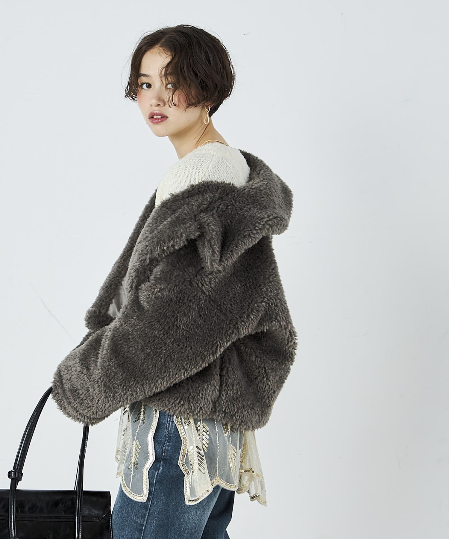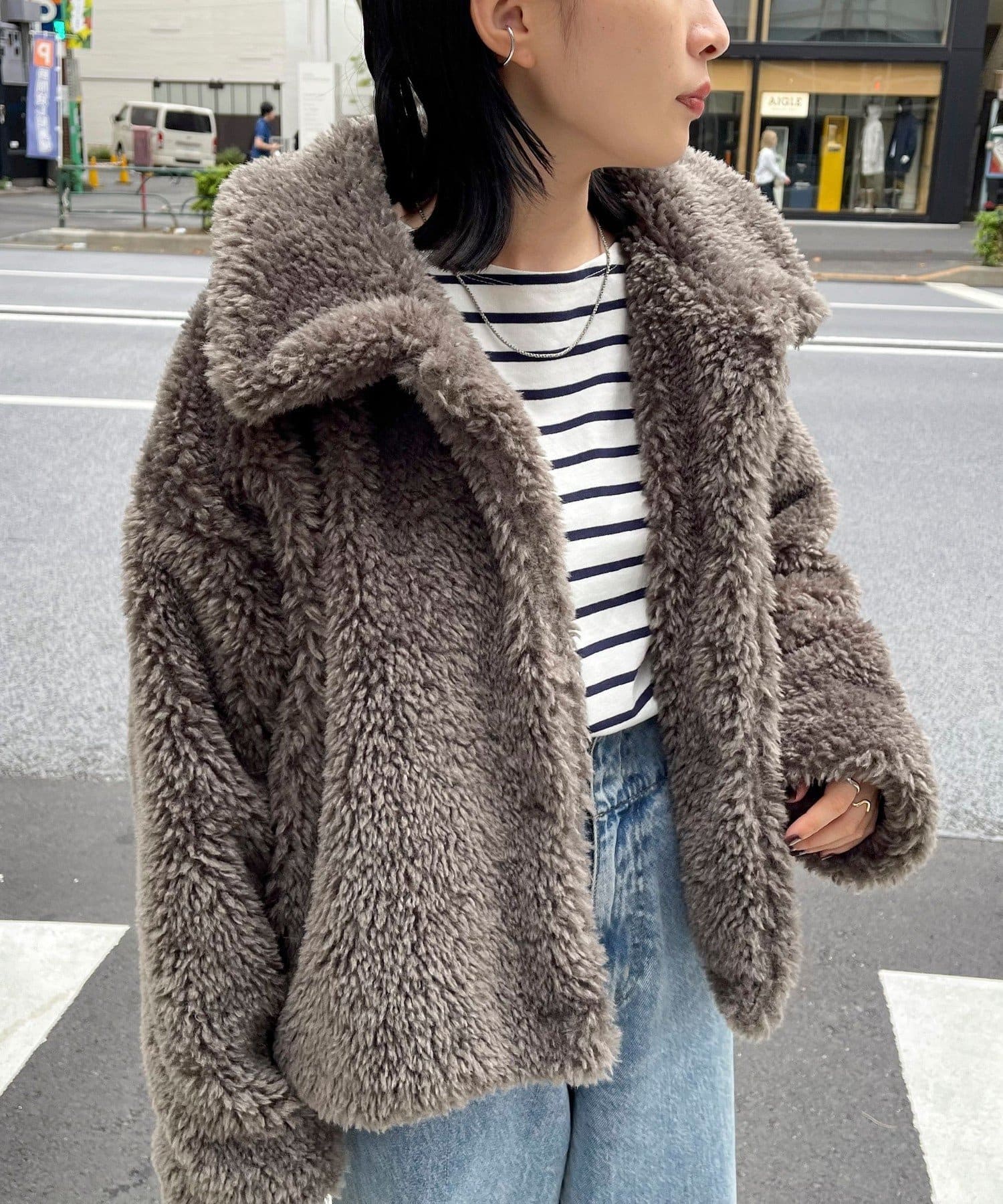 ・ふんわりとしたフェイクファーとややショートな丈感で1枚でトレンド感のある仕上がりに!