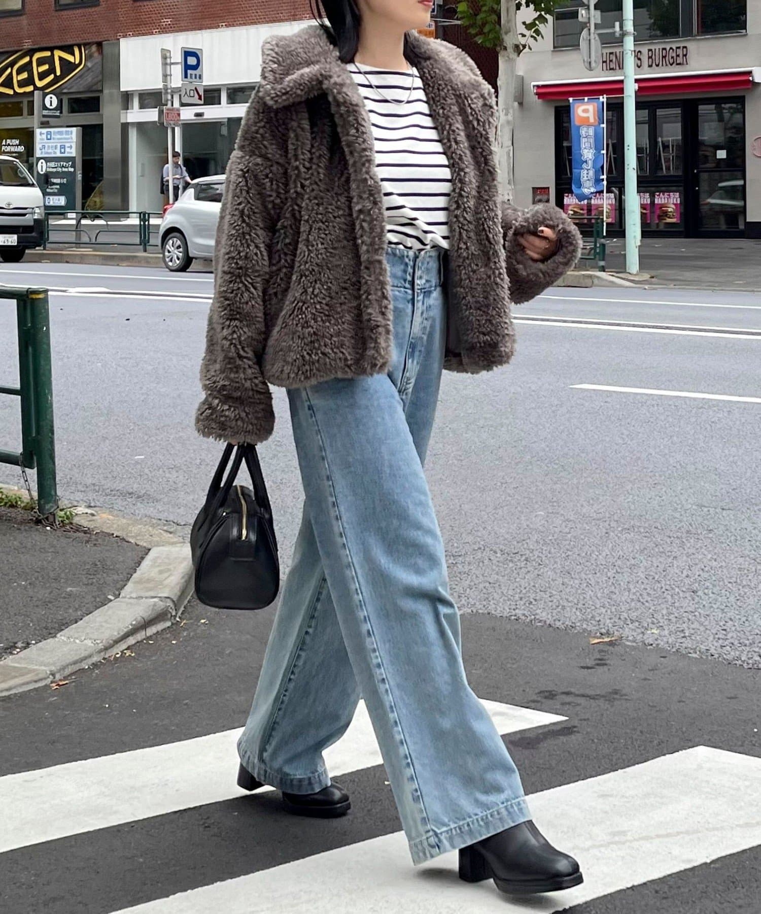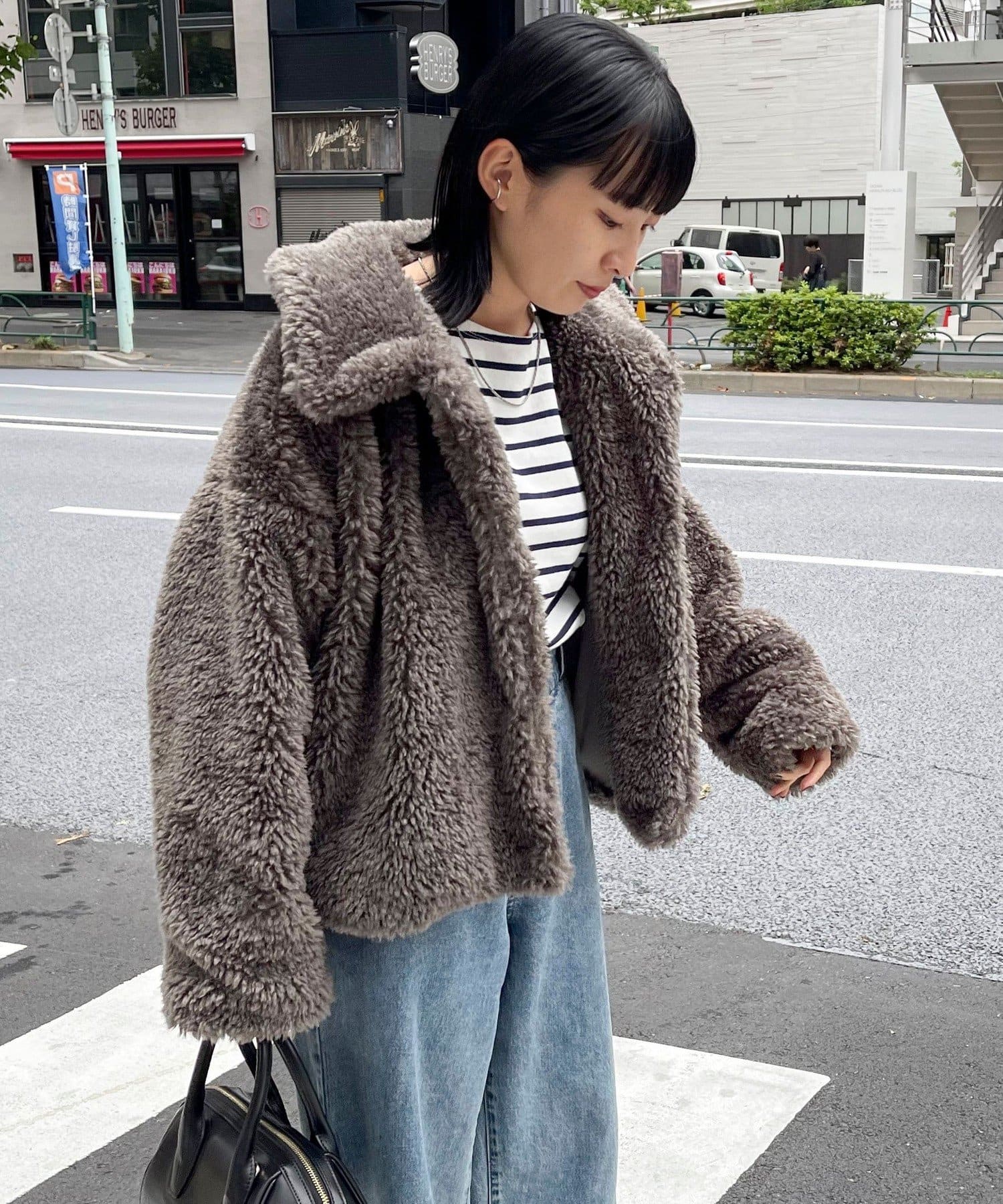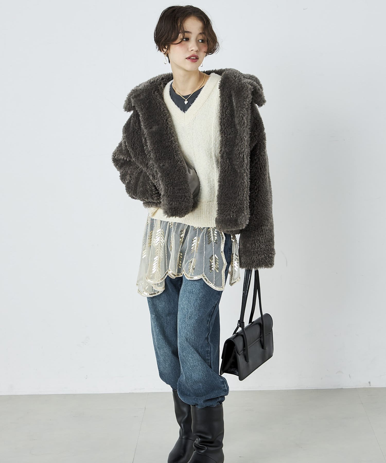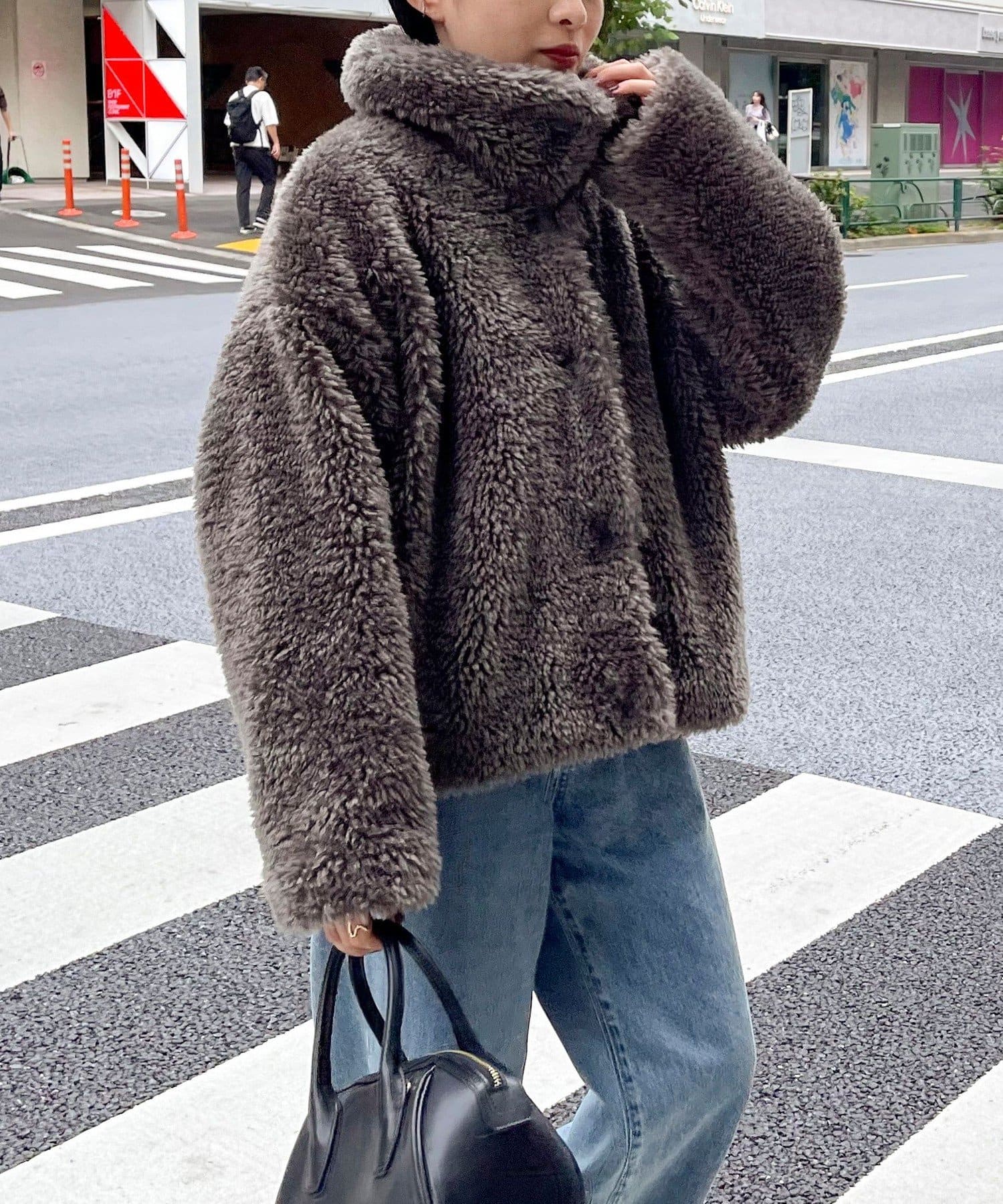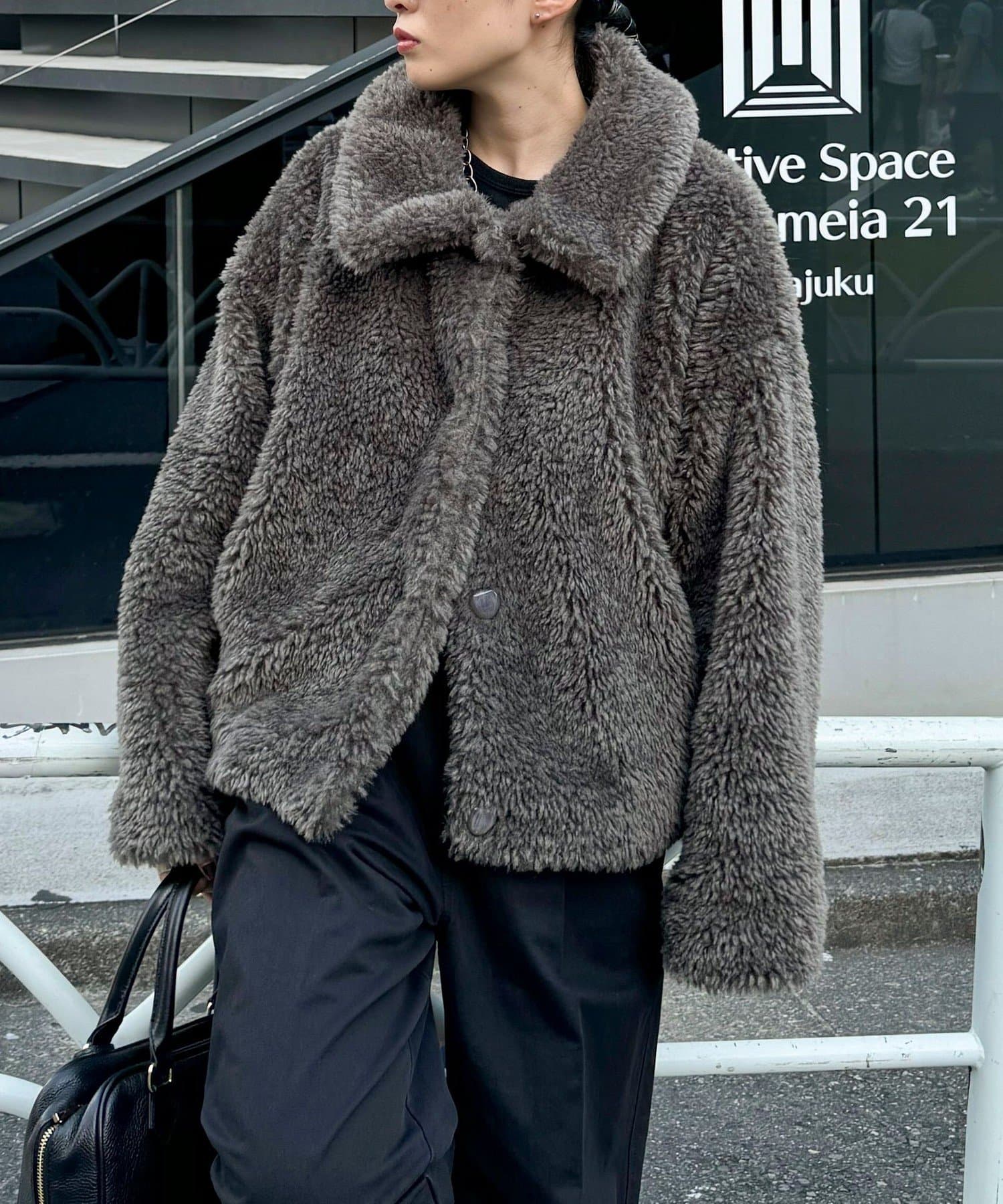 ・ふんわりとしたフェイクファーとややショートな丈感で1枚でトレンド感のある仕上がりに!