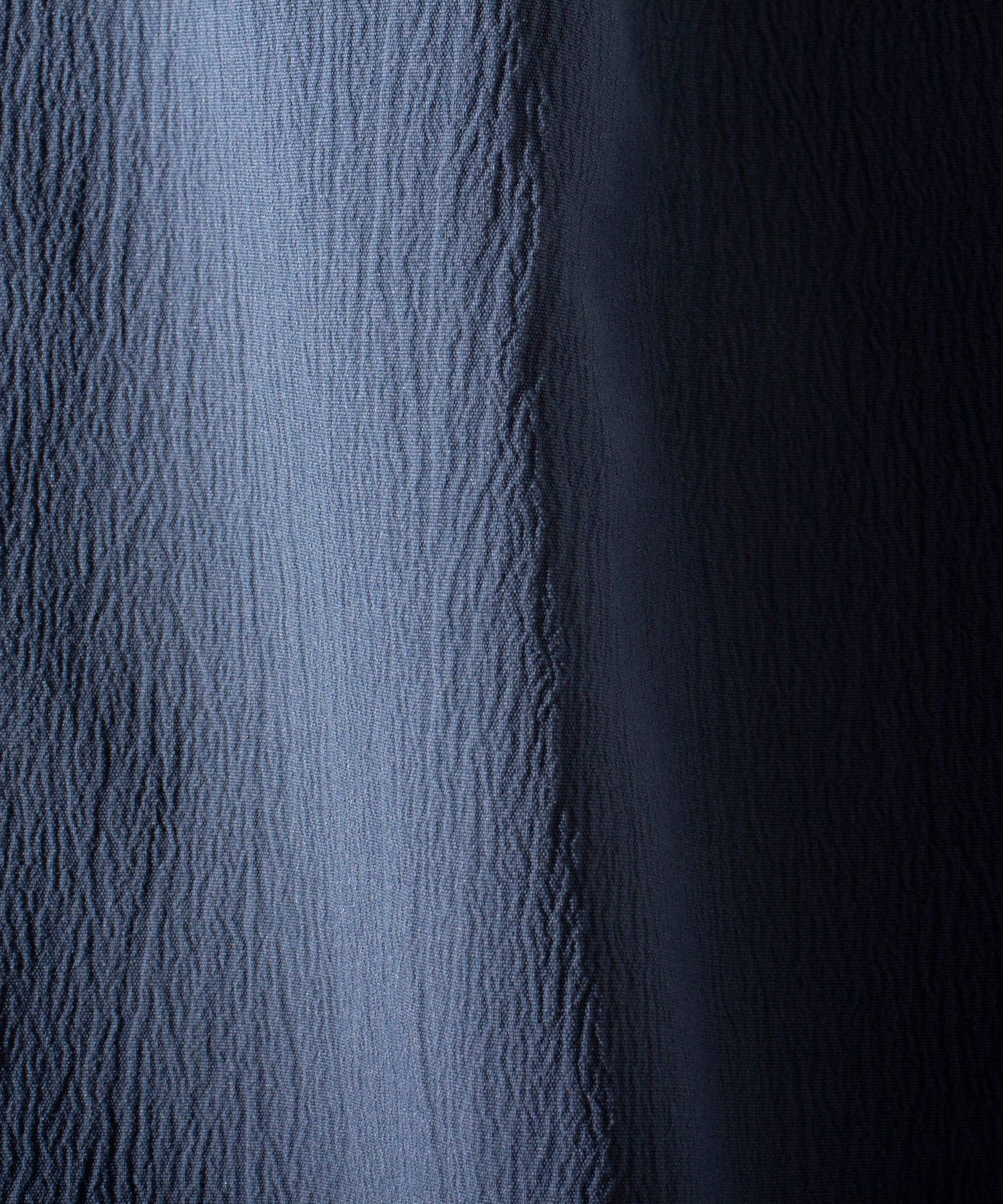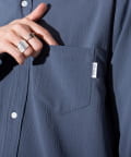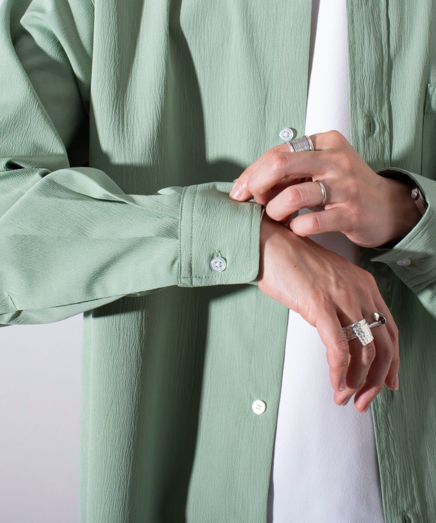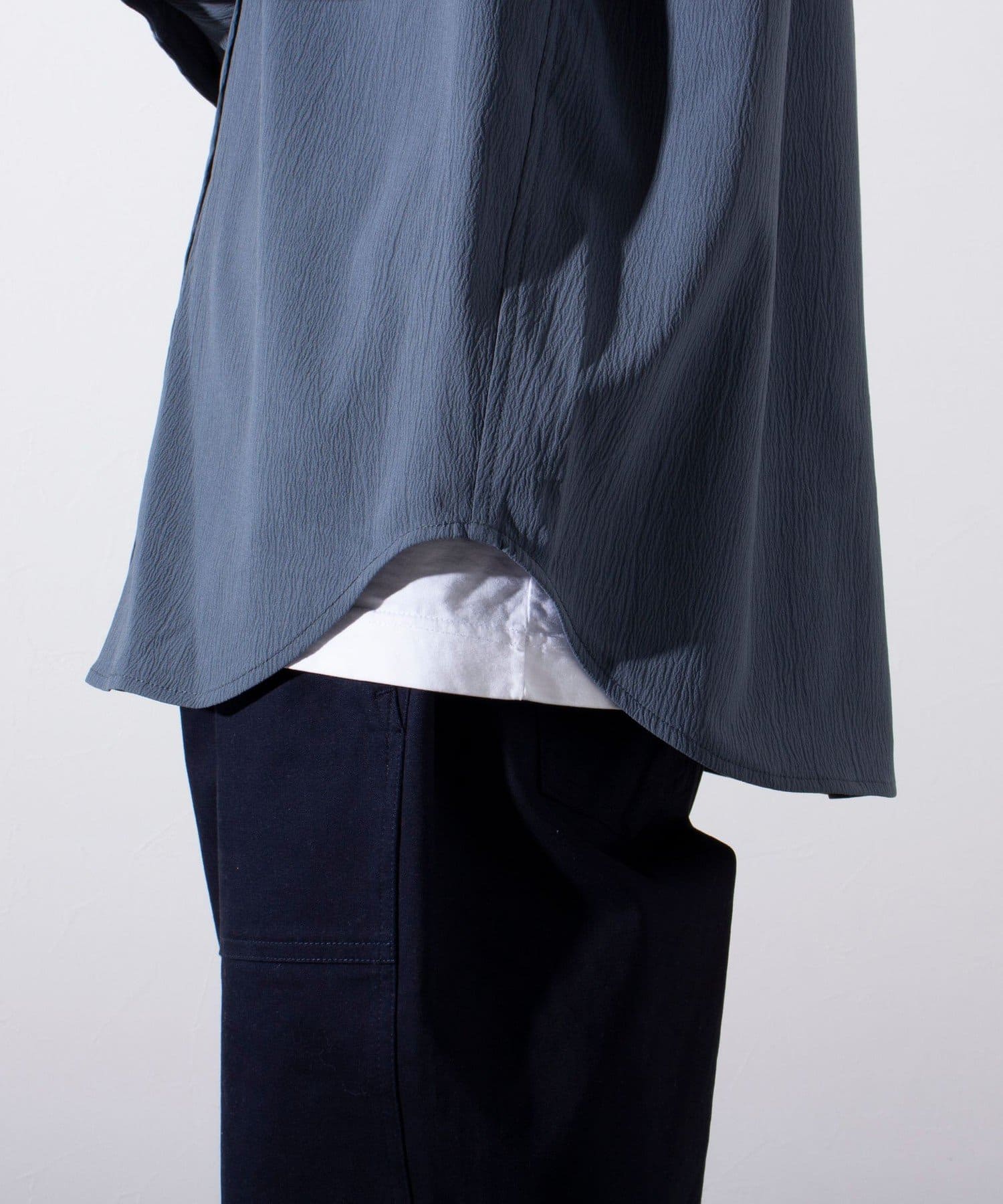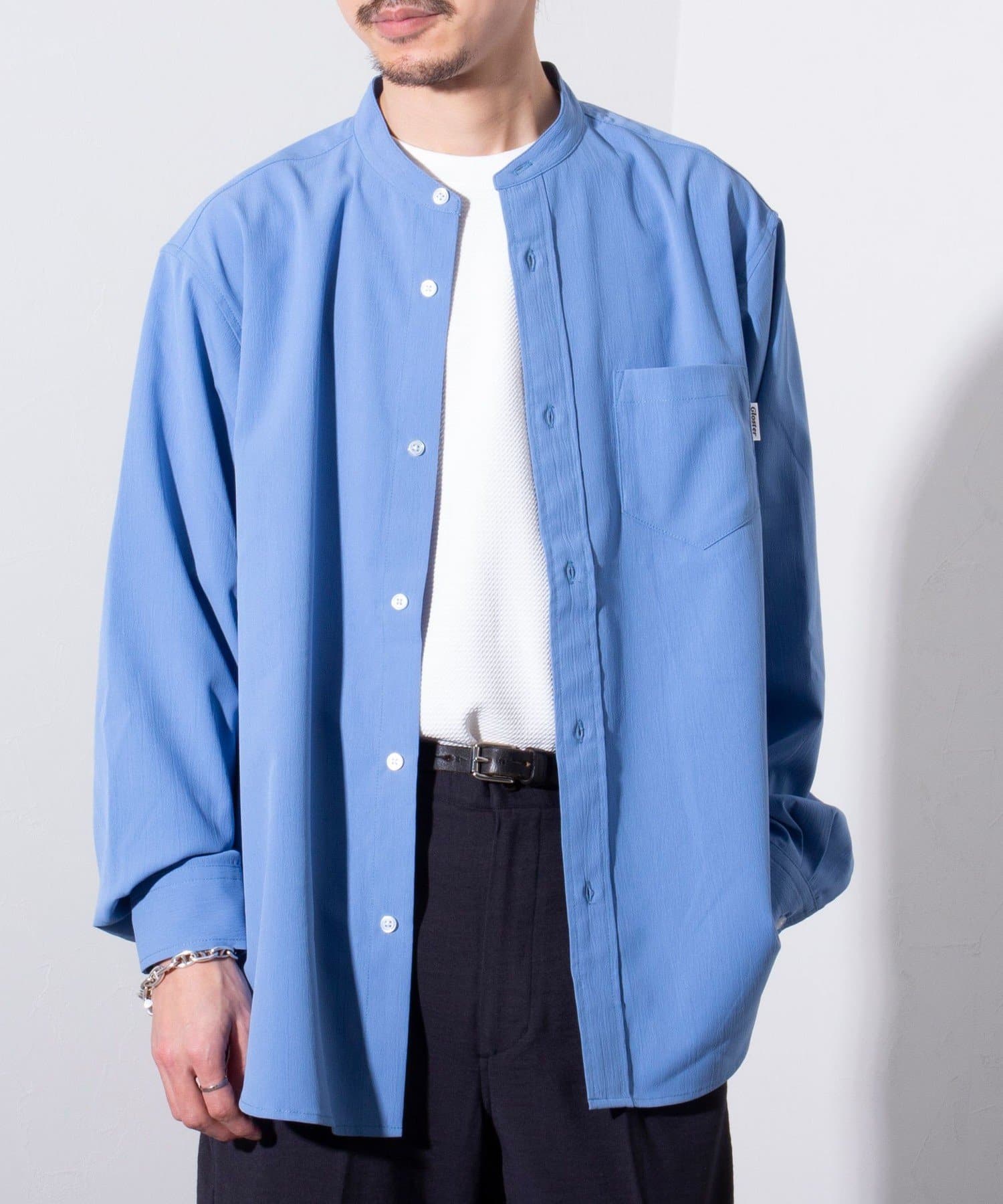 清涼感のある楊柳ワッシャー素材のバンドカラーシャツ。