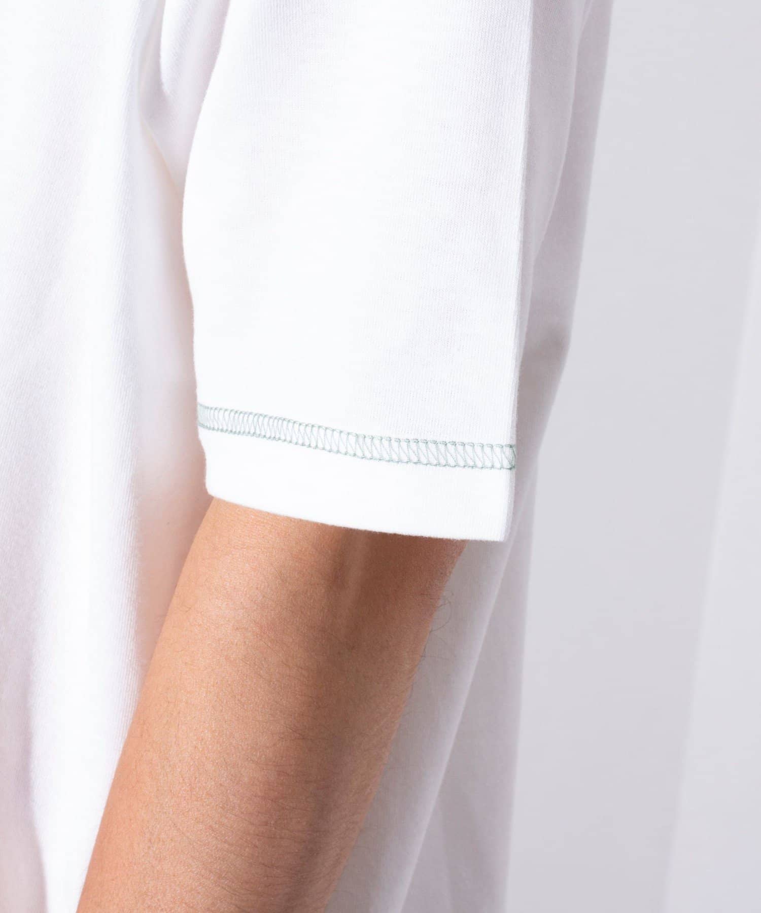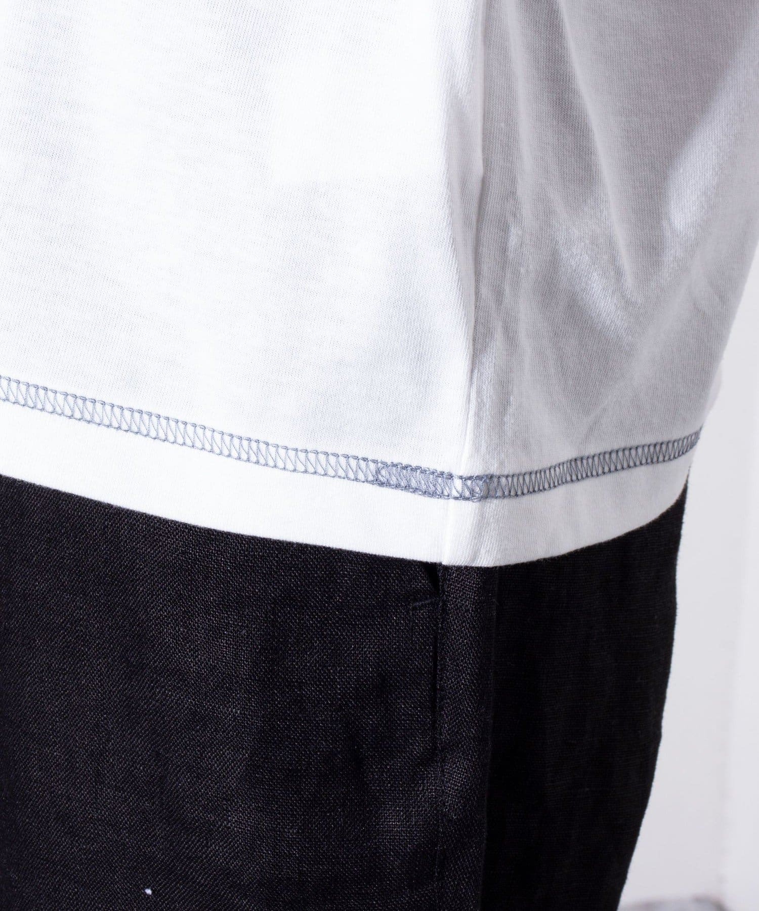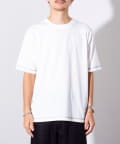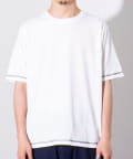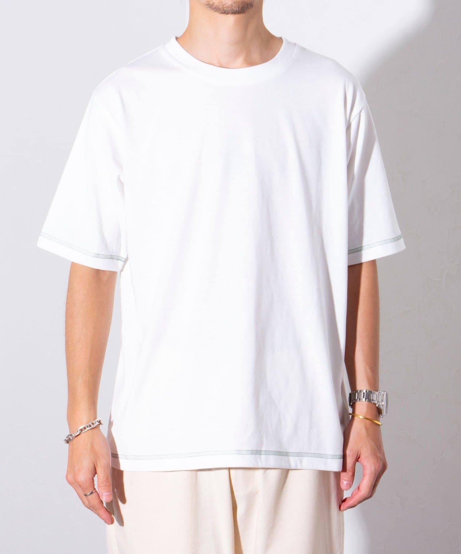 クルーネックTシャツは袖と裾が配色ステッチ仕様のワンポイントアクセント。