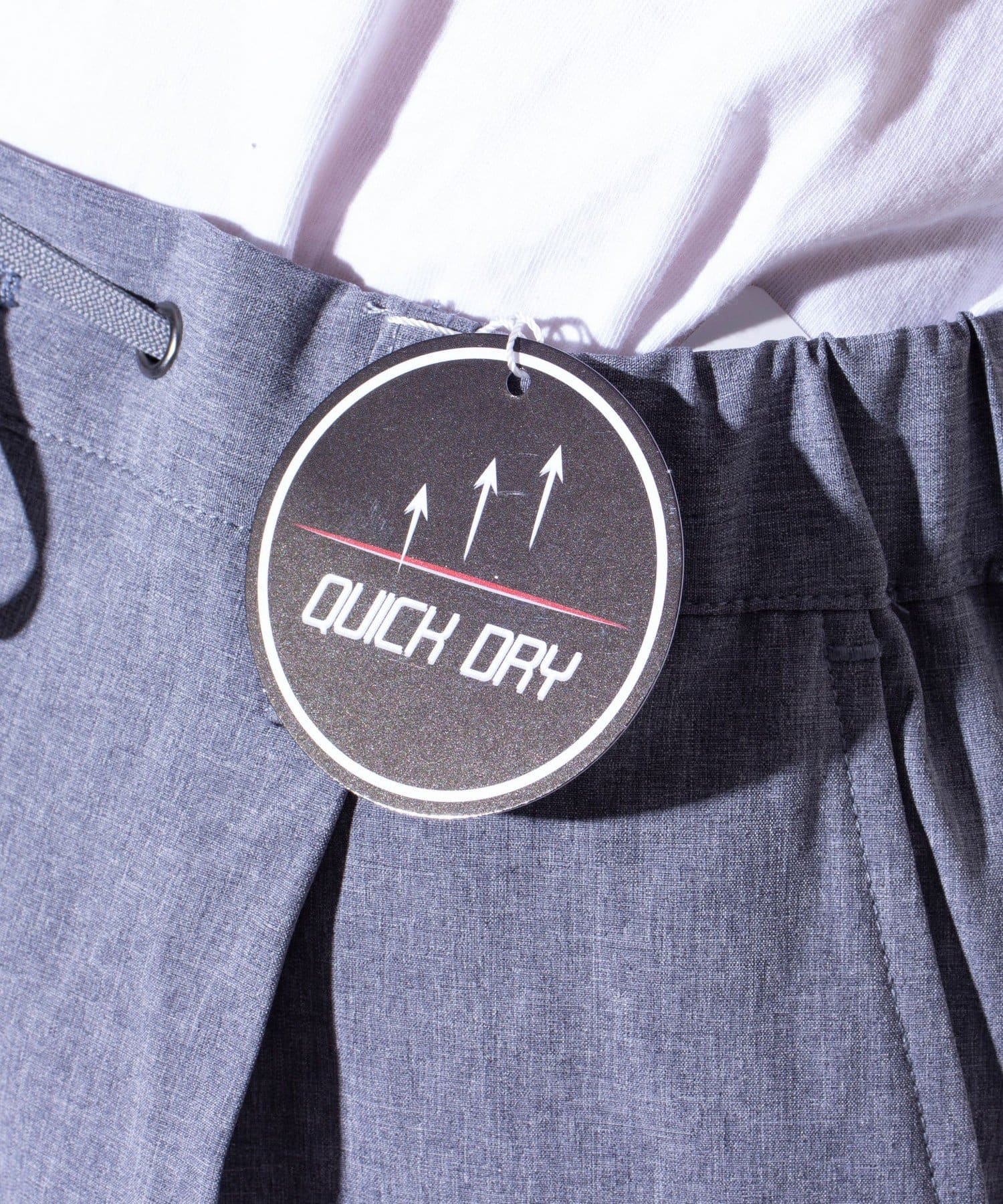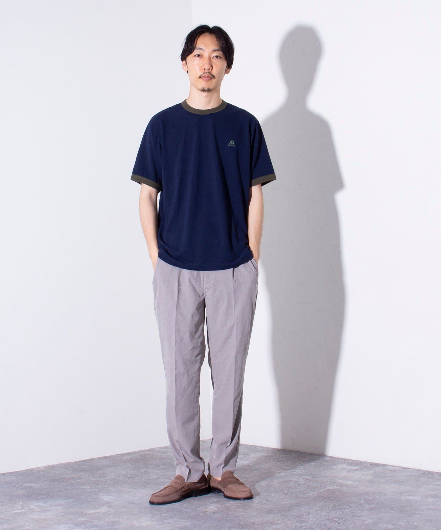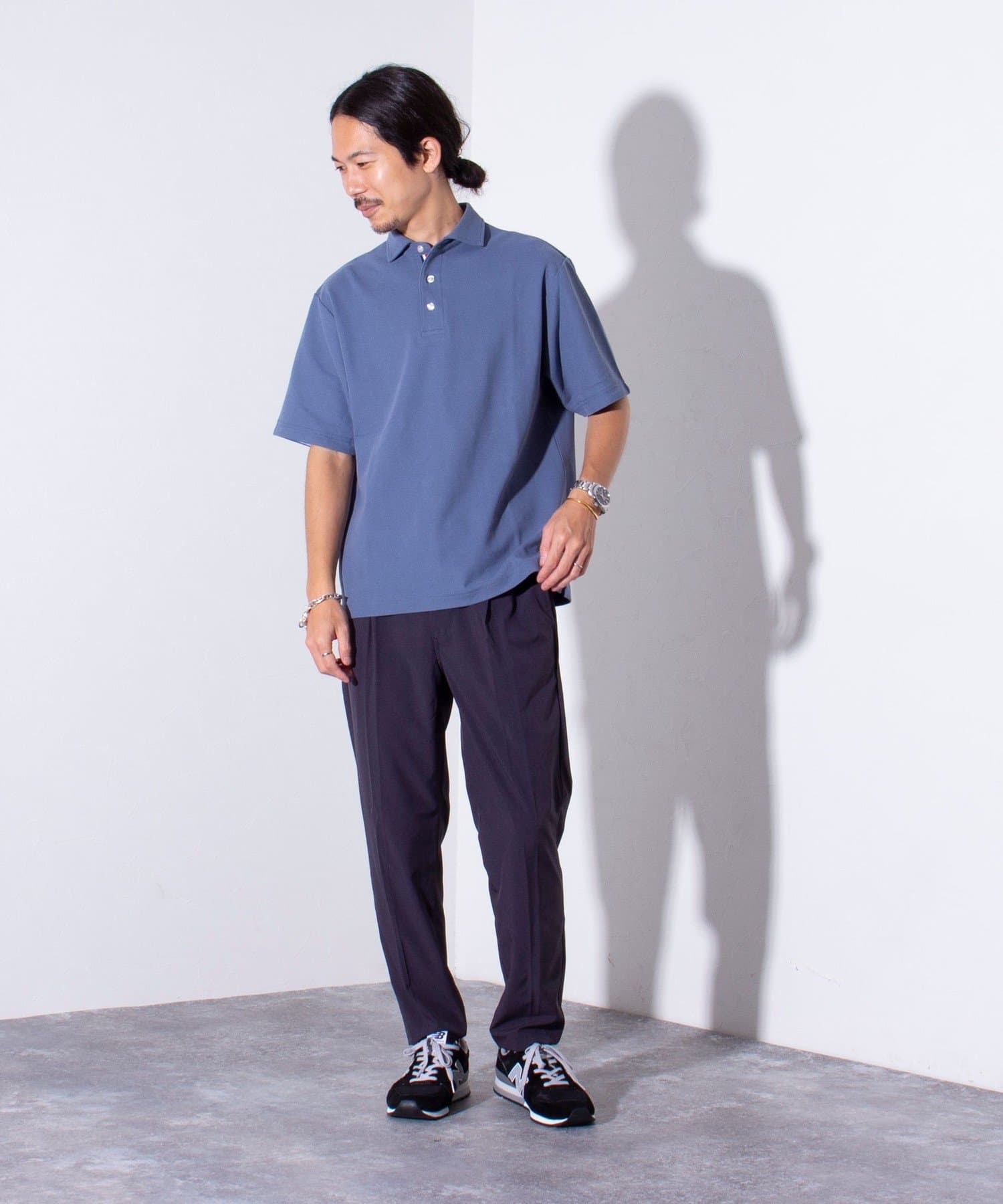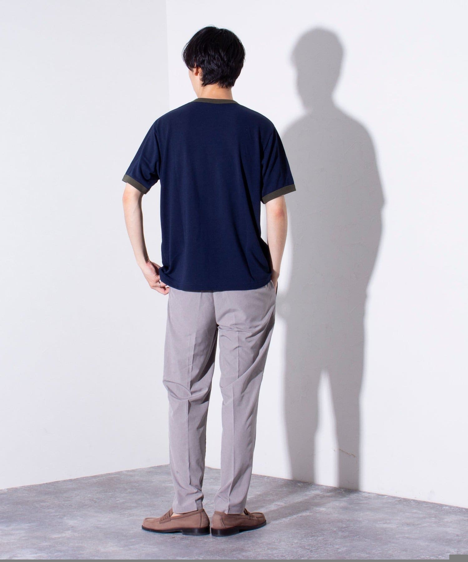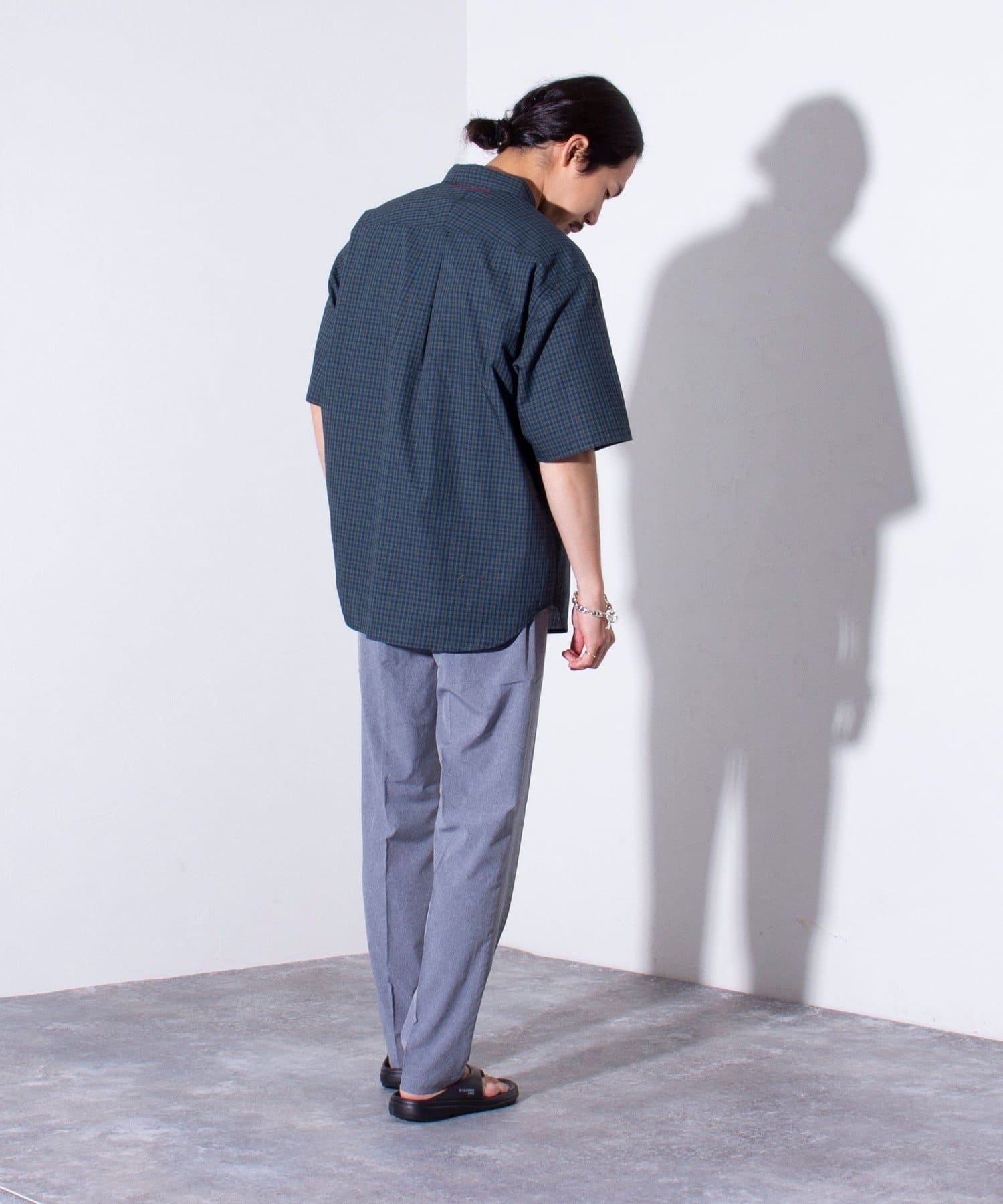 ウエストにはゴム、ベルトループをそれぞれ採用し、イージーパンツの様なリラックスした着用からベルトを使ったトップスインの着こなしまで、幅広く対応可能。