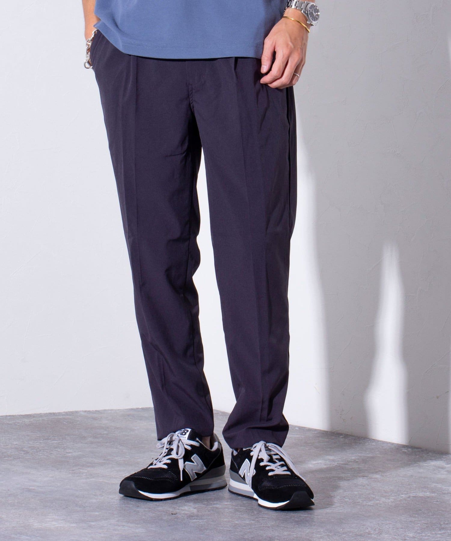 キレイなラインが出る様にシルエットにこだわったテーパードスラックス。