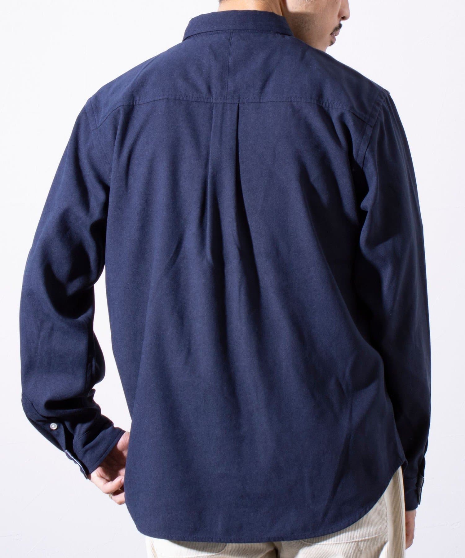 下前立てのニットテープがアクセントの長袖ネルシャツ