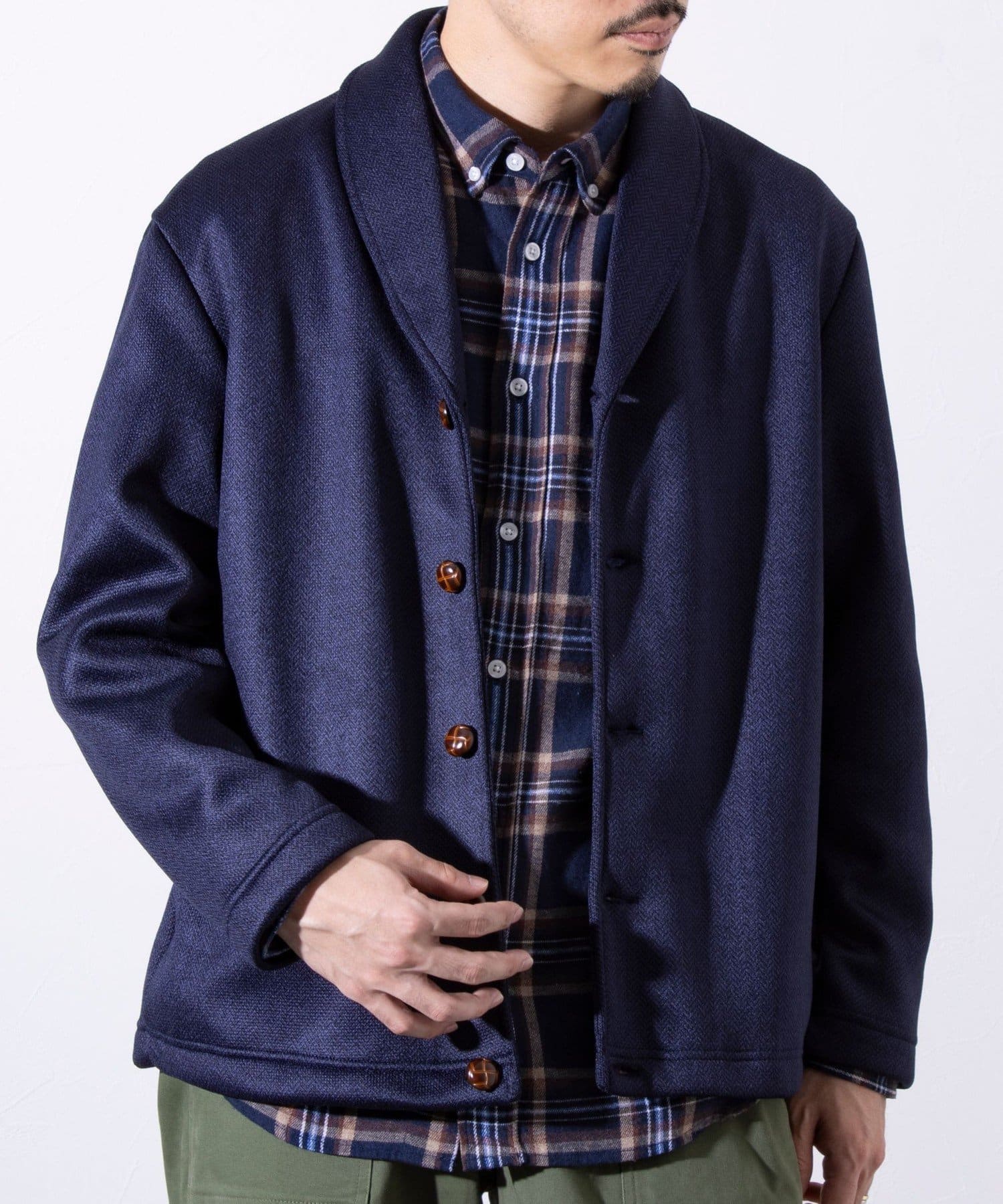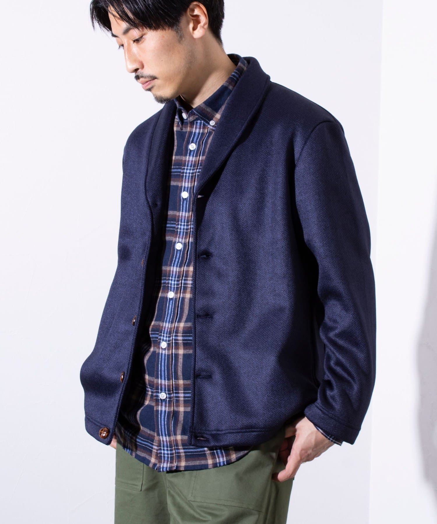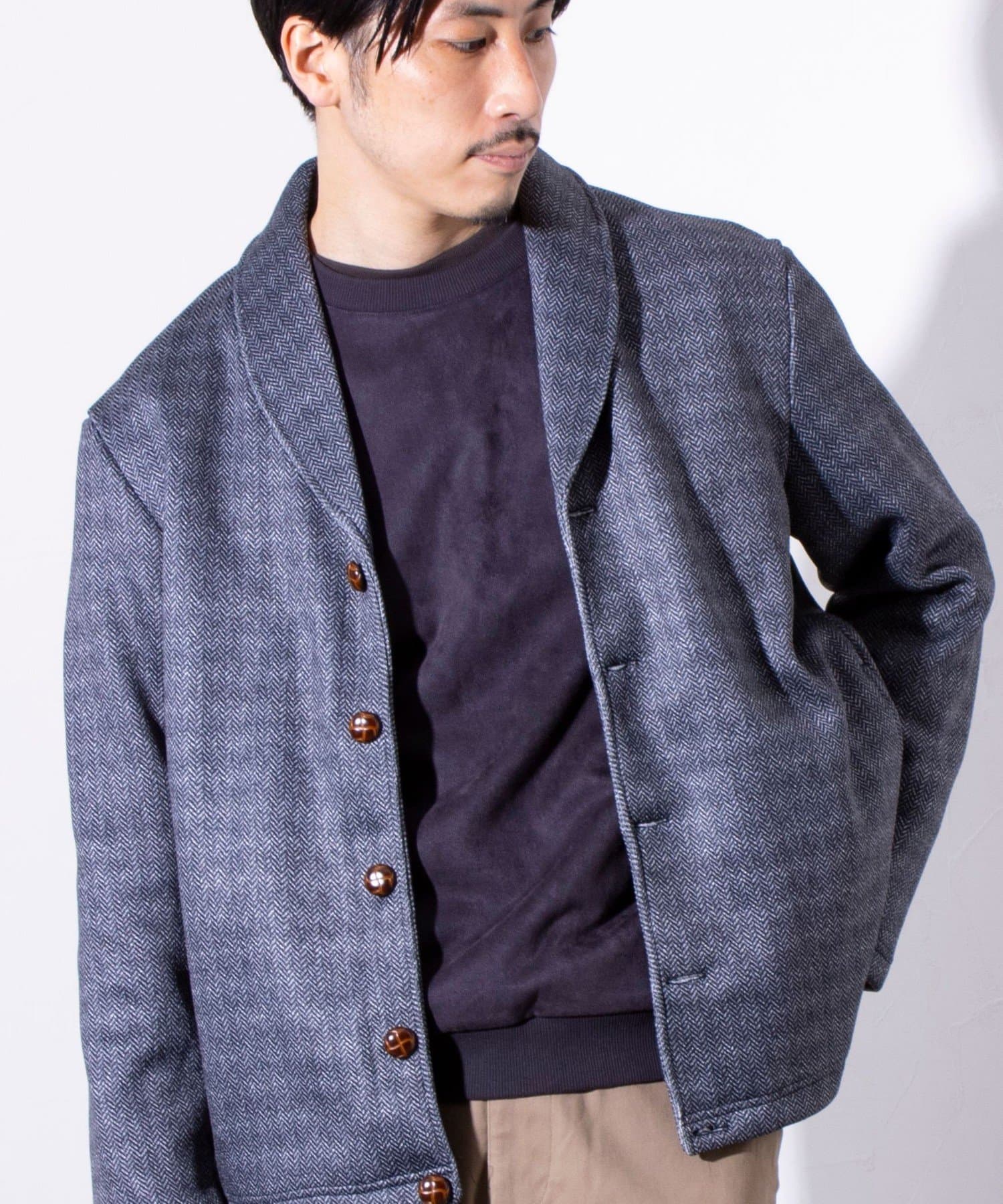 【GLOSTER】カチオンフリースボンディングくるみボタン ショールカーディガン