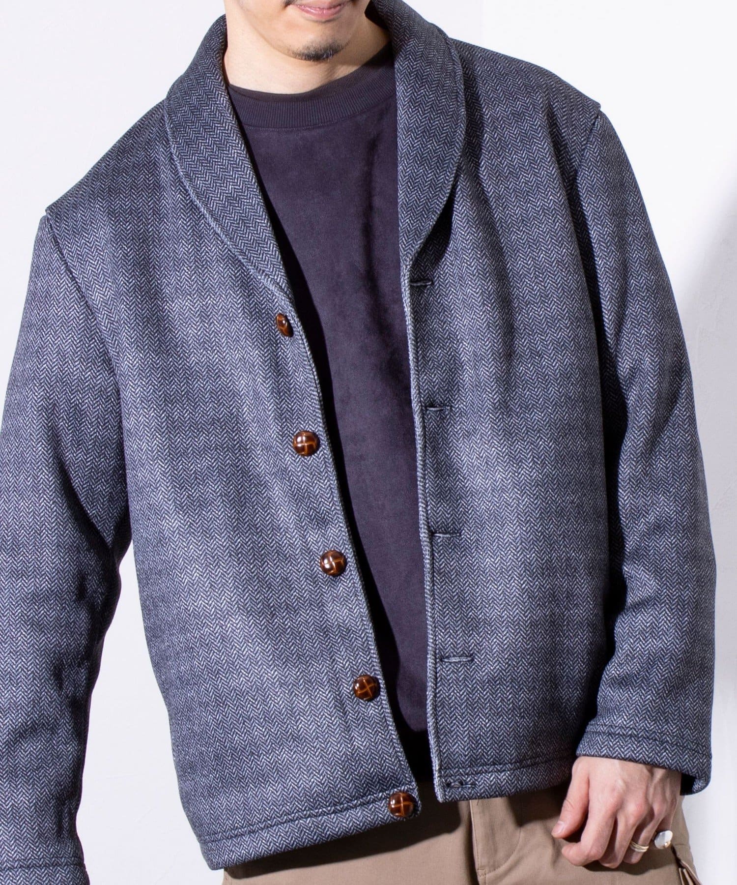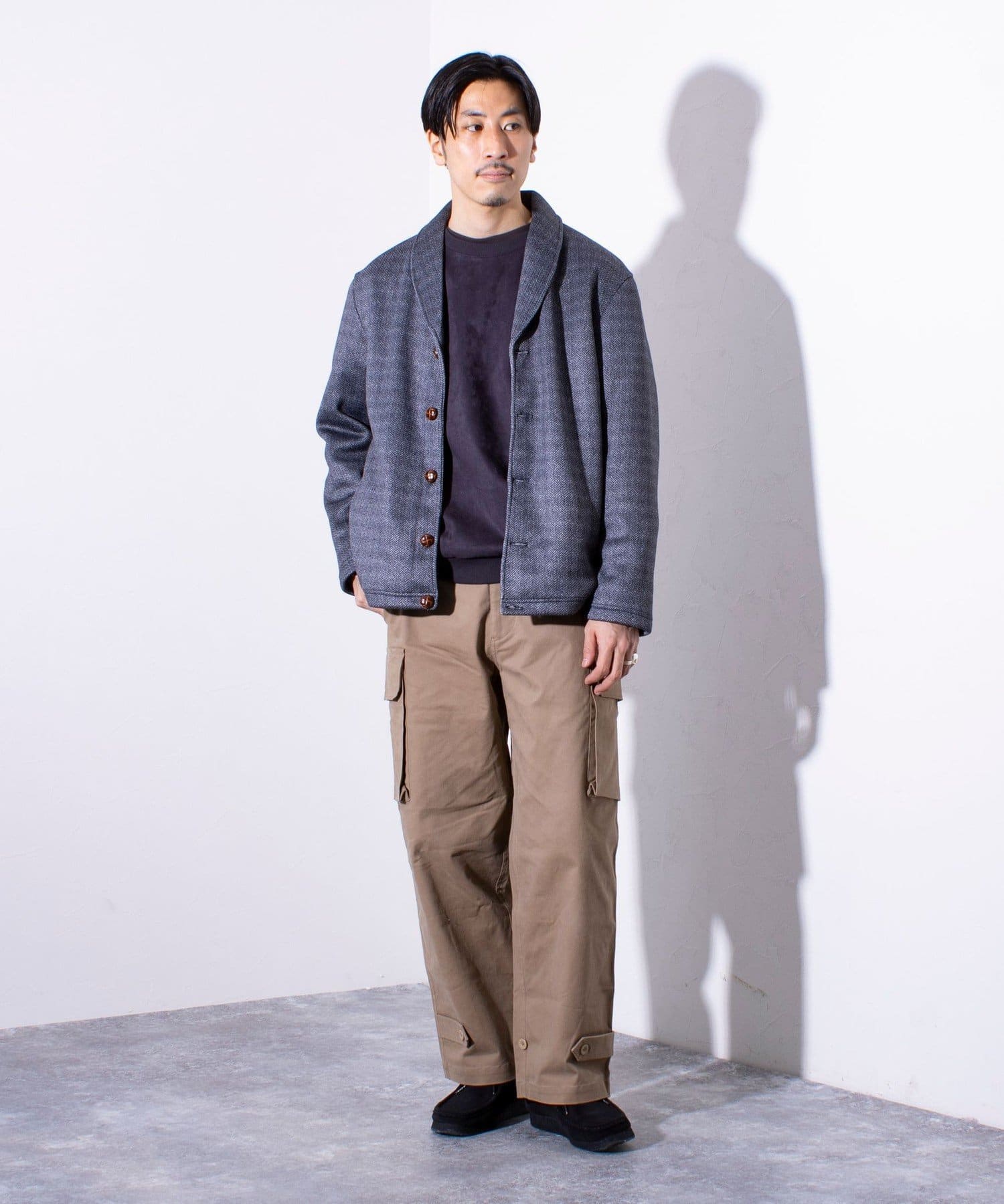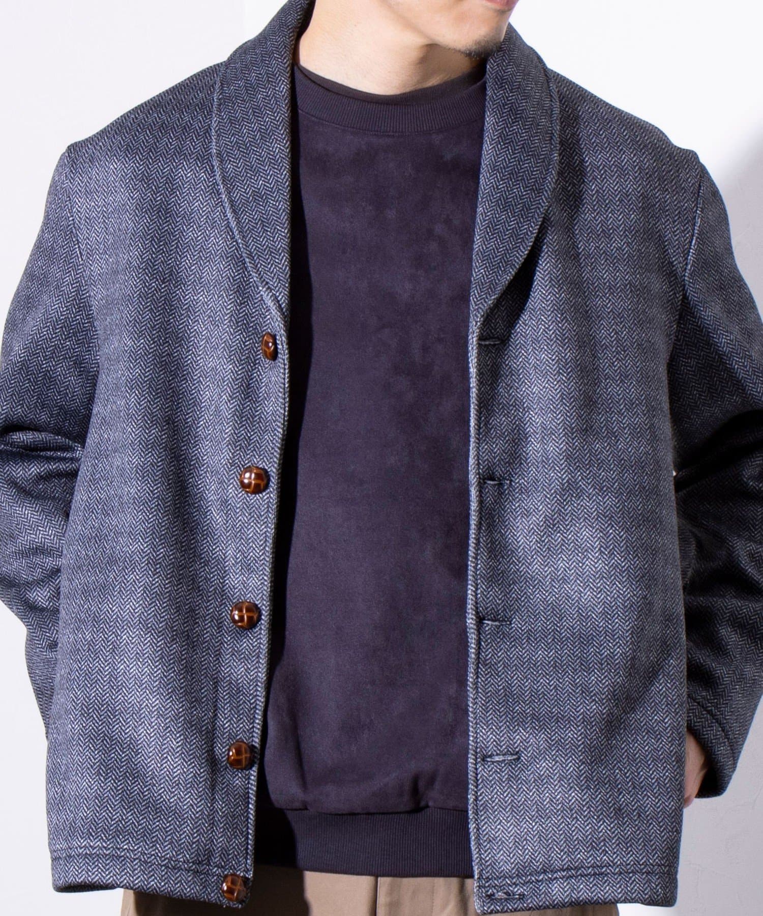 【GLOSTER】カチオンフリースボンディングくるみボタン ショールカーディガン