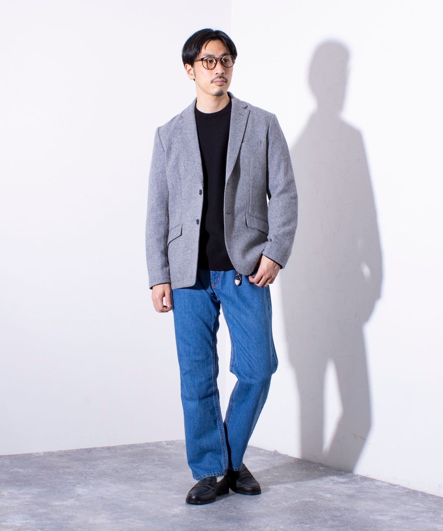 タイドアップでドレッシーなスタイリングはもちろん、インナーにニット、ボトムスにデニムやチノパンを合わせた上品なカジュアルスタイルもおすすめ。