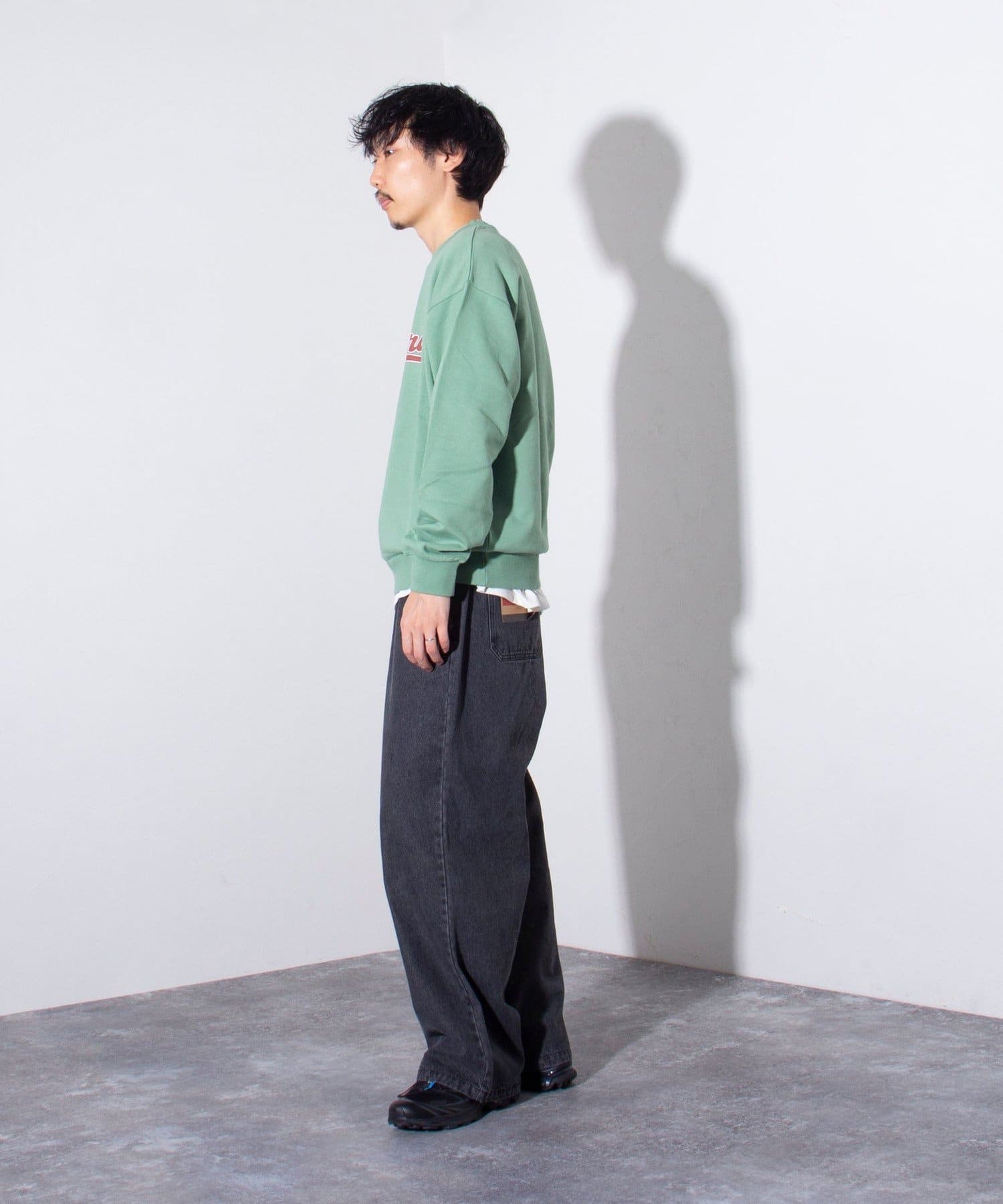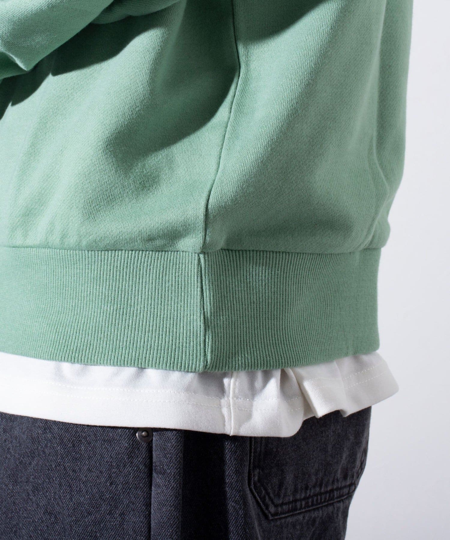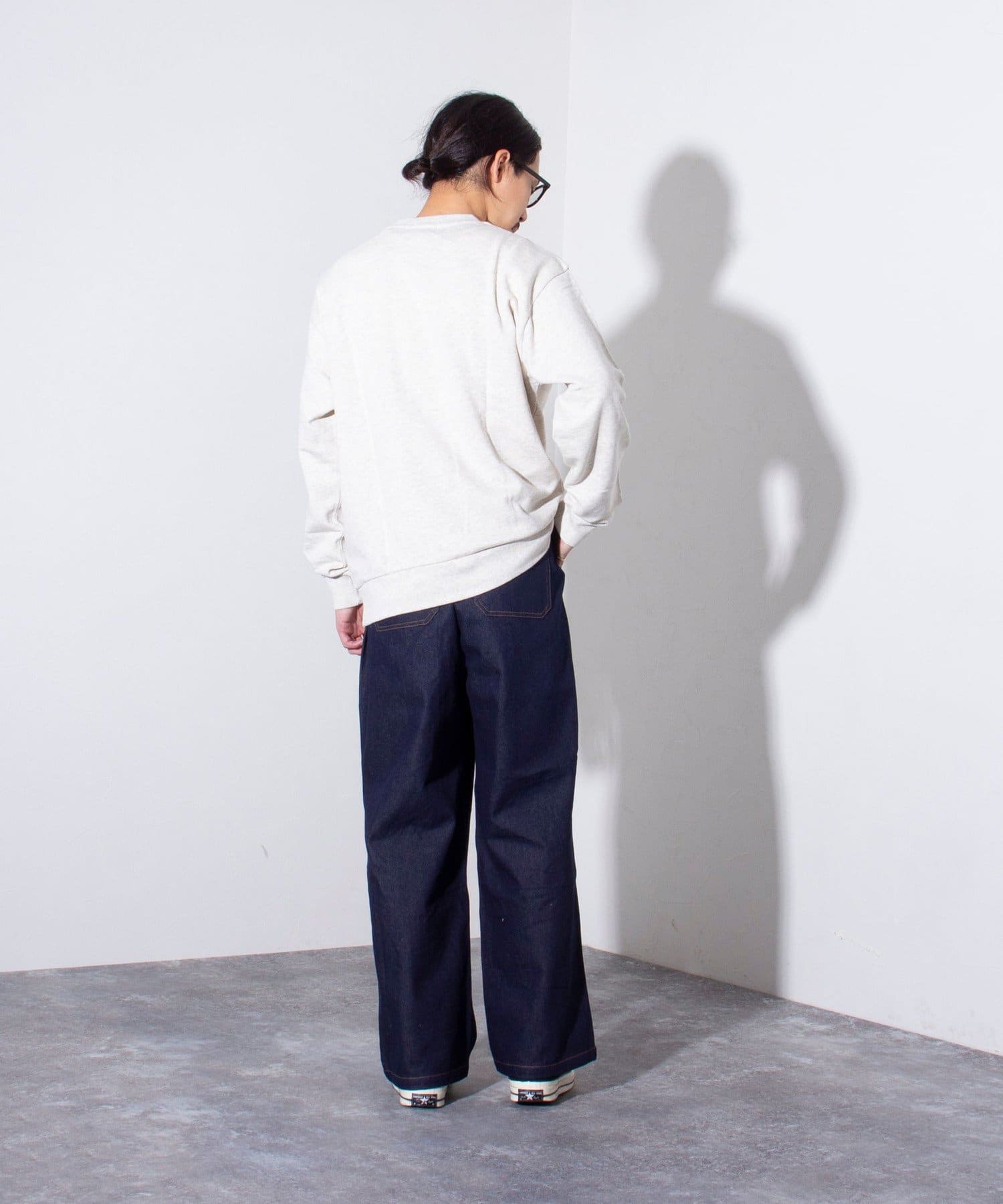 一枚着はもちろん、トレンチコートやデニムジャケットなどのアウターを上に羽織って、フロントからロゴをチラ見せすることでこなれた雰囲気に。