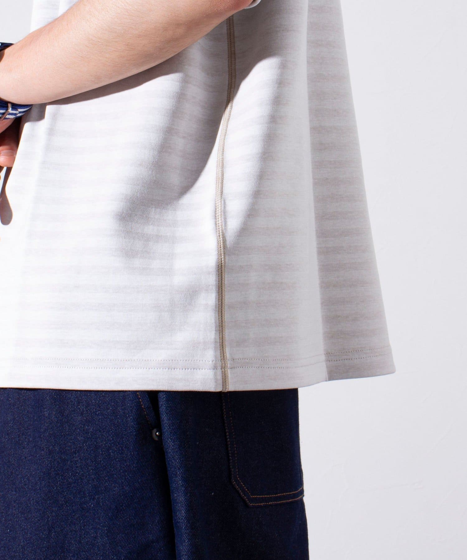 • FREDY & GLOSTER(フレディ アンド グロスター) 【GLOSTER】配色ステッチ Wフェイス ボーダー クルーネックTシャツ