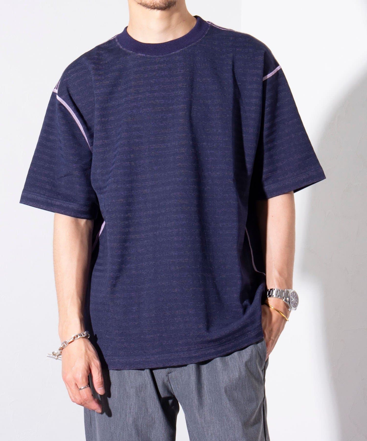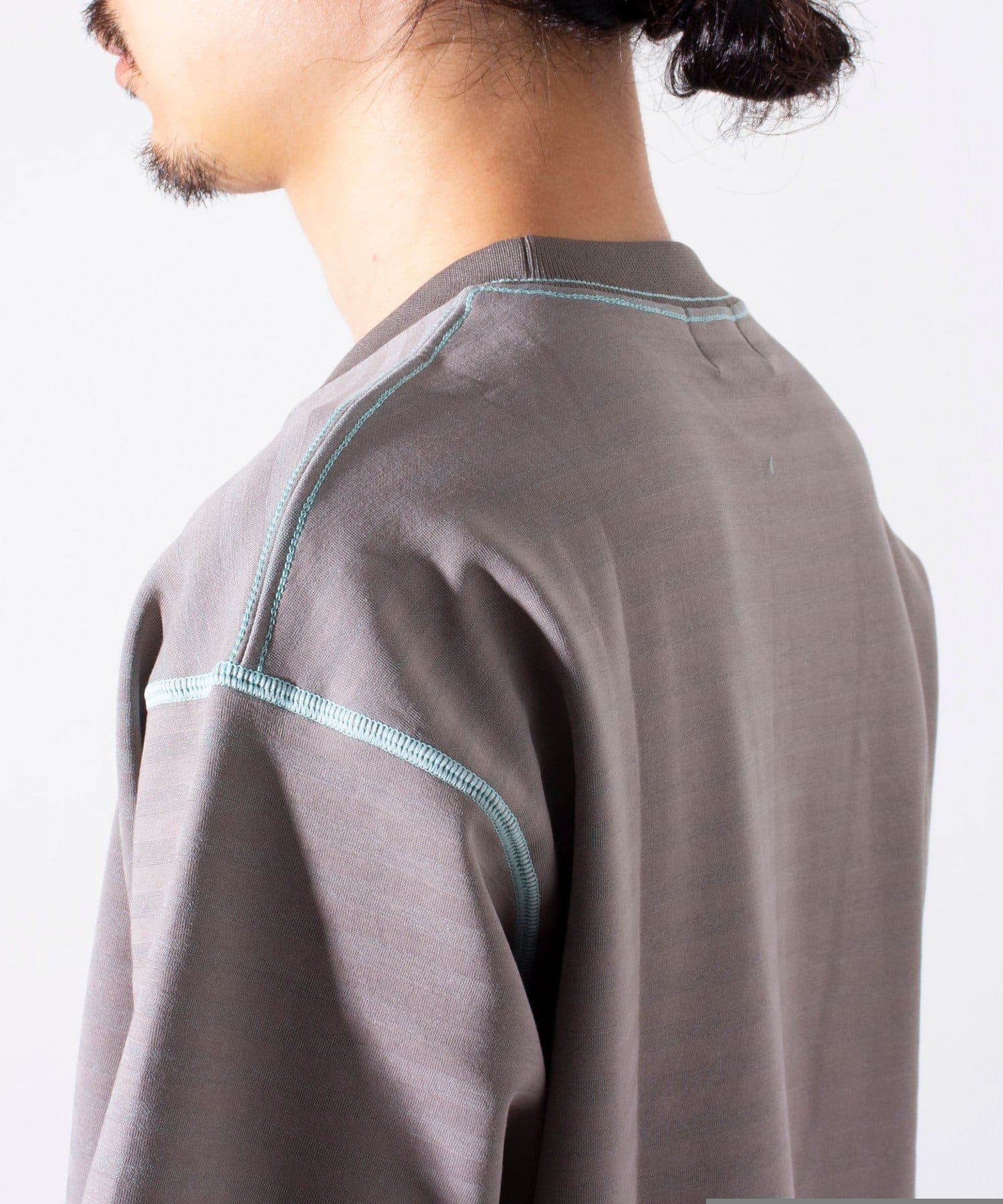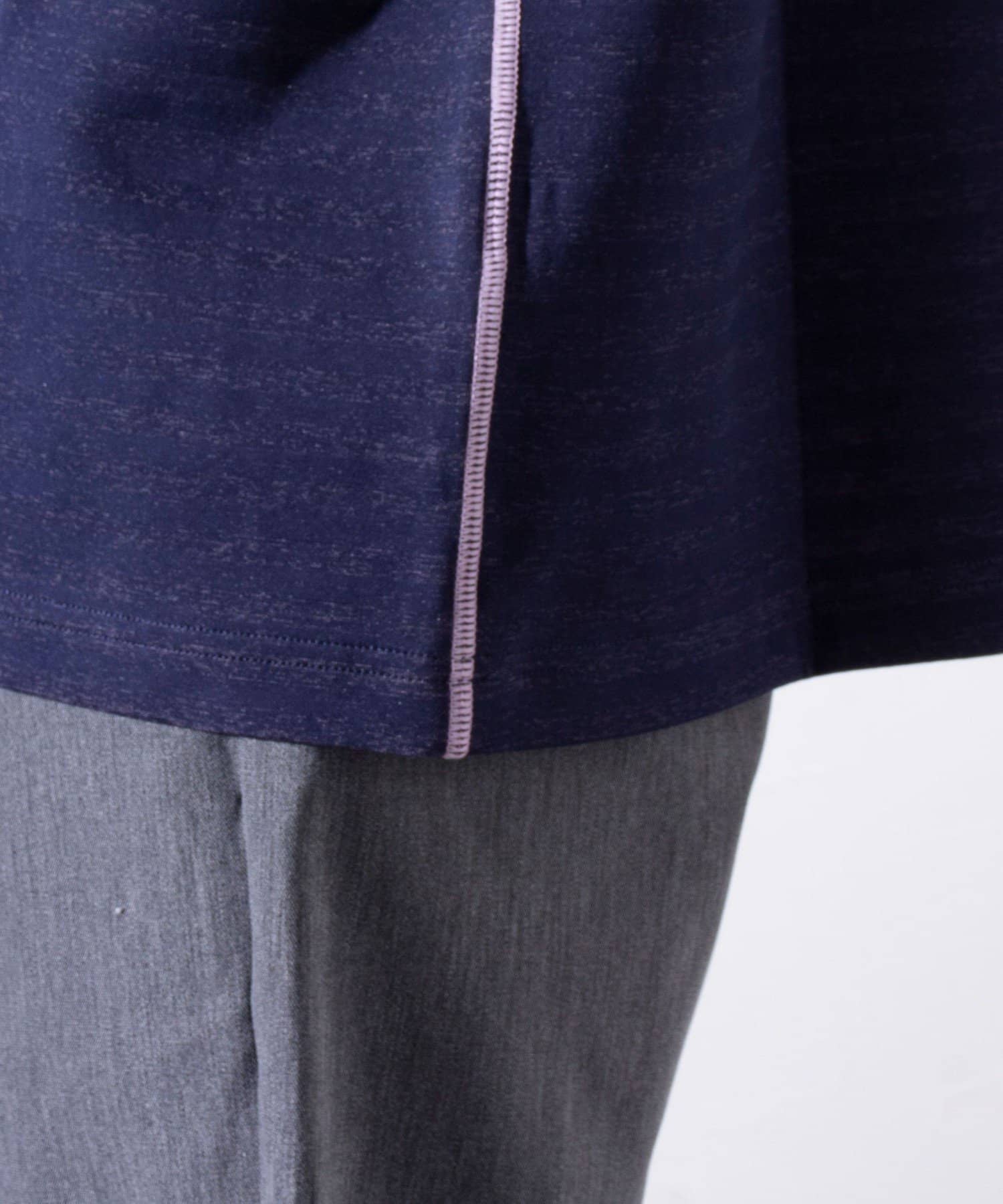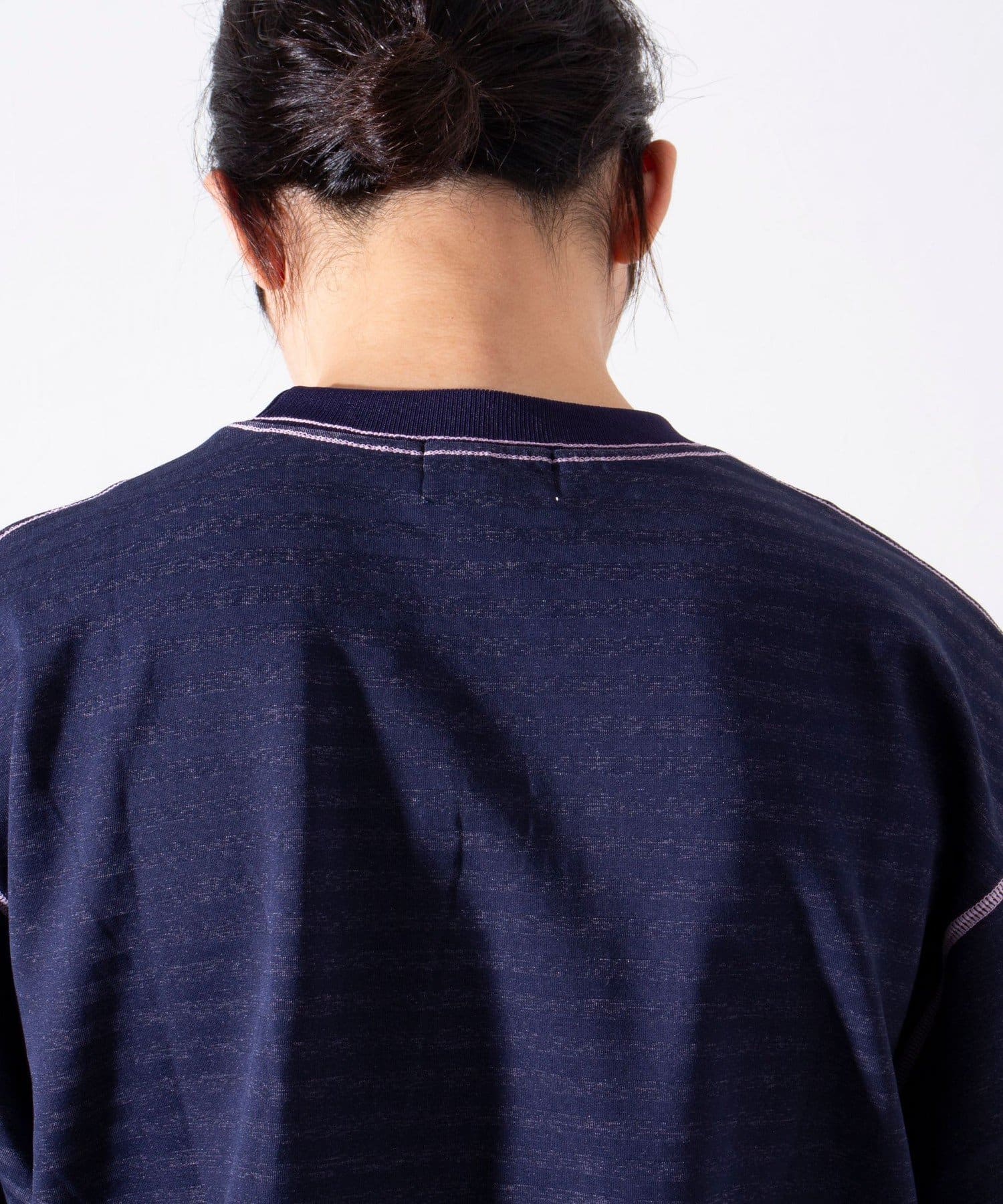 脇と袖下の配色ステッチが特徴で、1枚着はもちろん羽織りもののインナーとしても活躍するアイテムです。